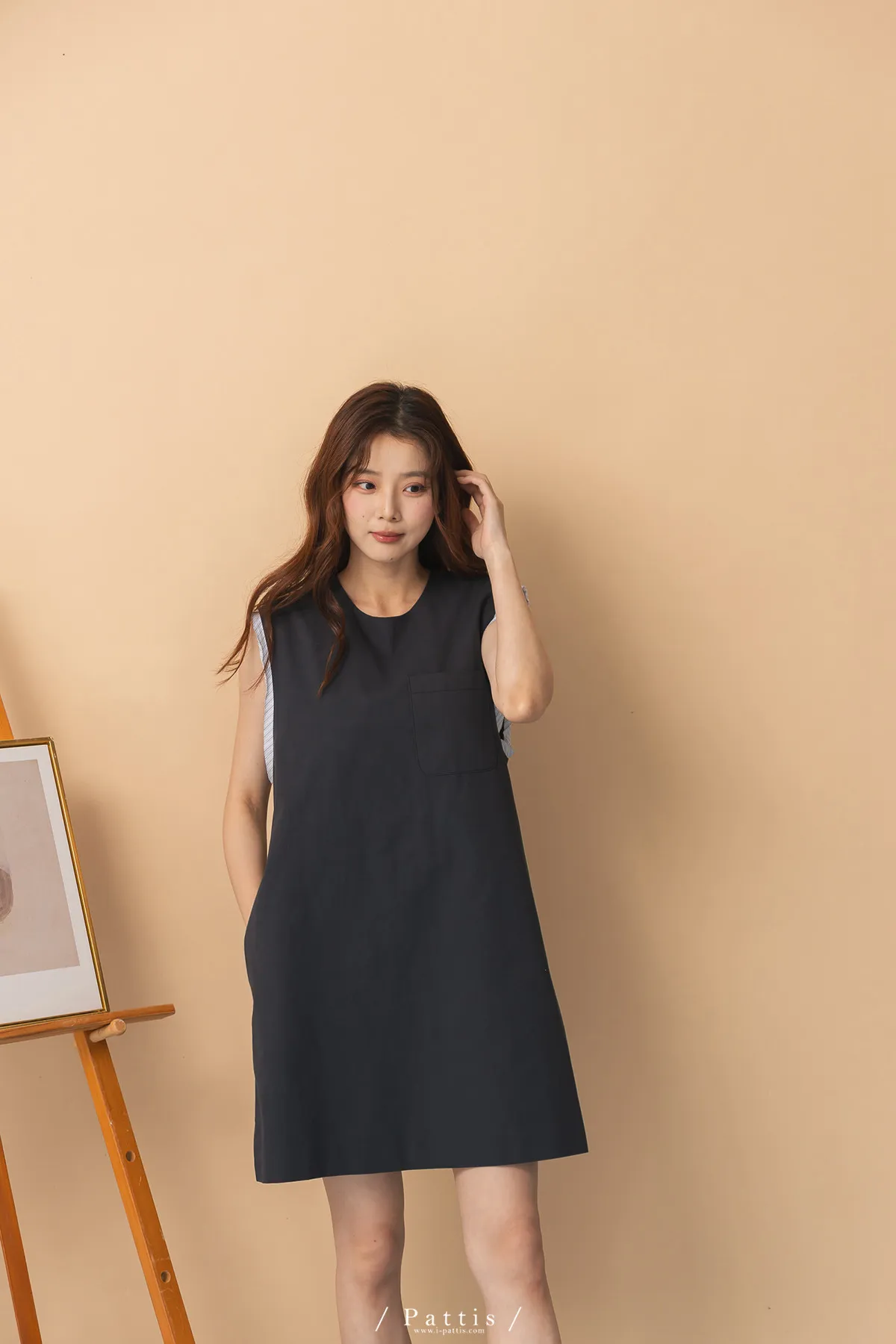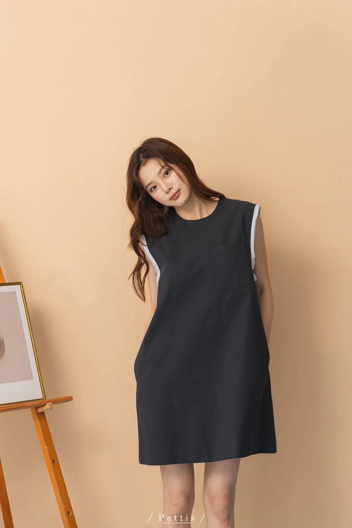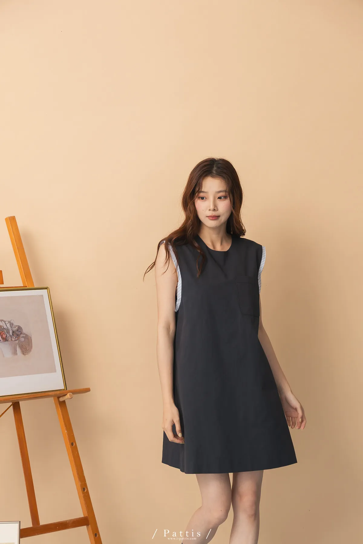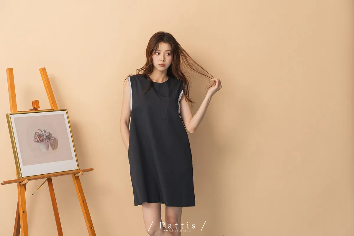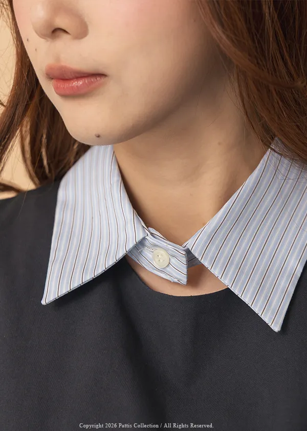 世故少女的邏輯病 | Miu感襯衫領拼接雙色短洋裝(深藍黑)