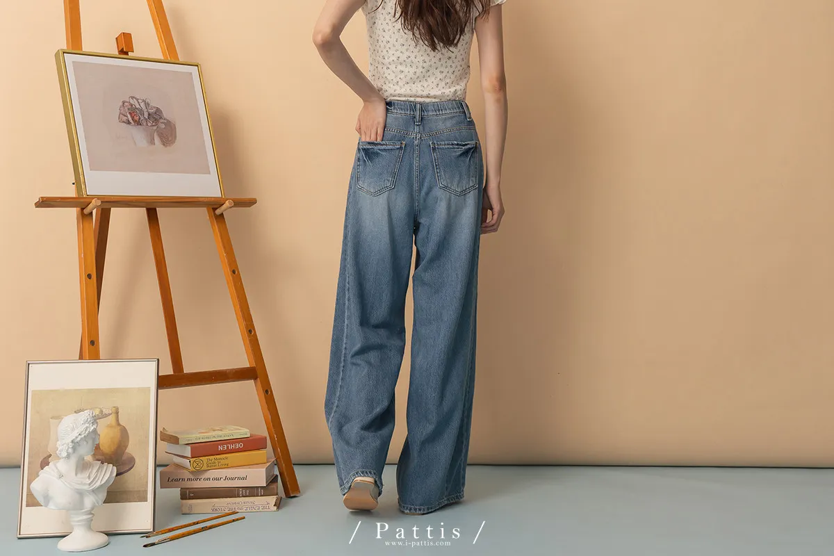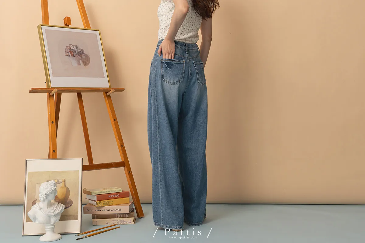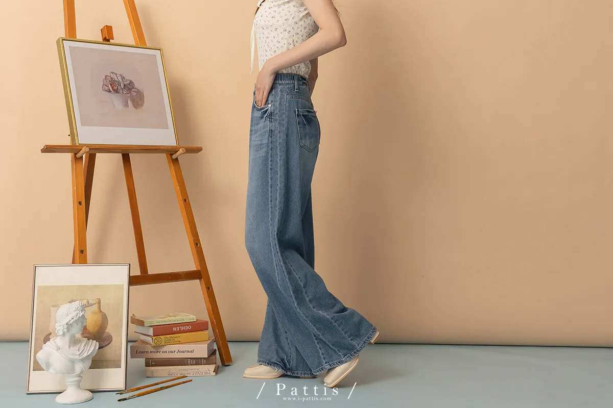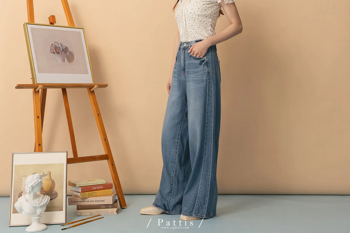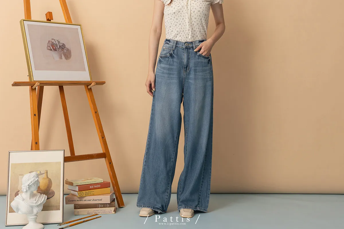 海浪是寧靜色 | 天絲感軟質刷色丹寧寬褲(單一色)