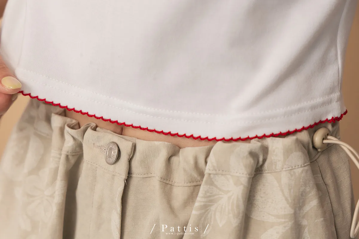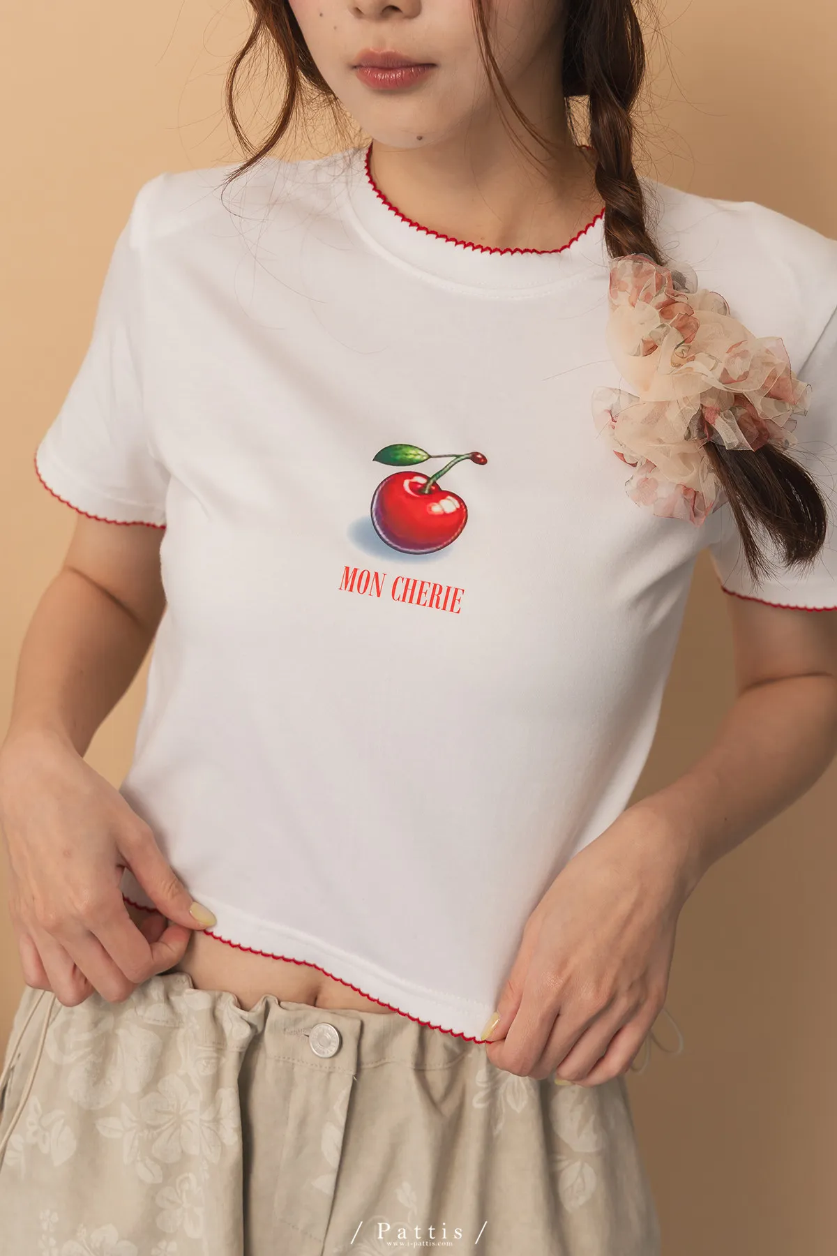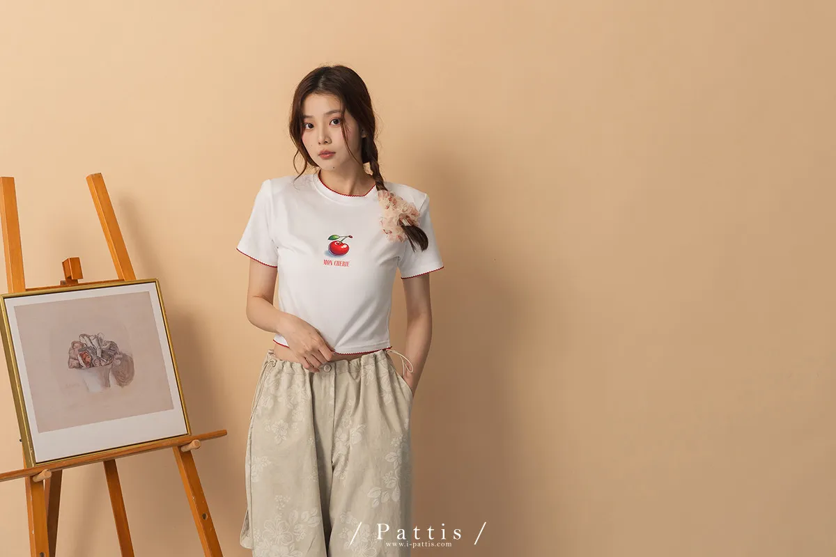關於可愛的各種註解 | 勾針滾邊線櫻桃短T恤上衣(白)