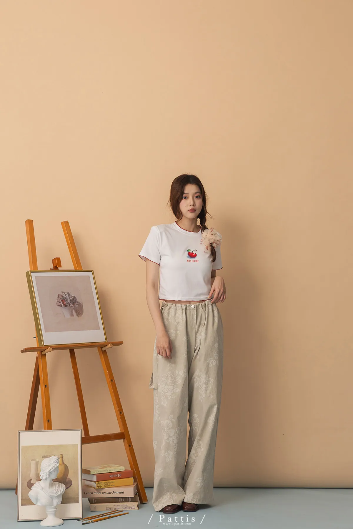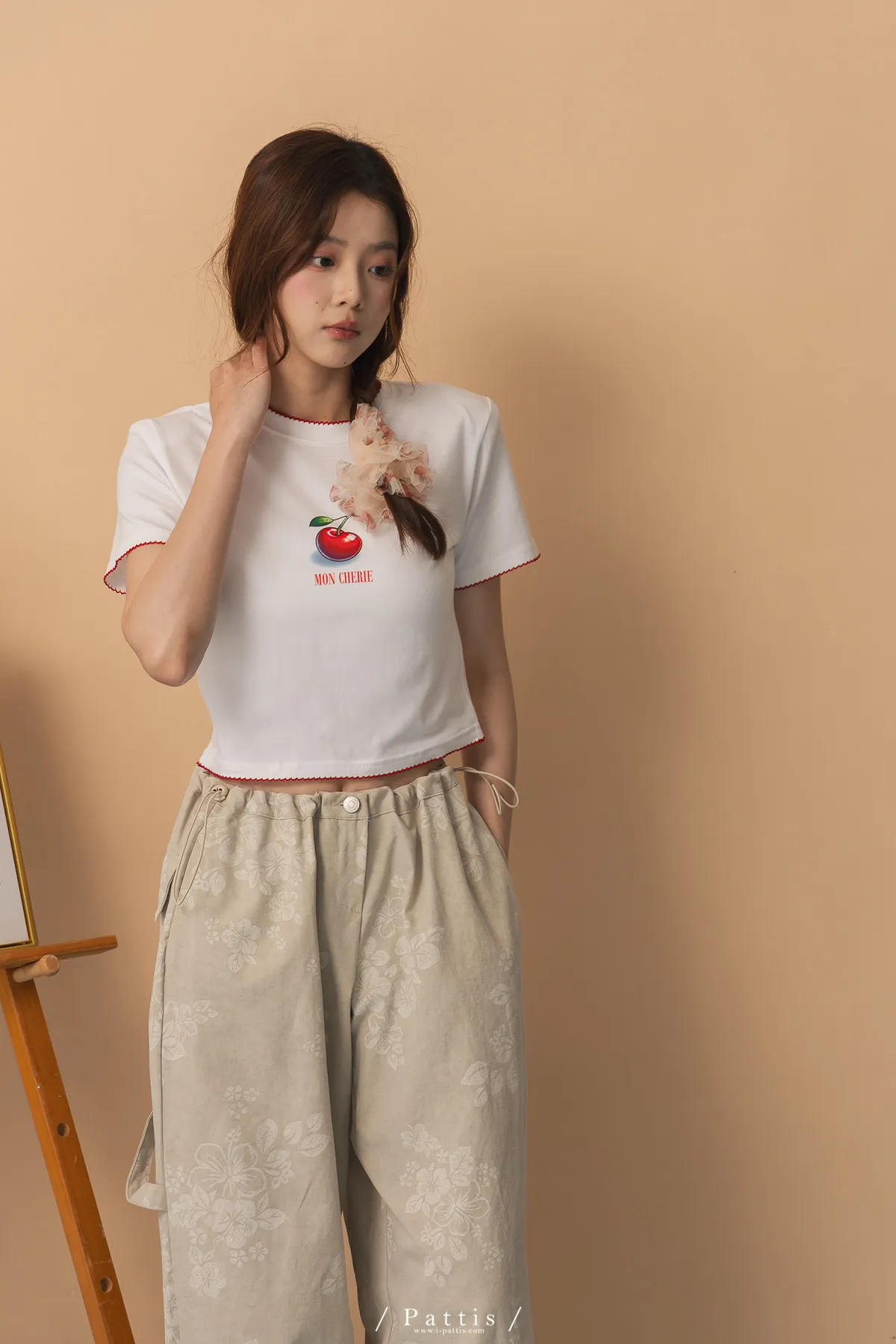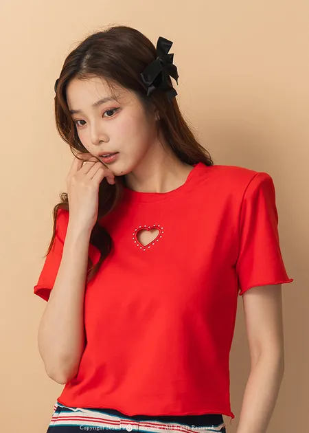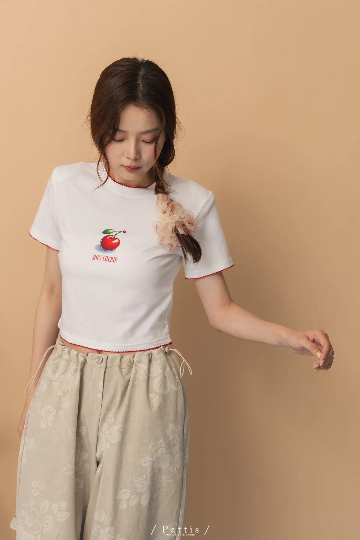 關於可愛的各種註解 | 勾針滾邊線櫻桃短T恤上衣(白)