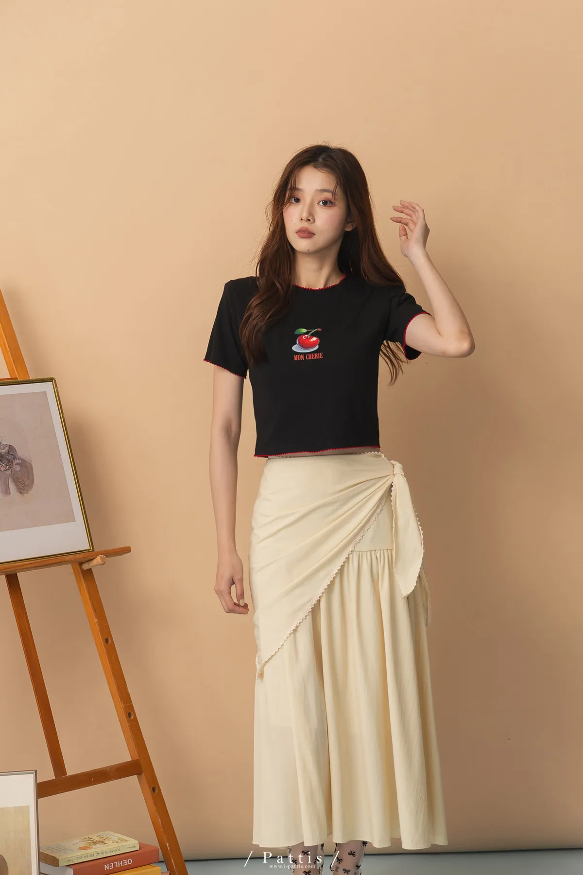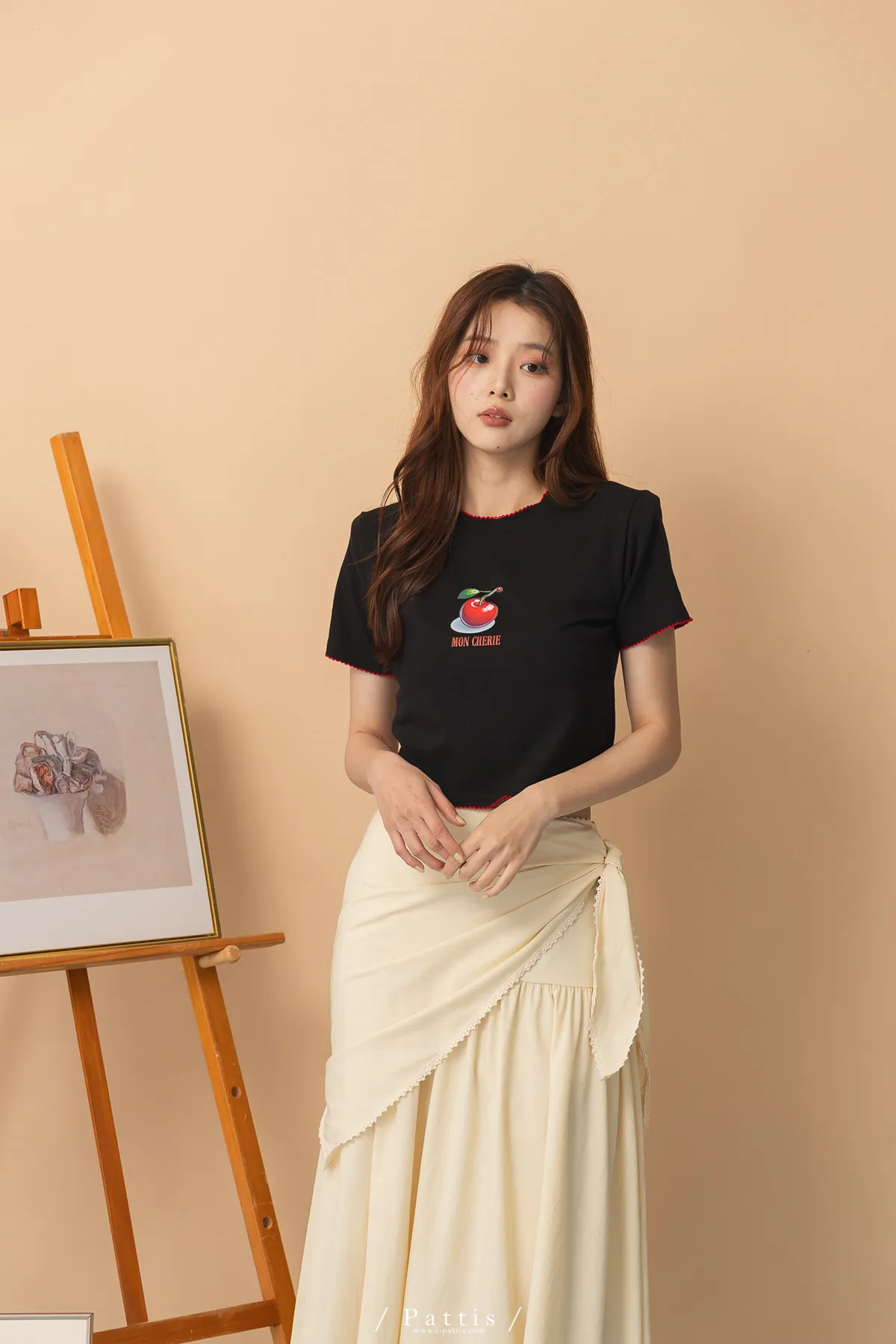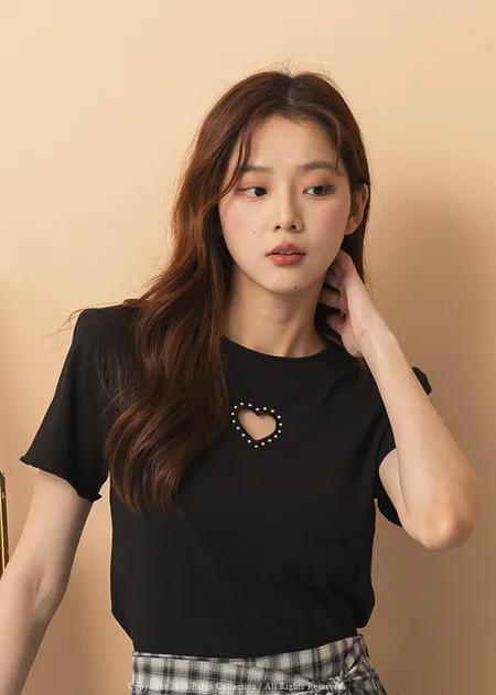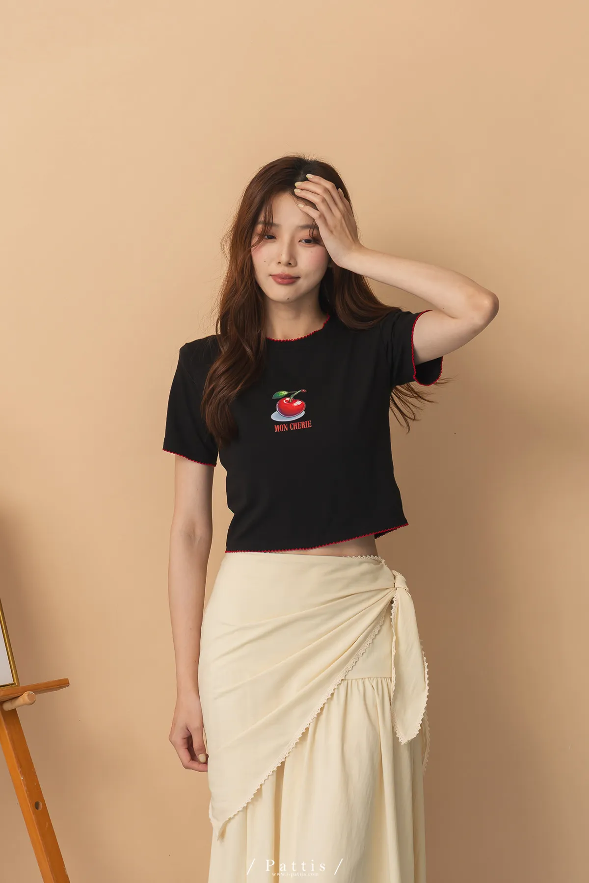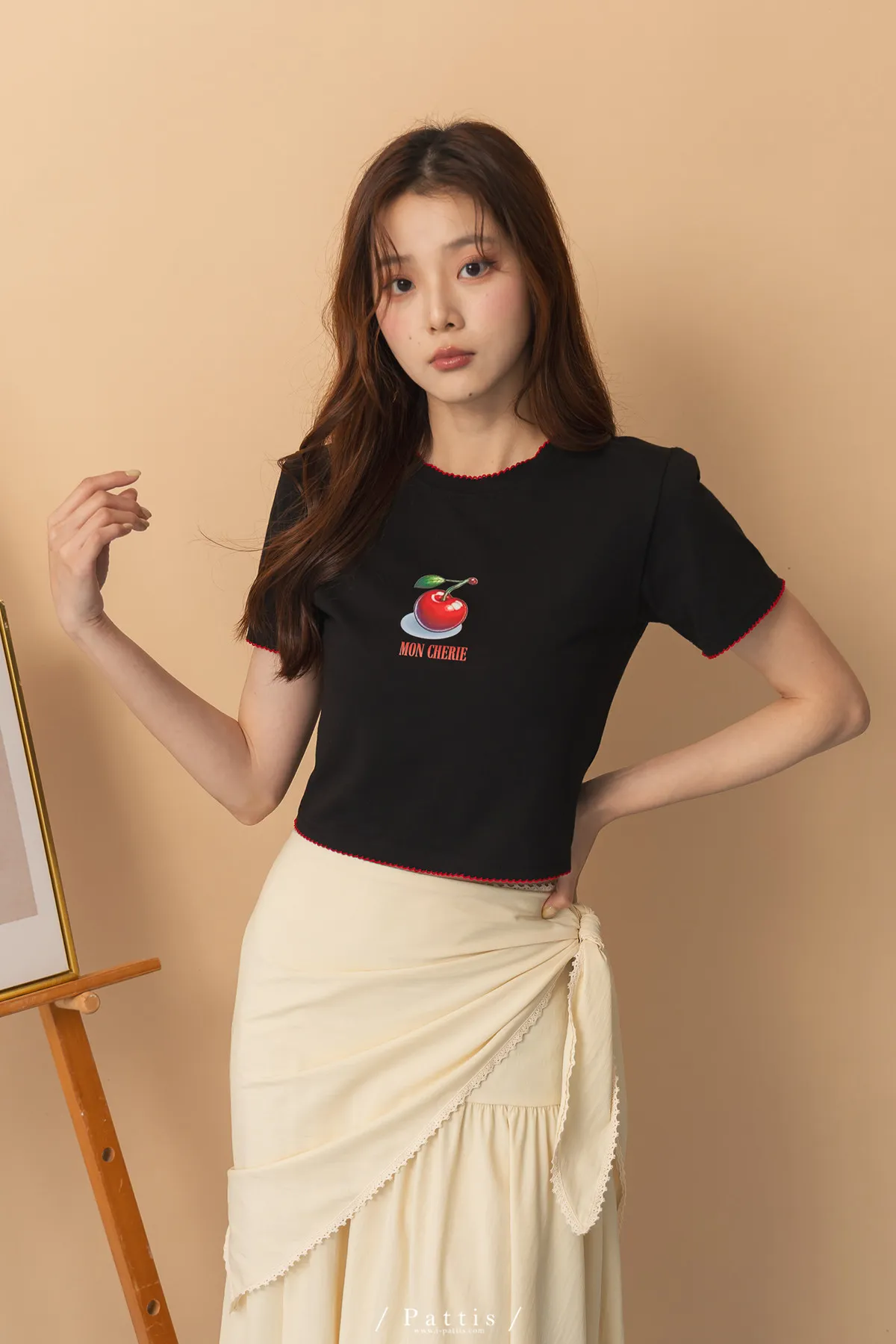 關於可愛的各種註解 | 勾針滾邊線櫻桃短T恤上衣(黑)