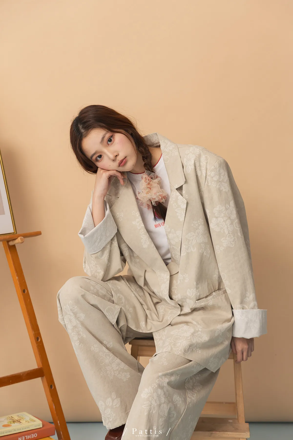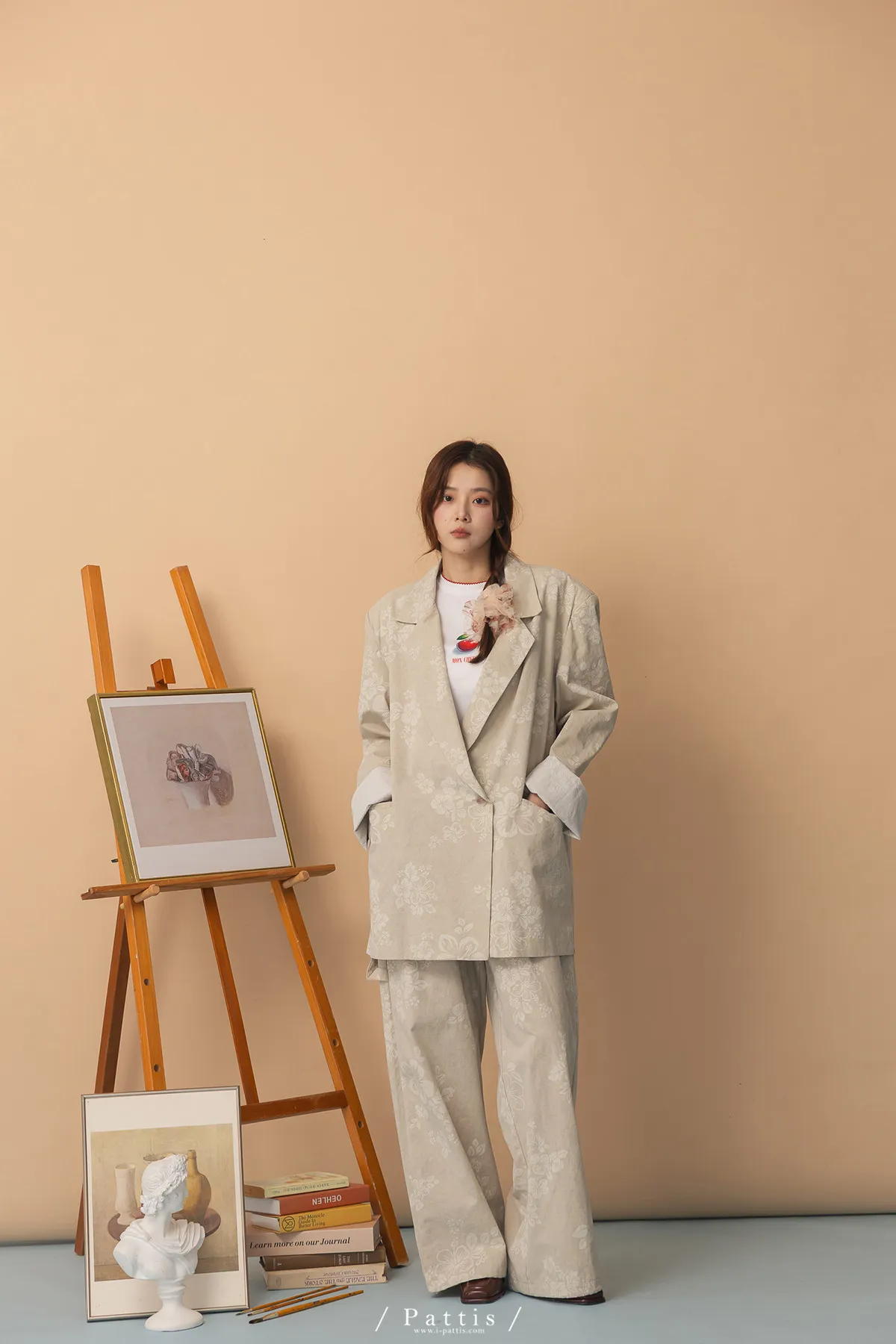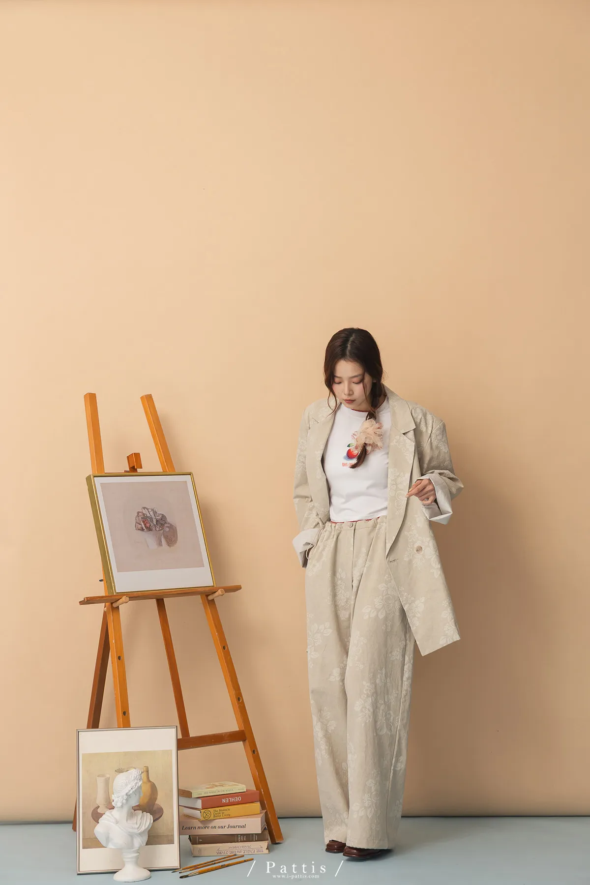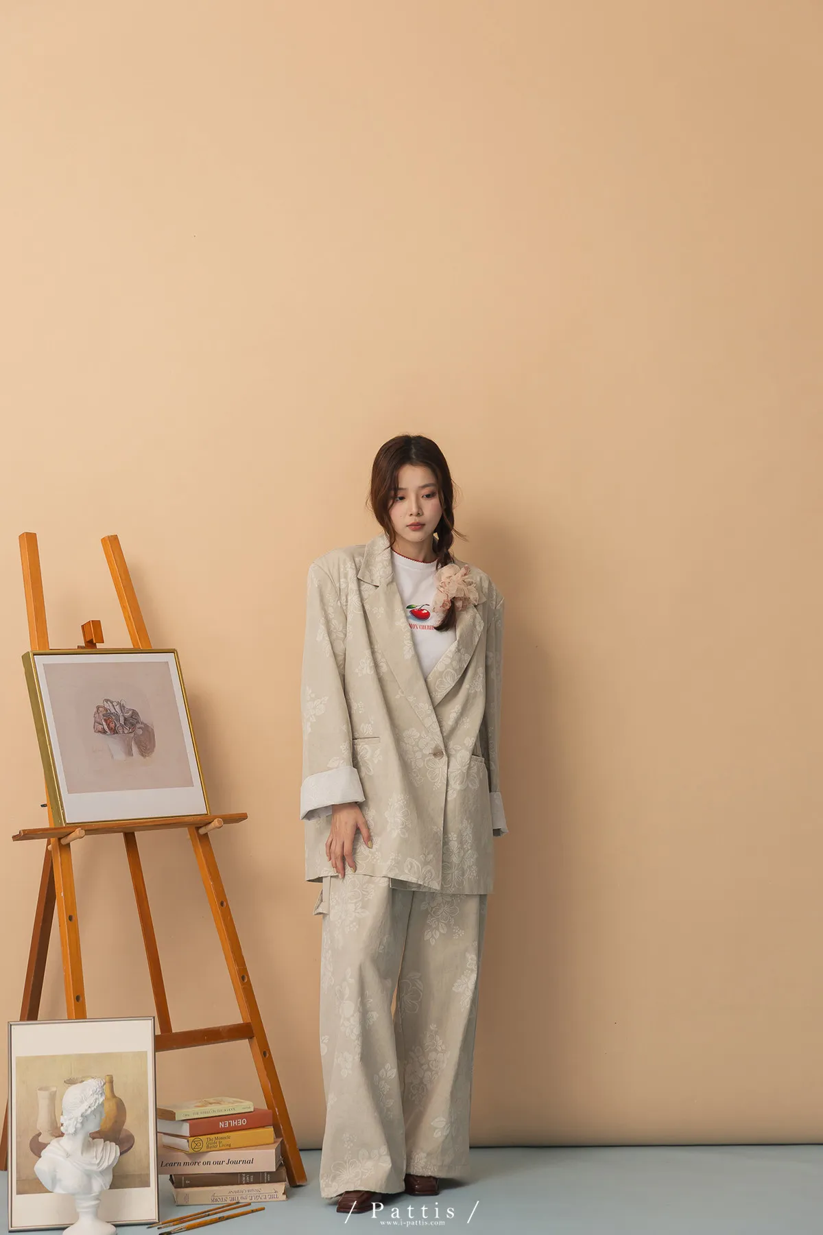 優雅盔甲 | (可分售)浮雕緹花西裝外套+抽繩寬褲set(米杏)
