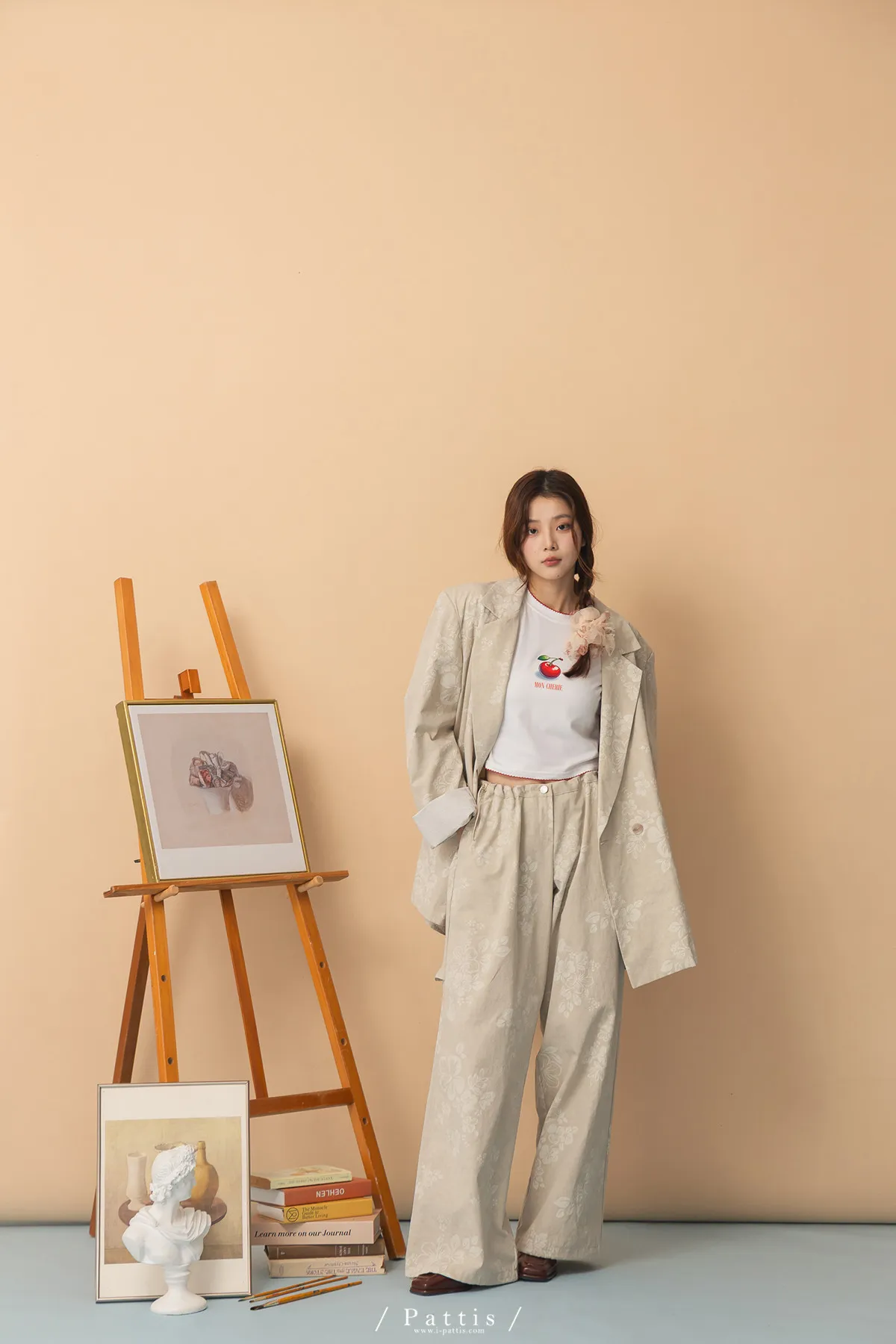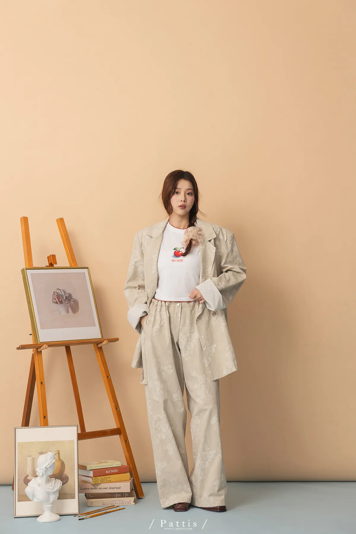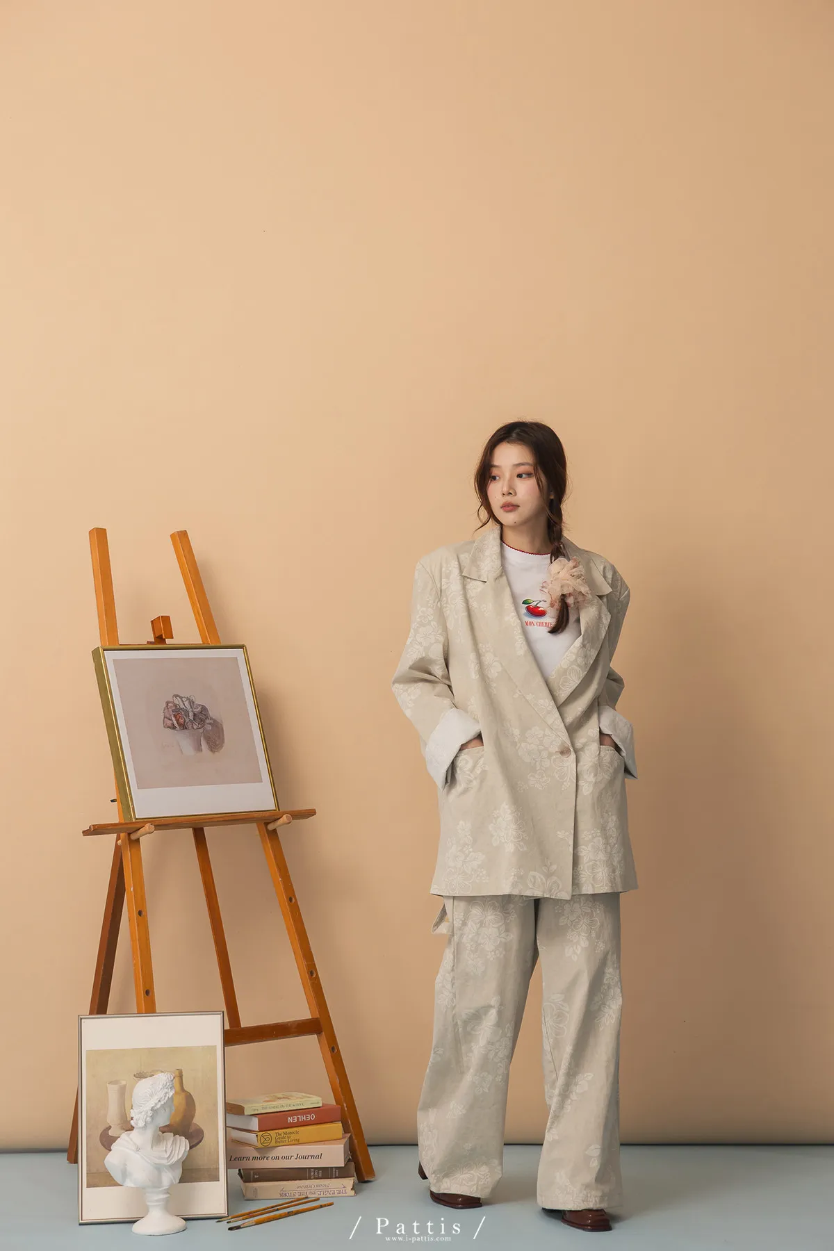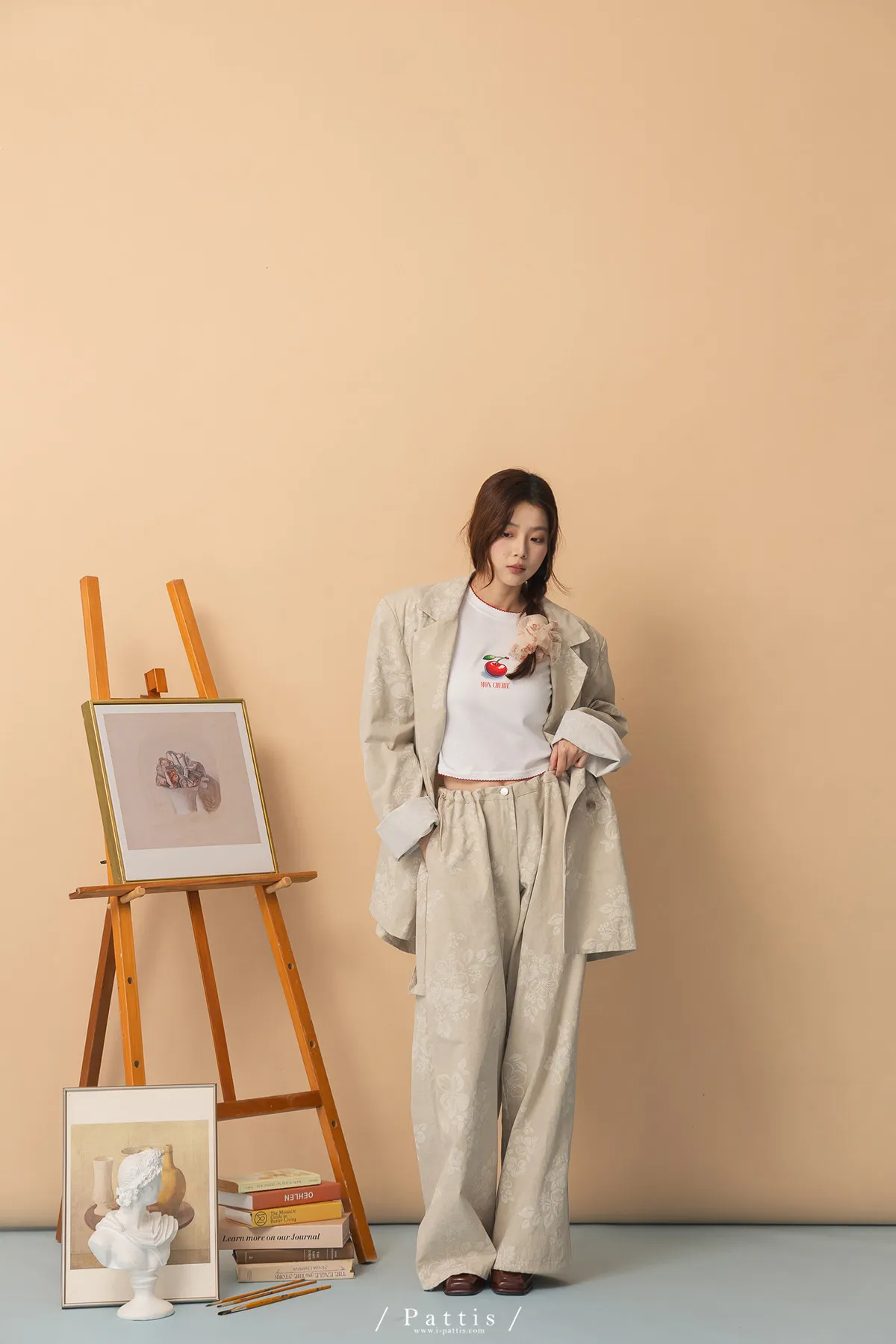 優雅盔甲 | (可分售)浮雕緹花西裝外套+抽繩寬褲set(米杏)