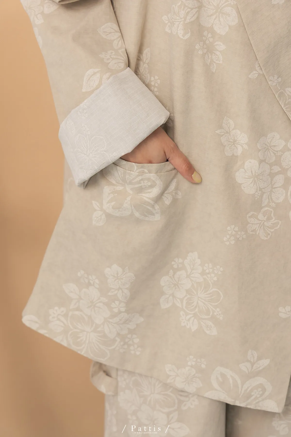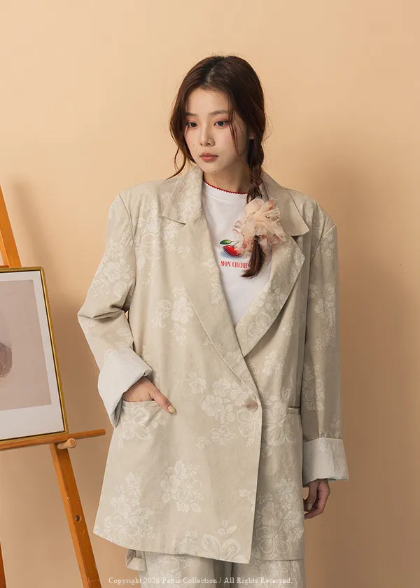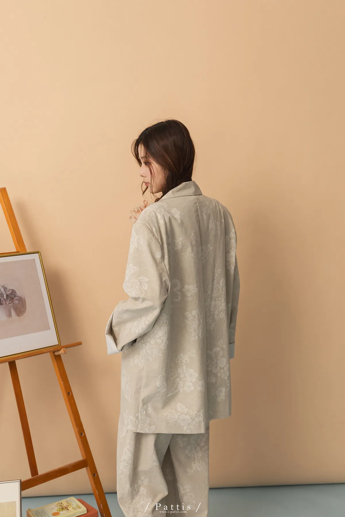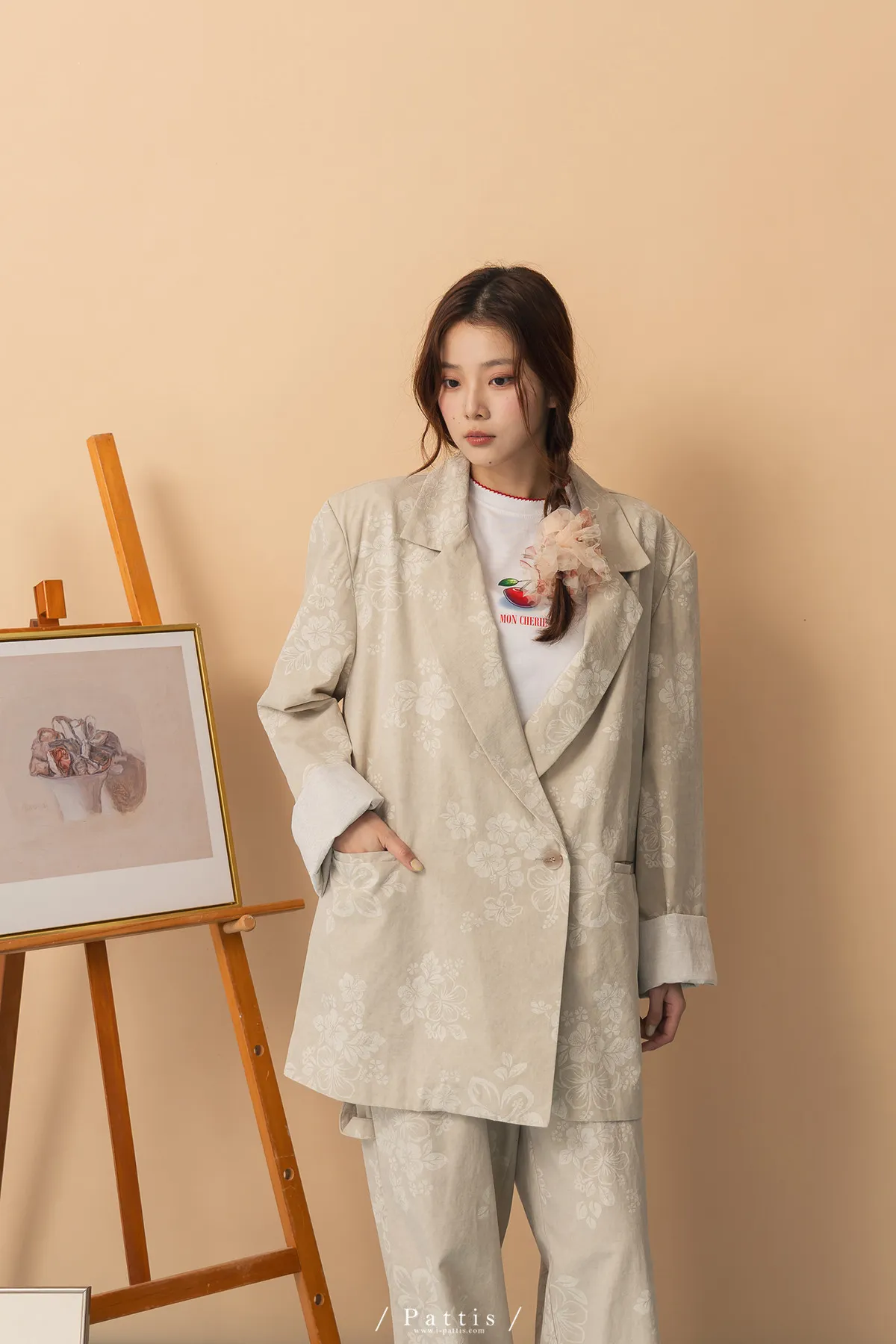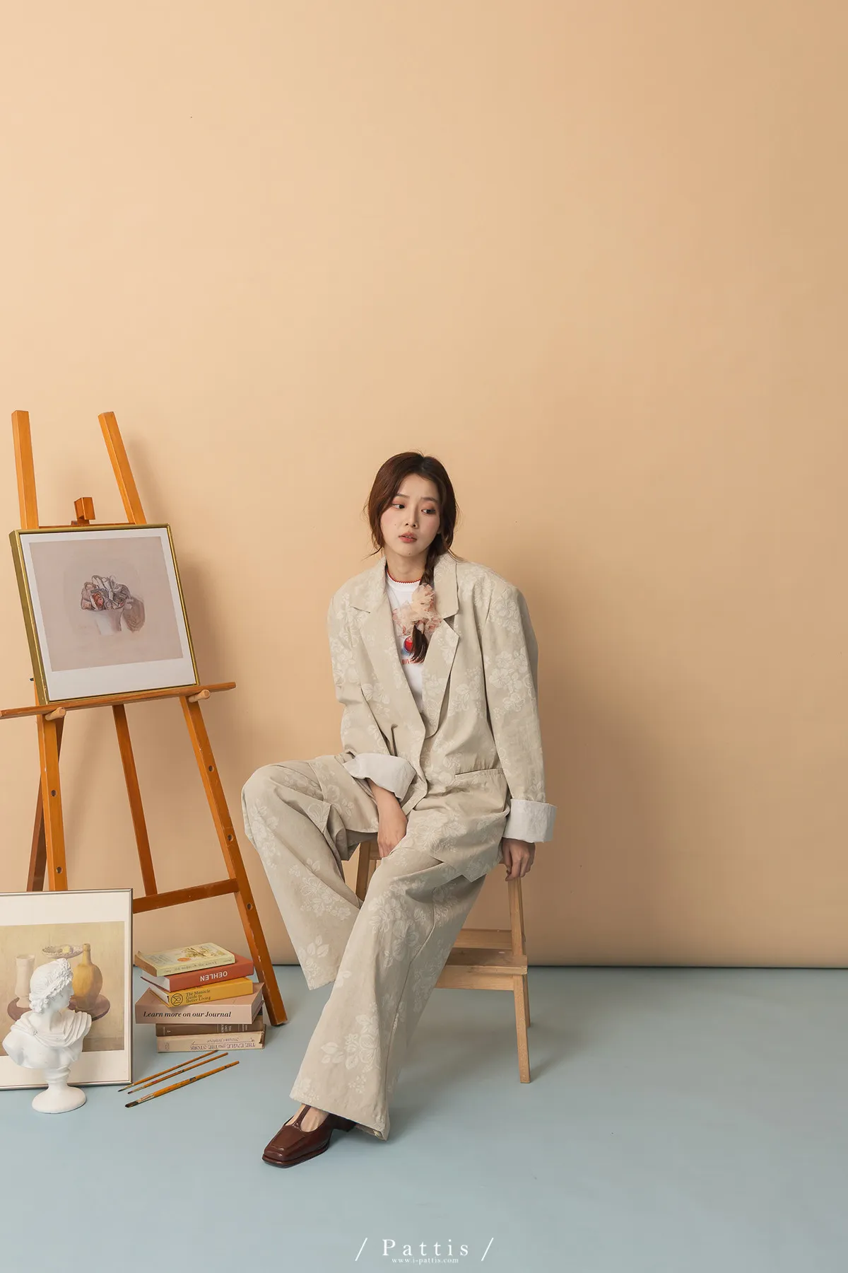優雅盔甲 | (可分售)浮雕緹花西裝外套+抽繩寬褲set(米杏)
