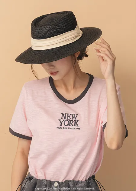 城市漫遊者 | 滾邊紐約字母簡約T恤(粉)