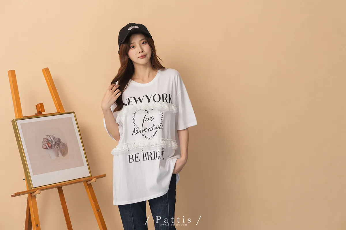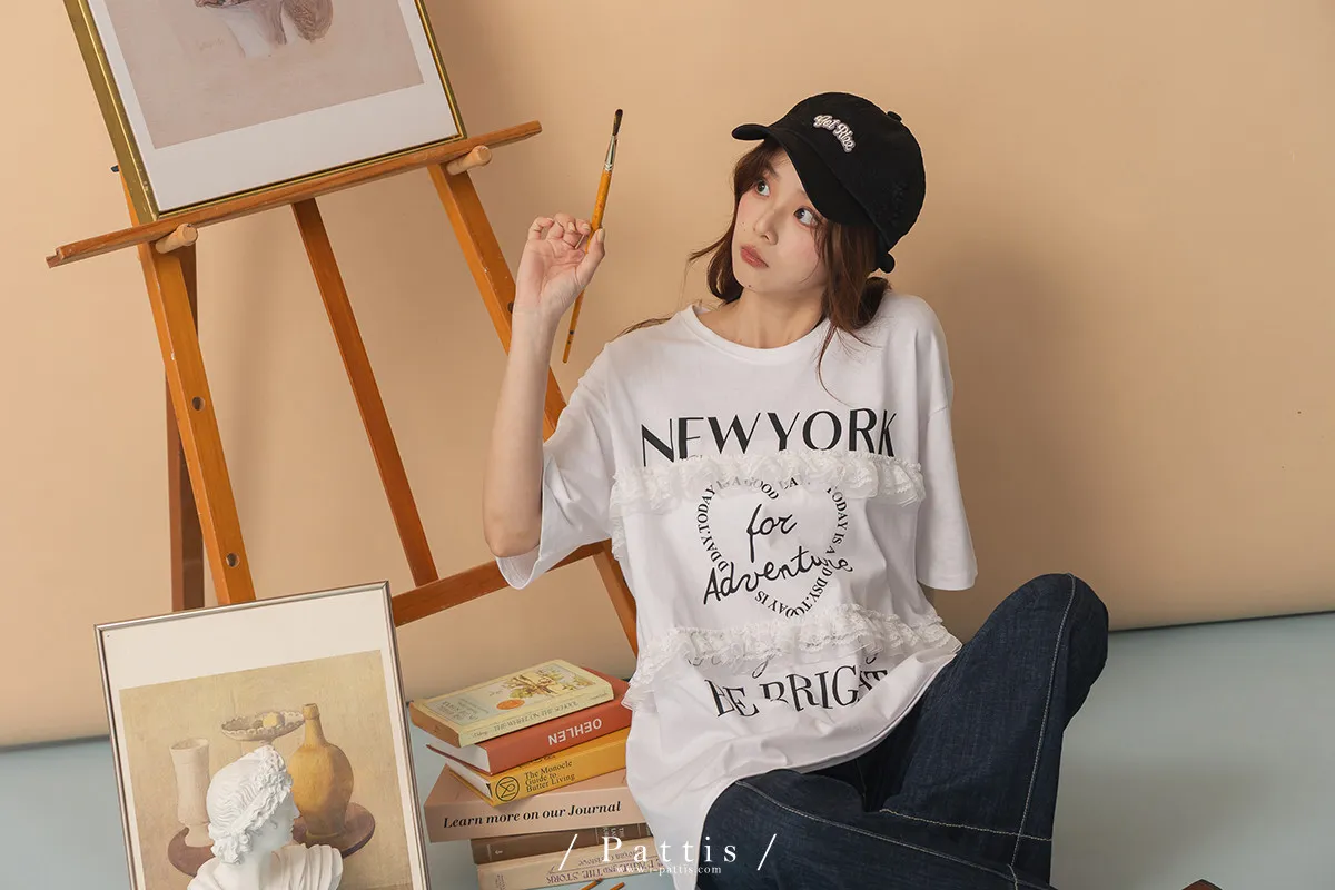 城市漫遊者 | 滾邊紐約字母簡約T恤(白)