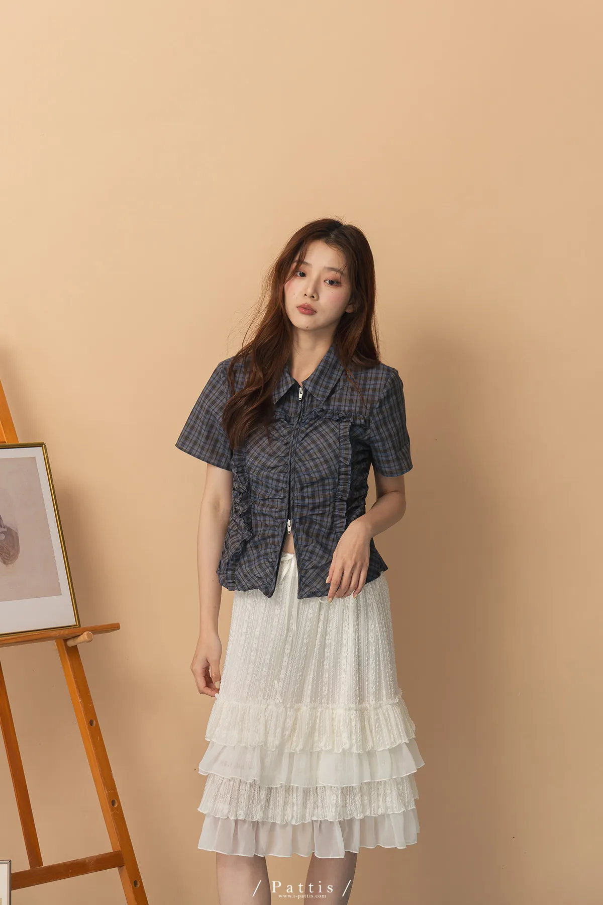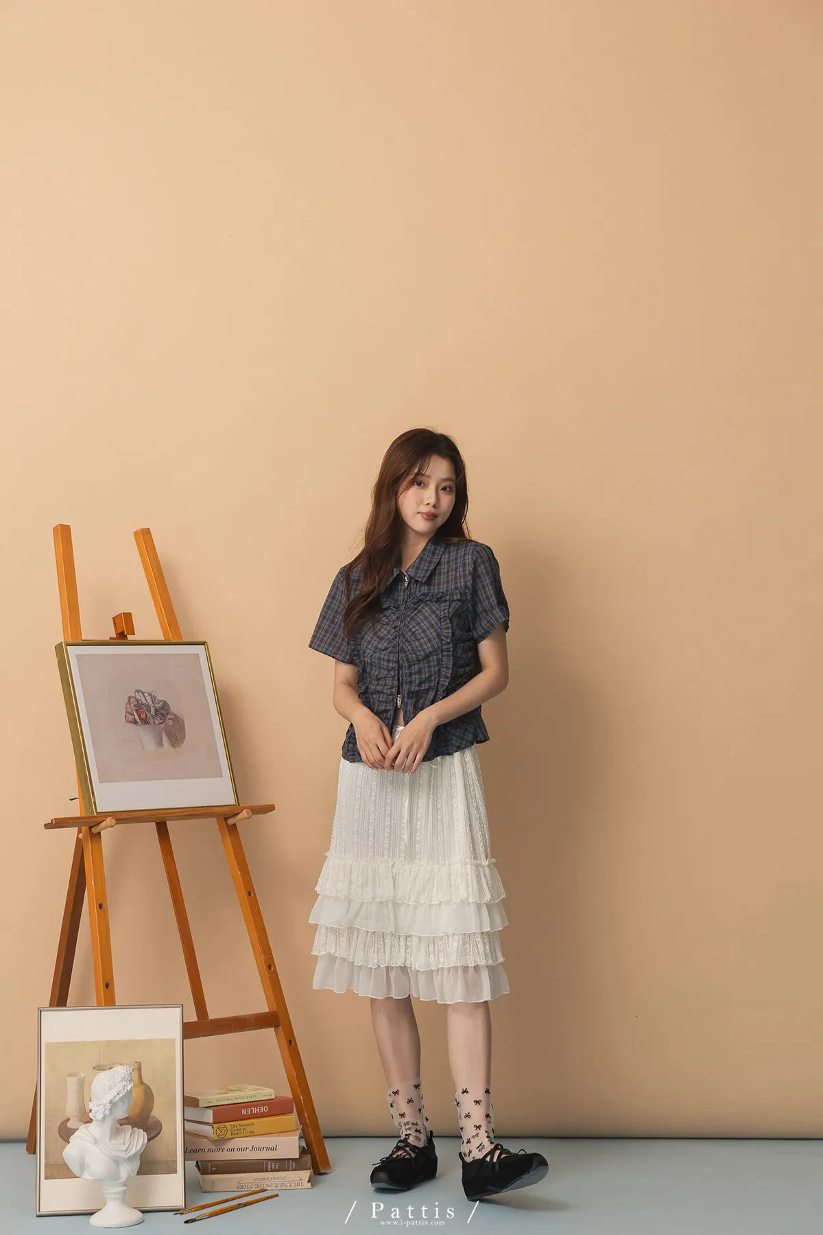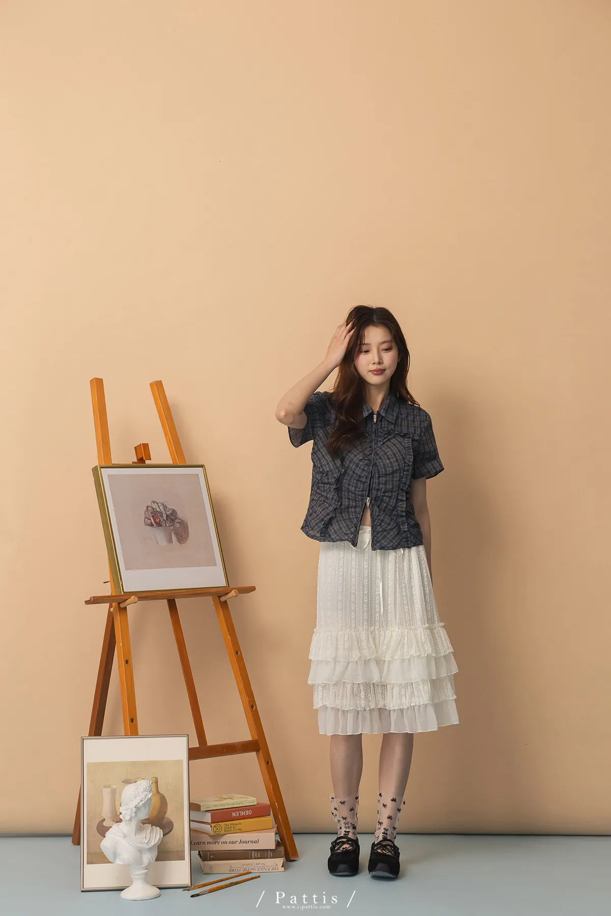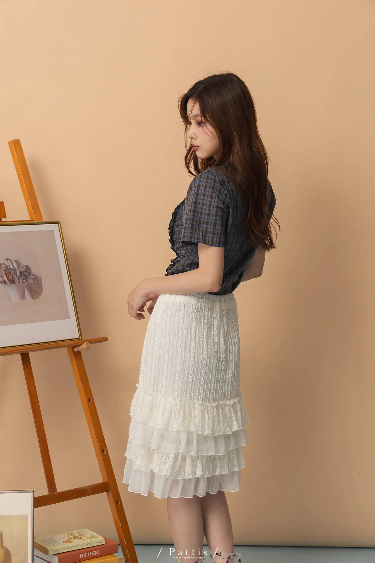 (現貨)浪漫光柵 | 點點條紋荷葉蕾絲蛋糕裙(米白)