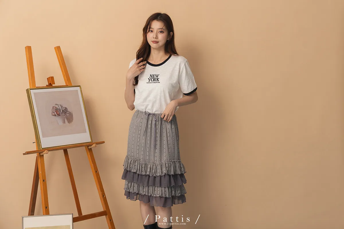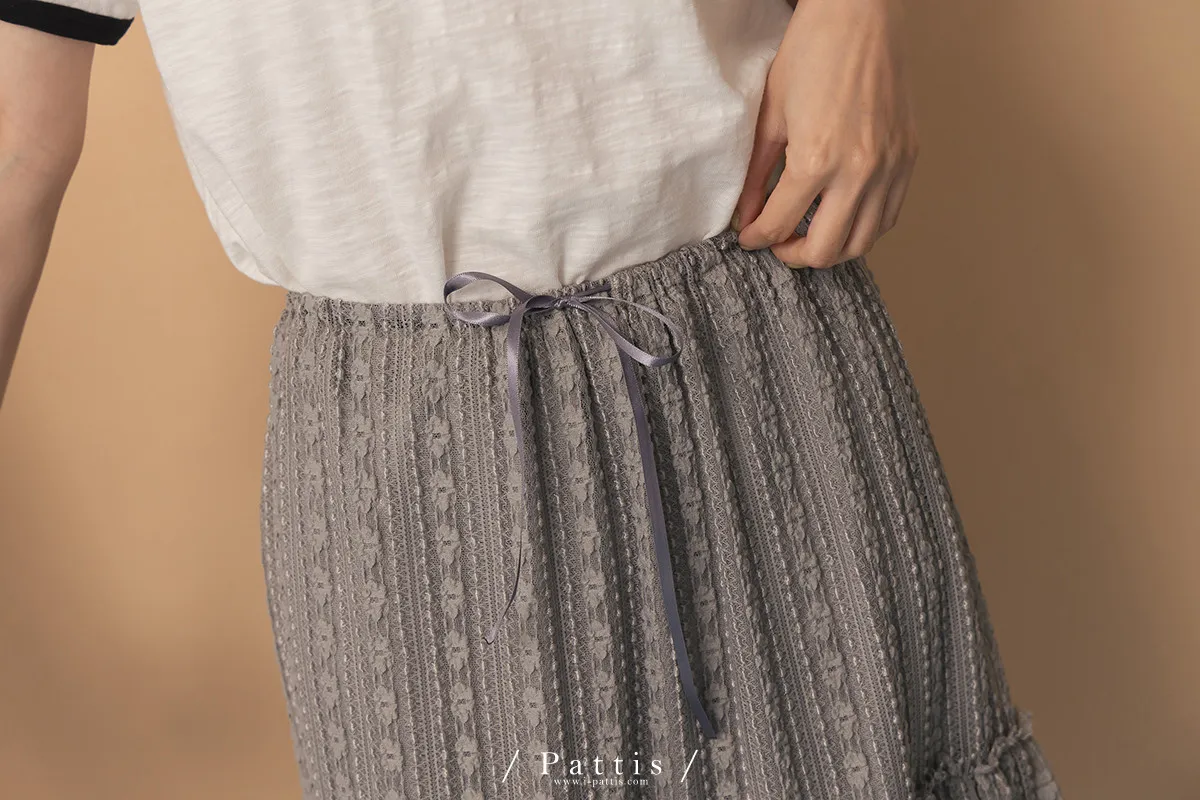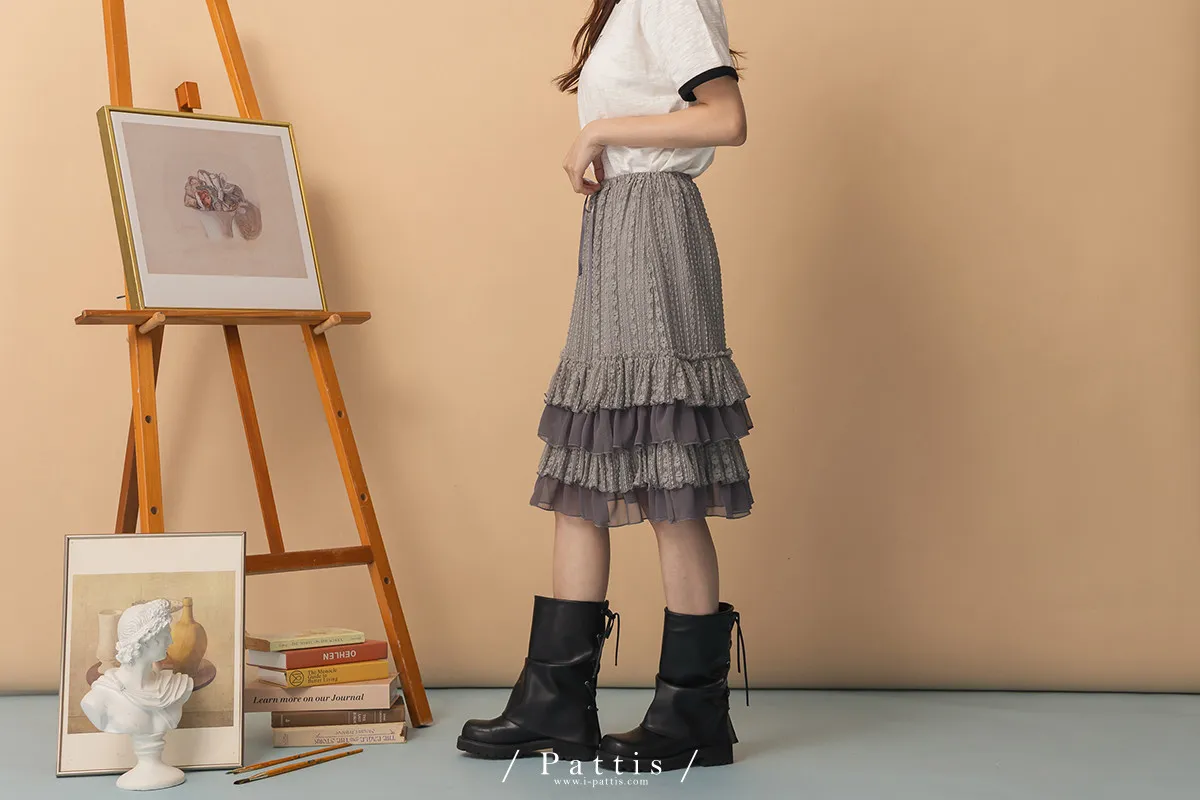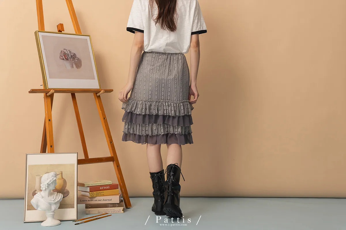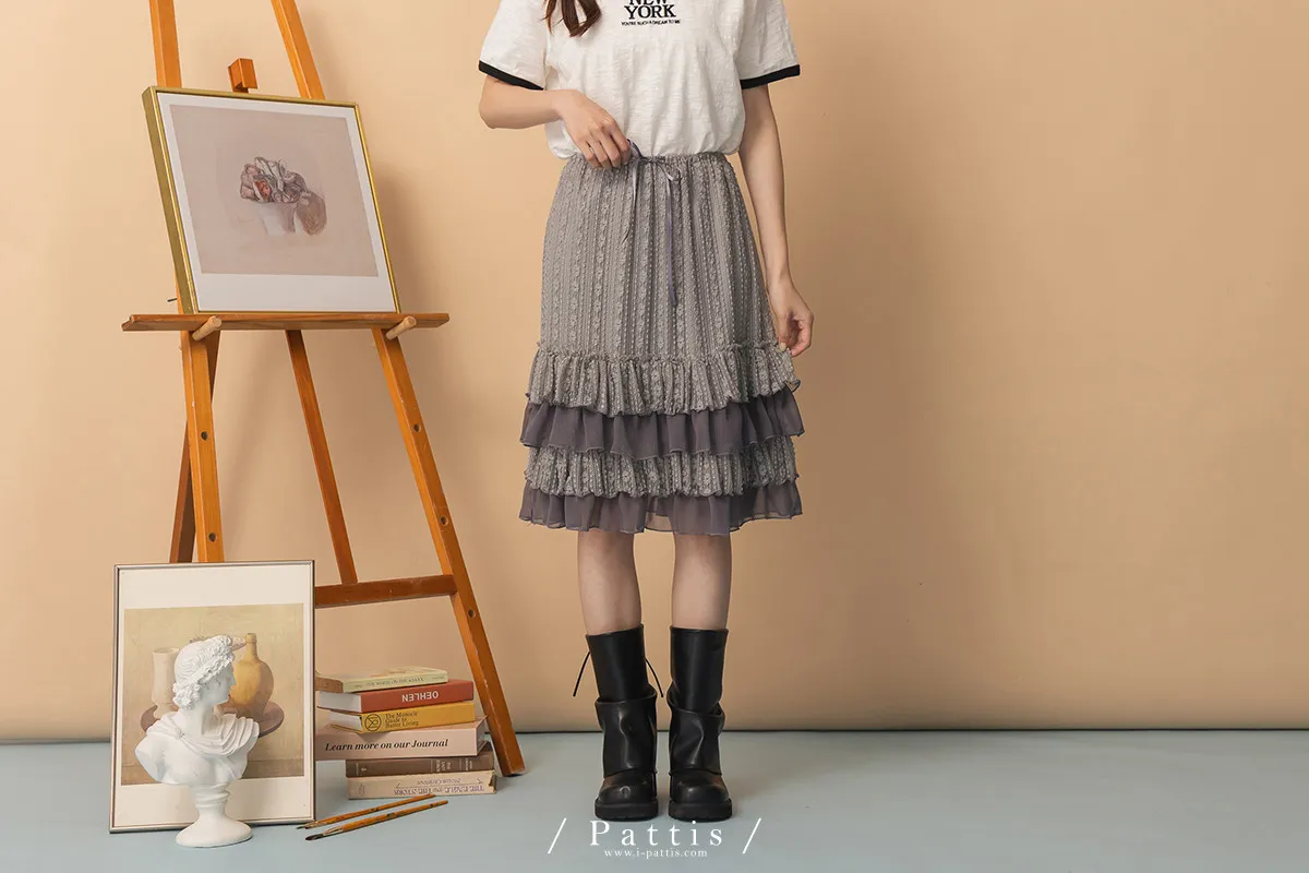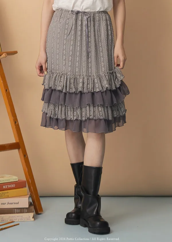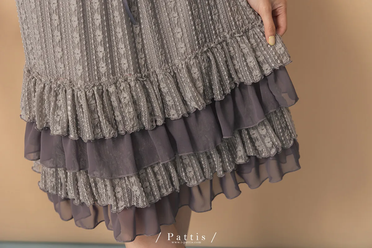 浪漫光柵 | 點點條紋荷葉蕾絲蛋糕裙(灰)