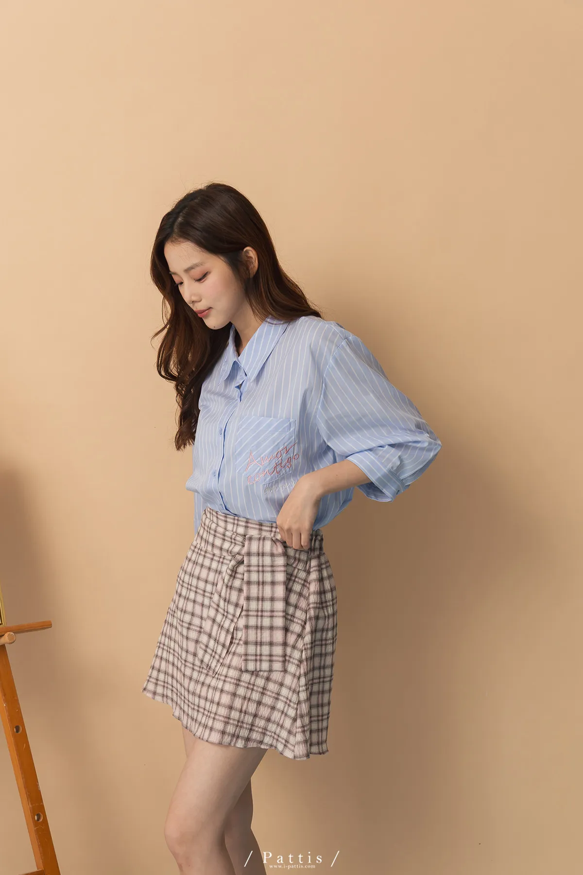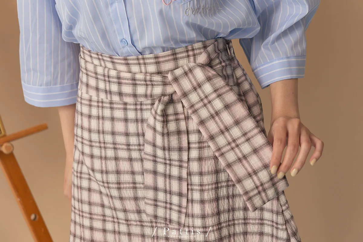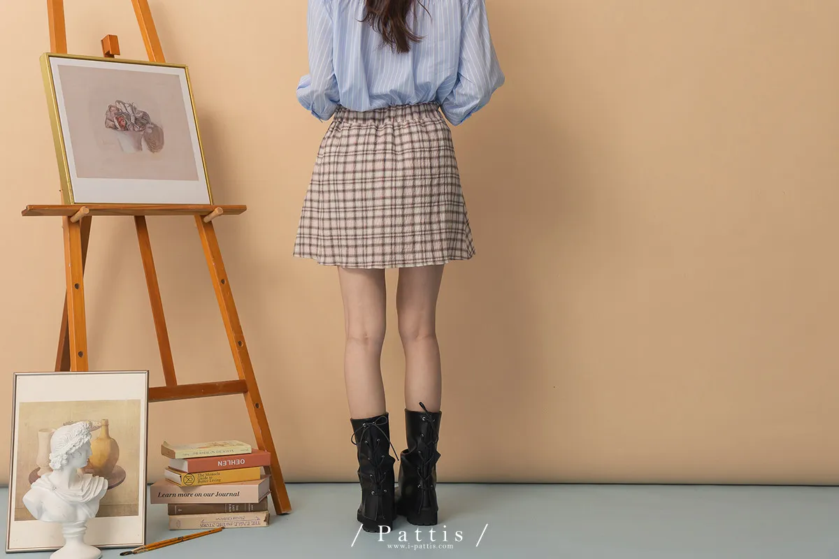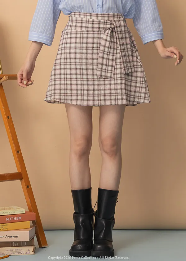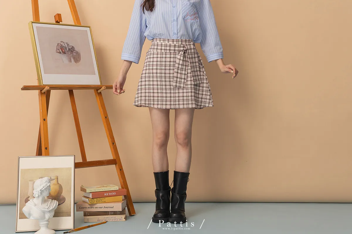 秩序與玩心並存 | 內襯短褲綁帶格紋簡約短裙(粉)
