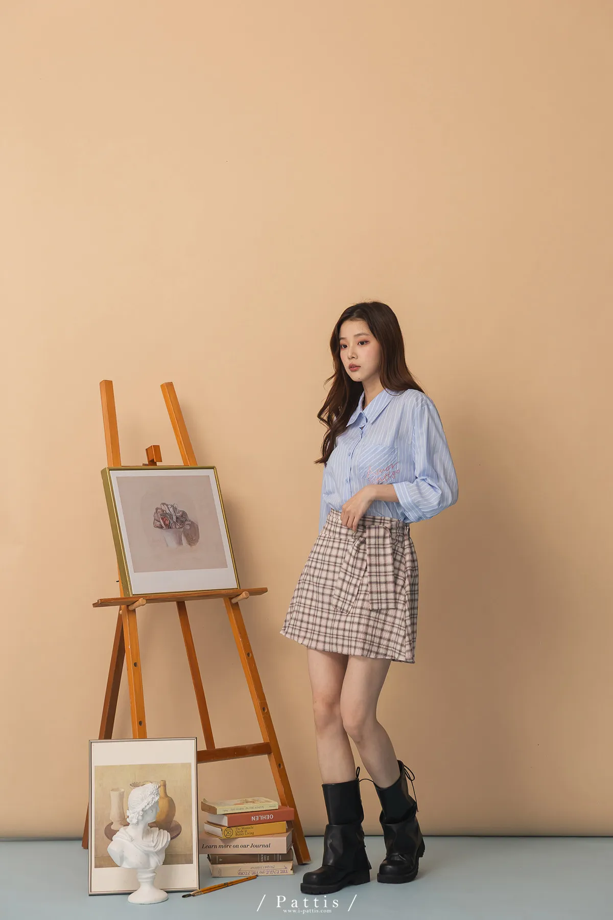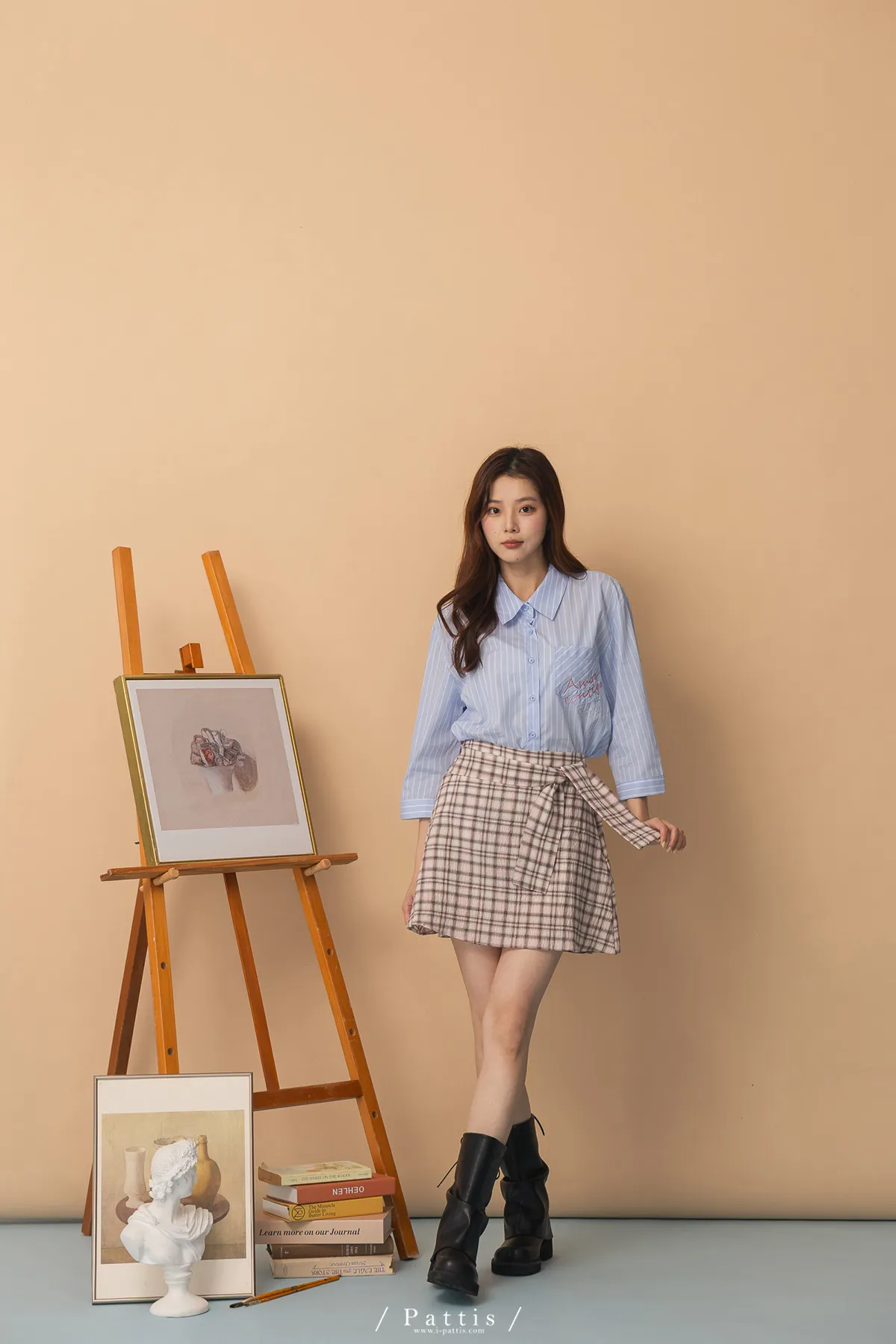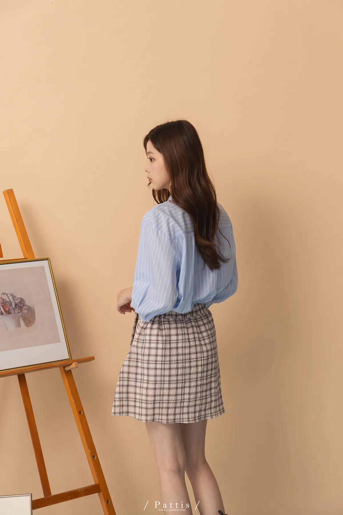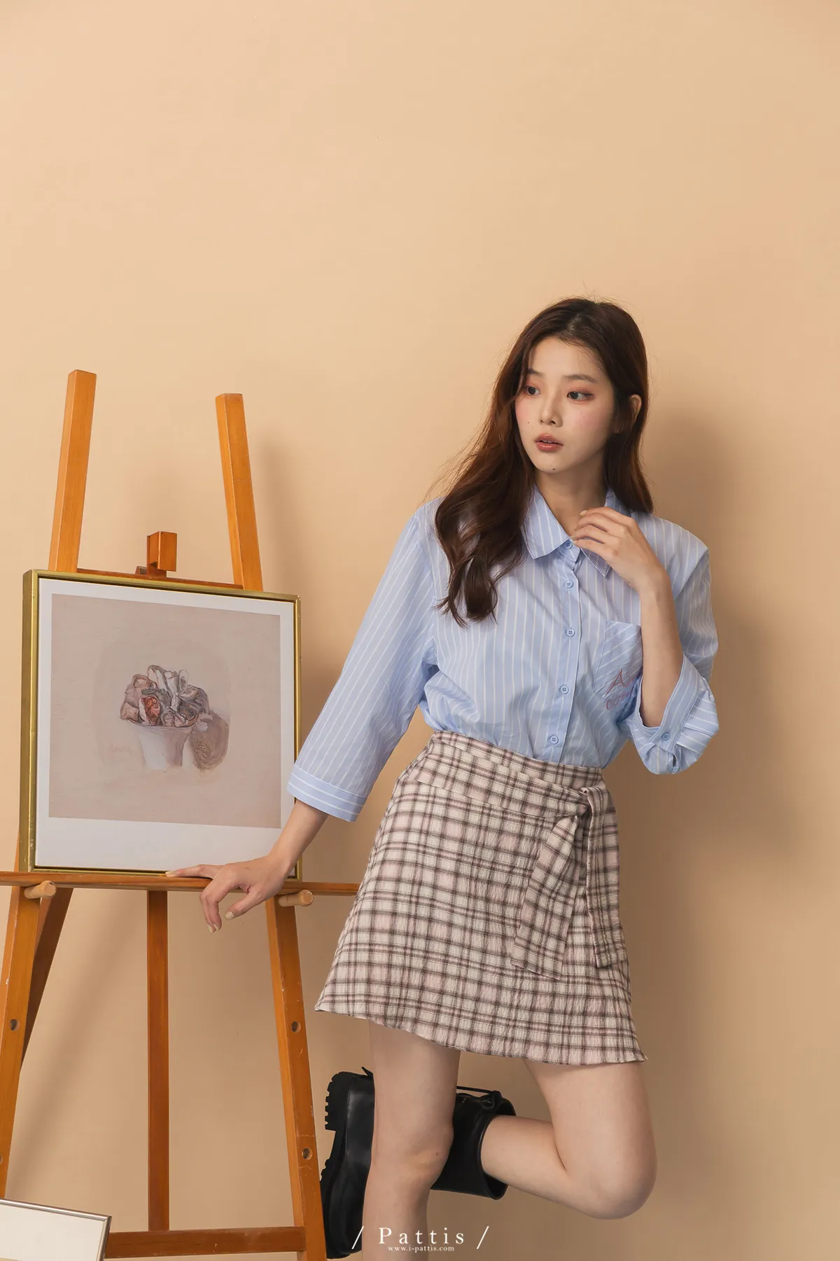 秩序與玩心並存 | 內襯短褲綁帶格紋簡約短裙(粉)