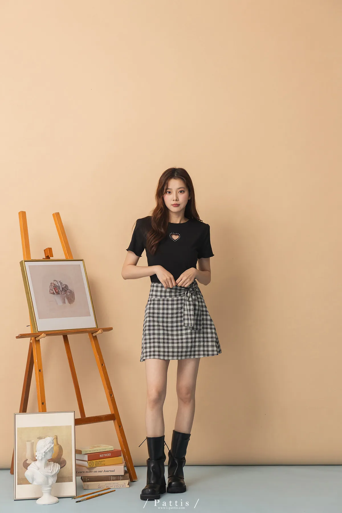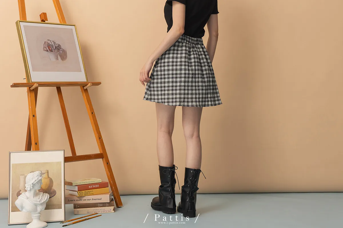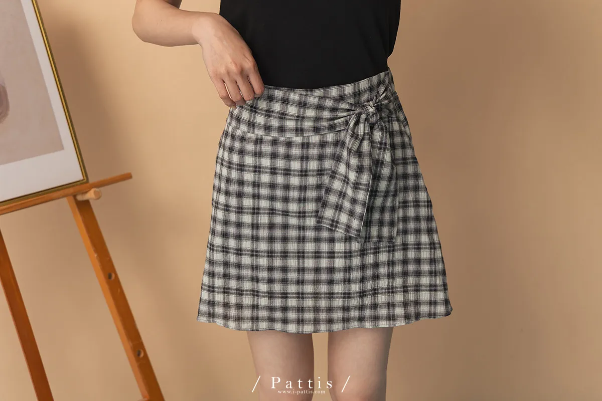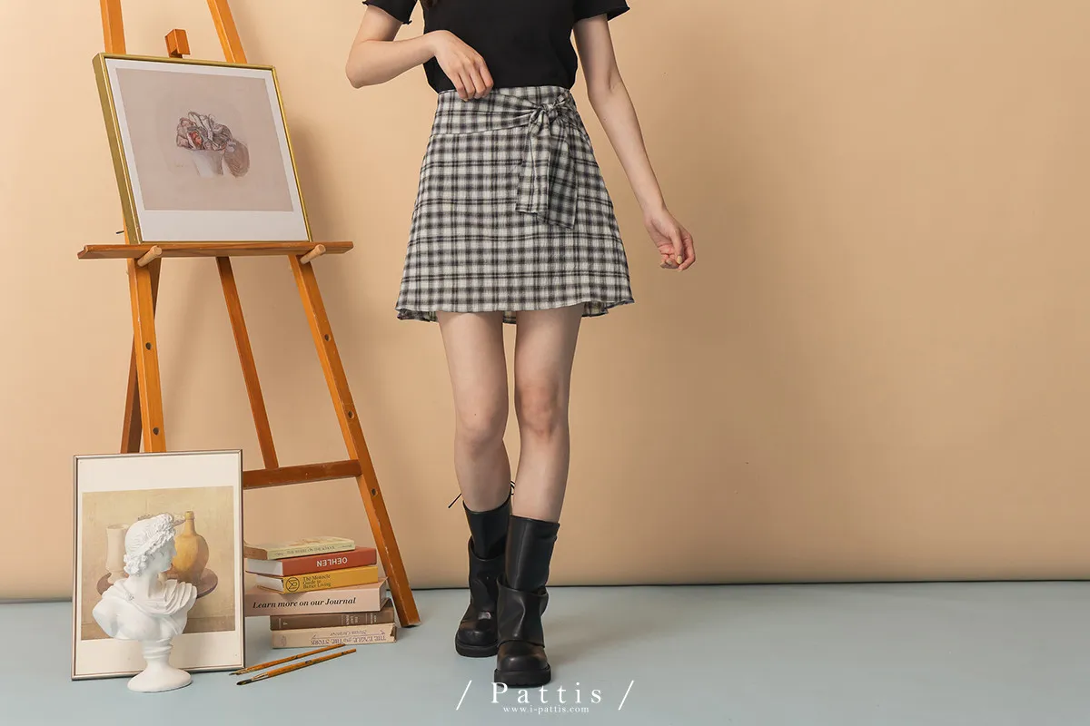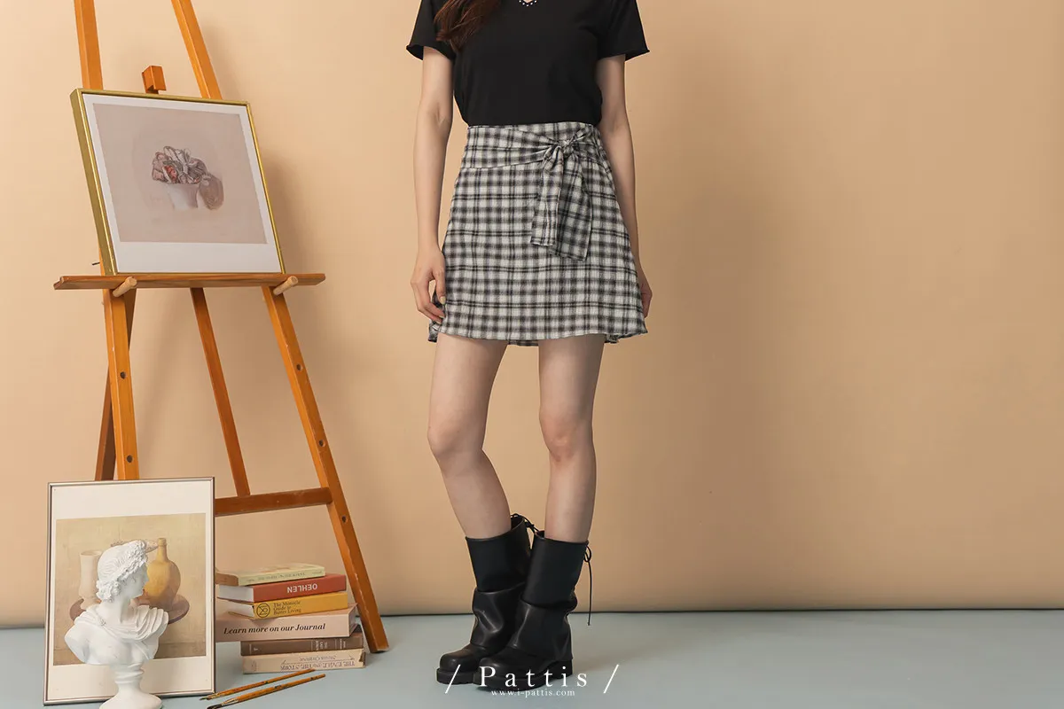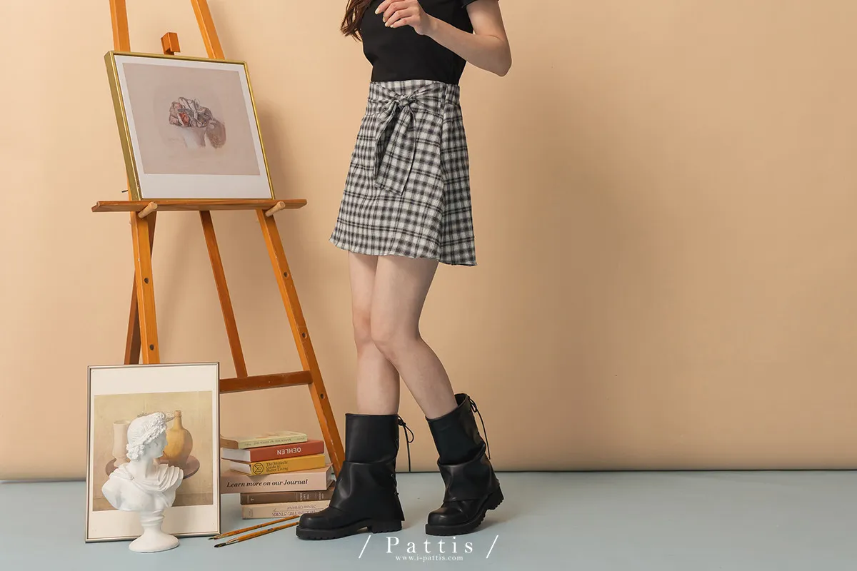 秩序與玩心並存 | 內襯短褲綁帶格紋簡約短裙(黑)