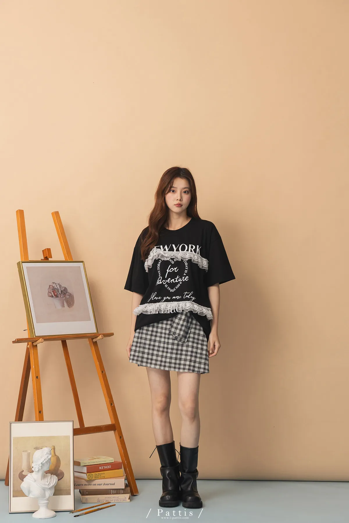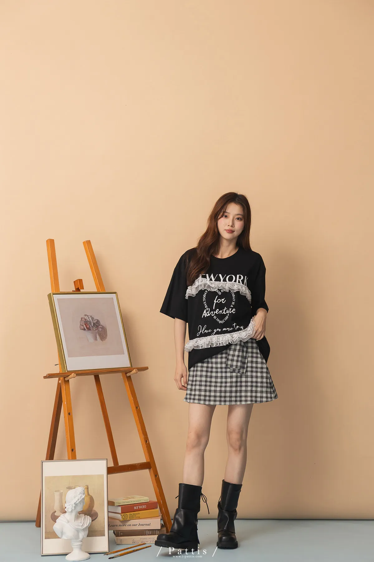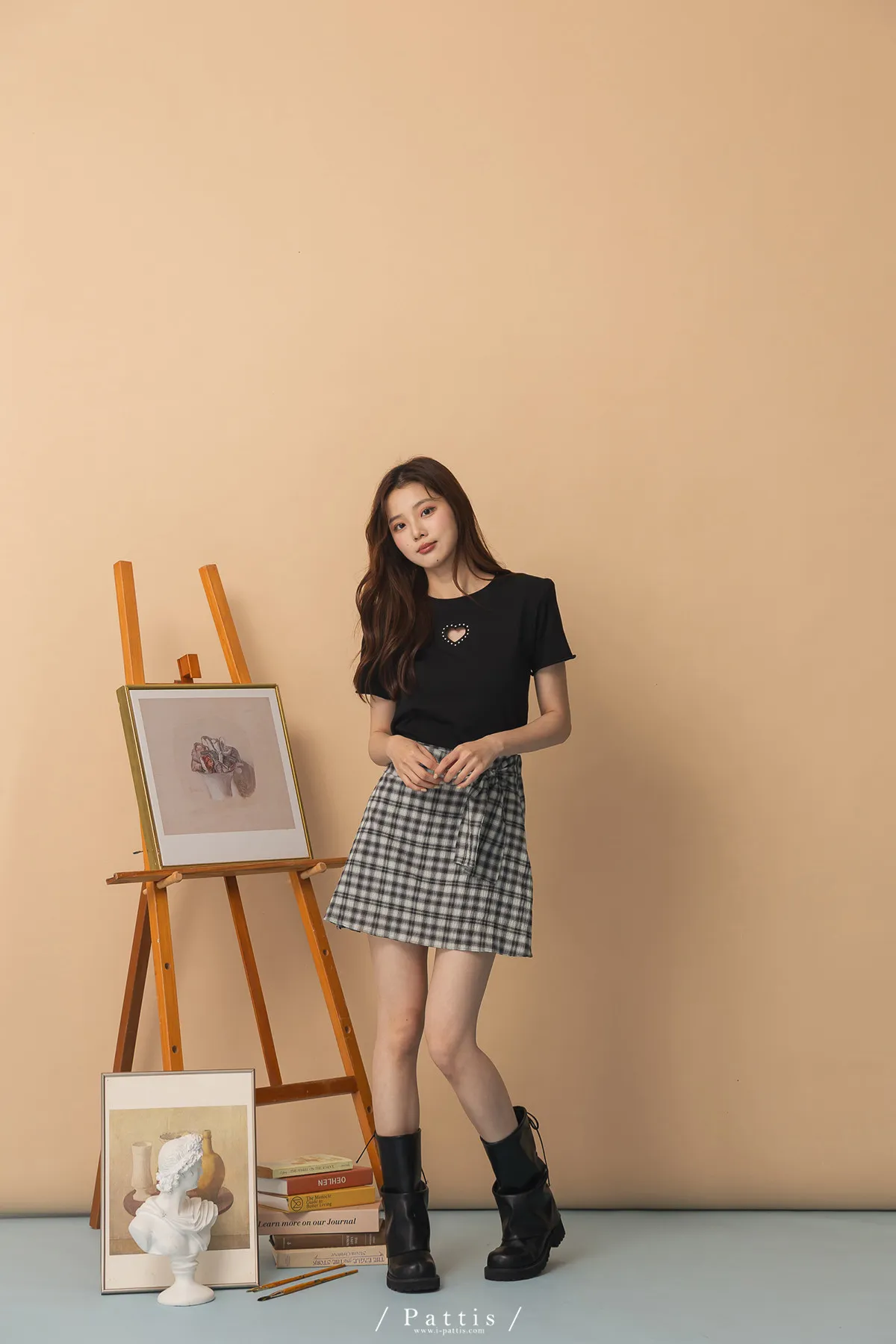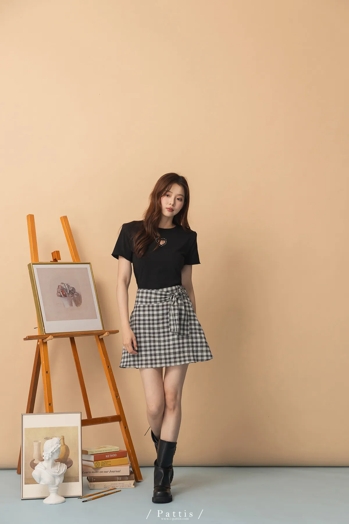 秩序與玩心並存 | 內襯短褲綁帶格紋簡約短裙(黑)