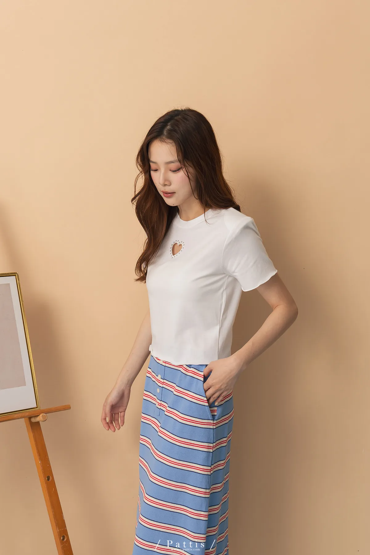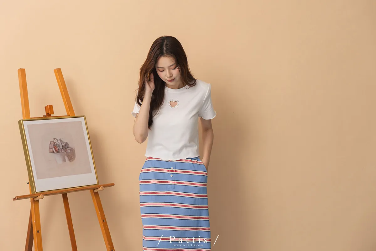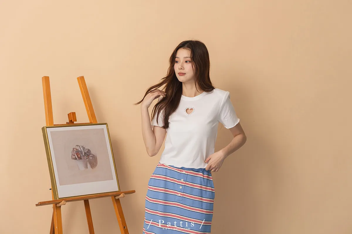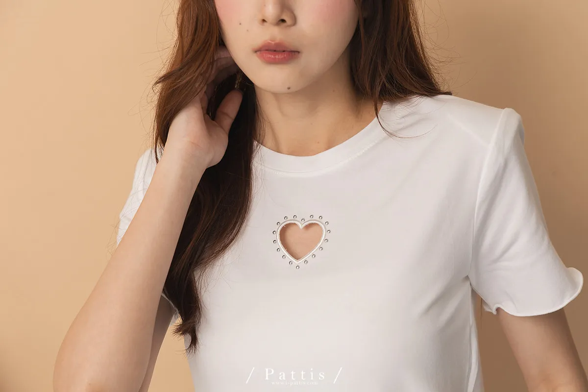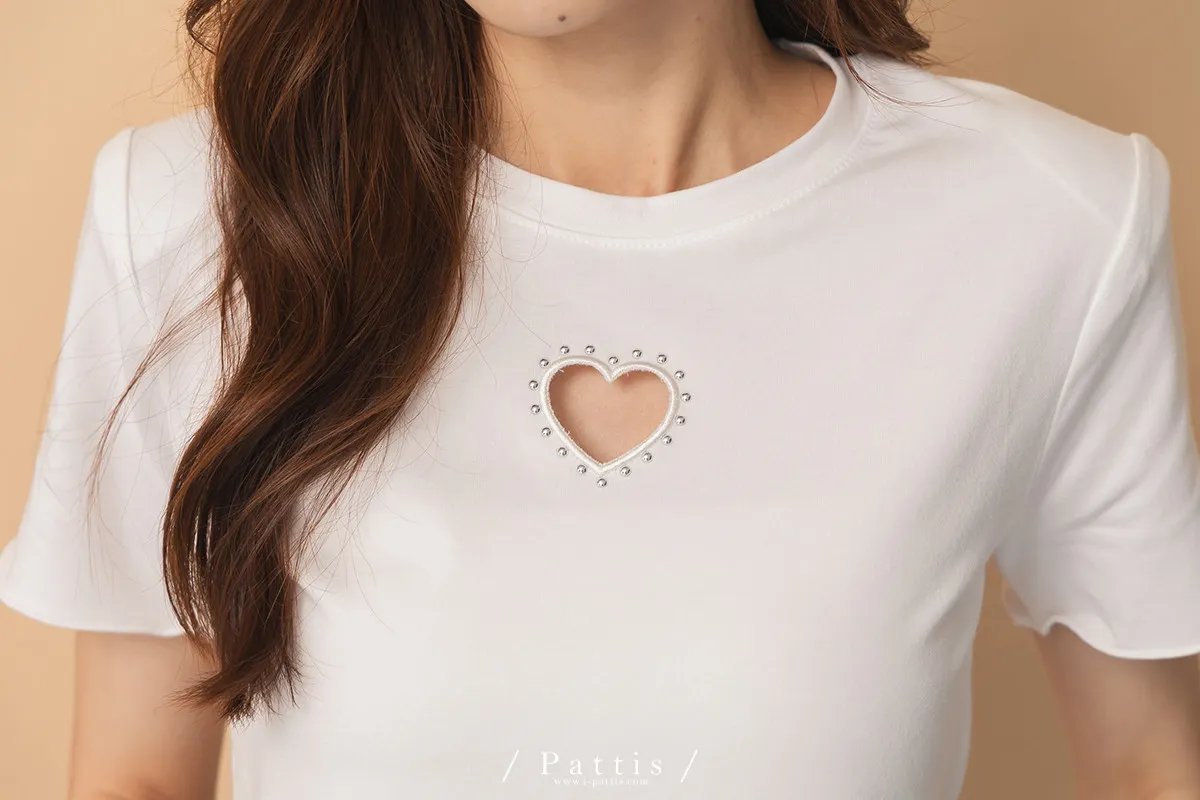 試探告白 | 釘珠縷空愛心短版T恤上衣(白)