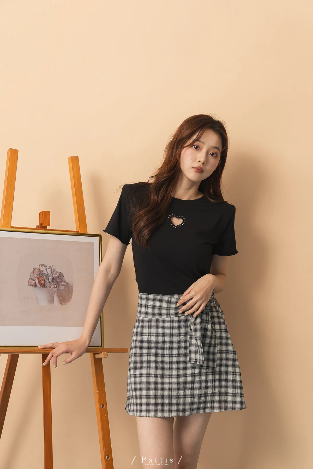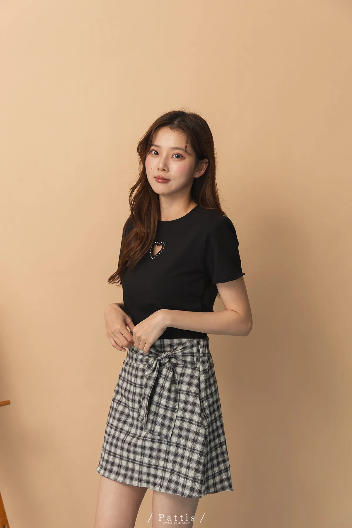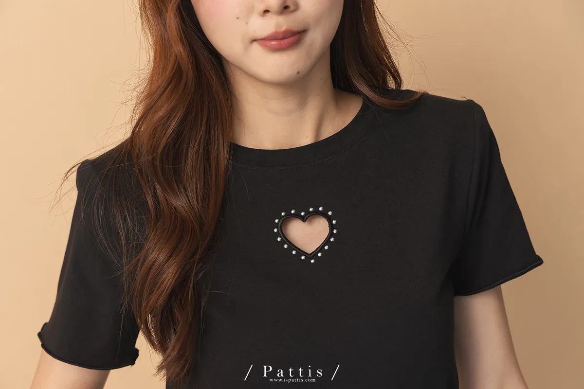 試探告白 | 釘珠縷空愛心短版T恤上衣(黑)