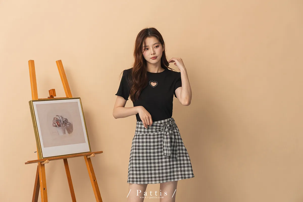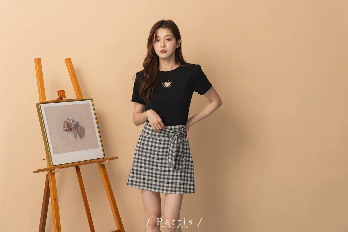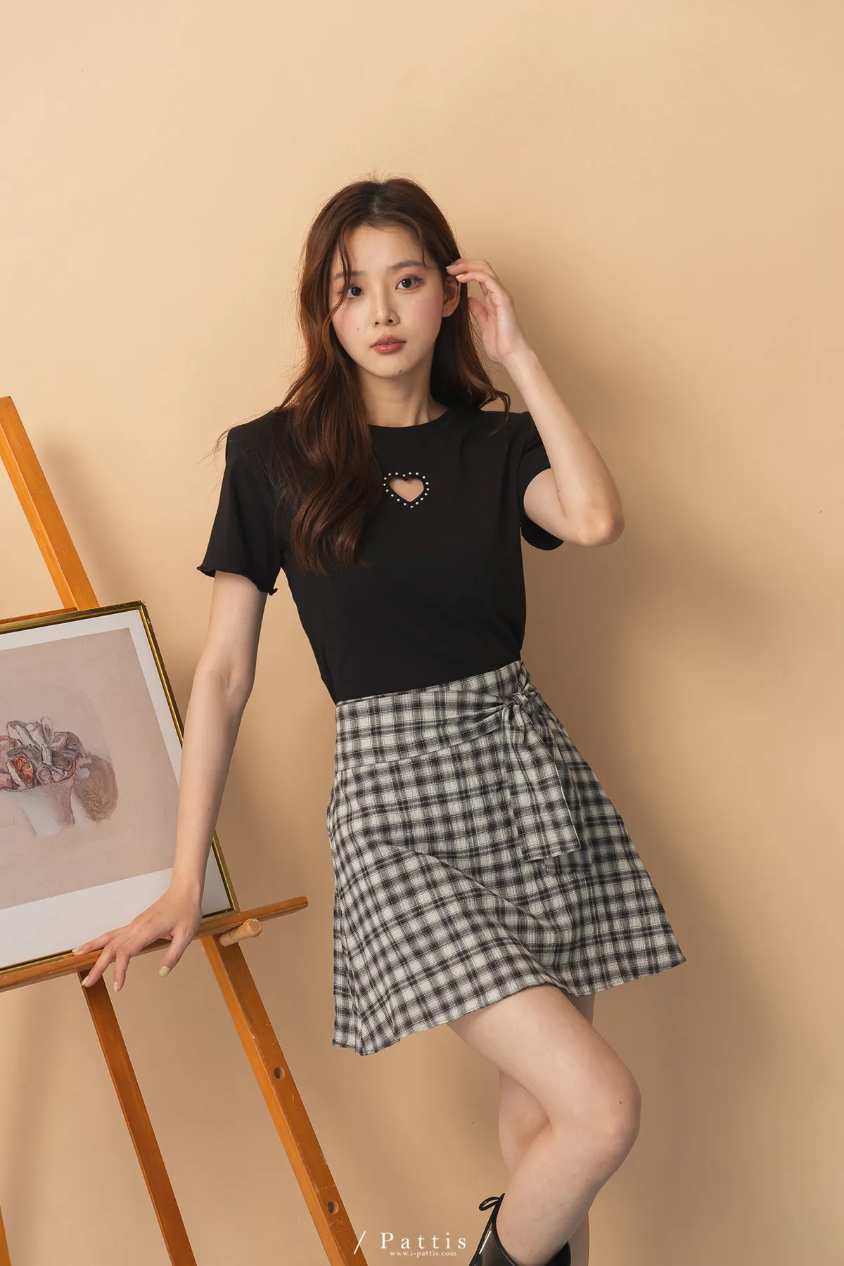 試探告白 | 釘珠縷空愛心短版T恤上衣(黑)