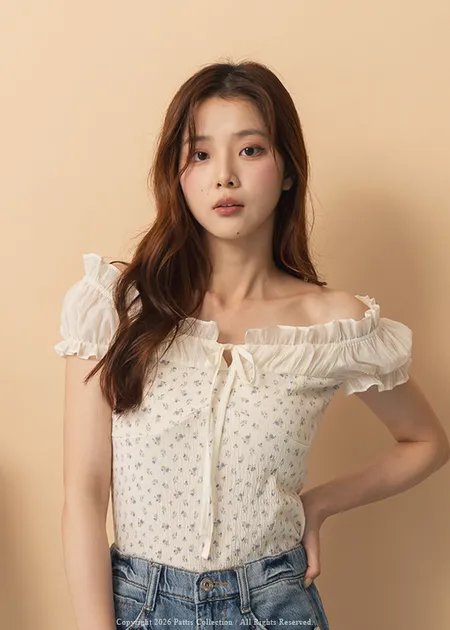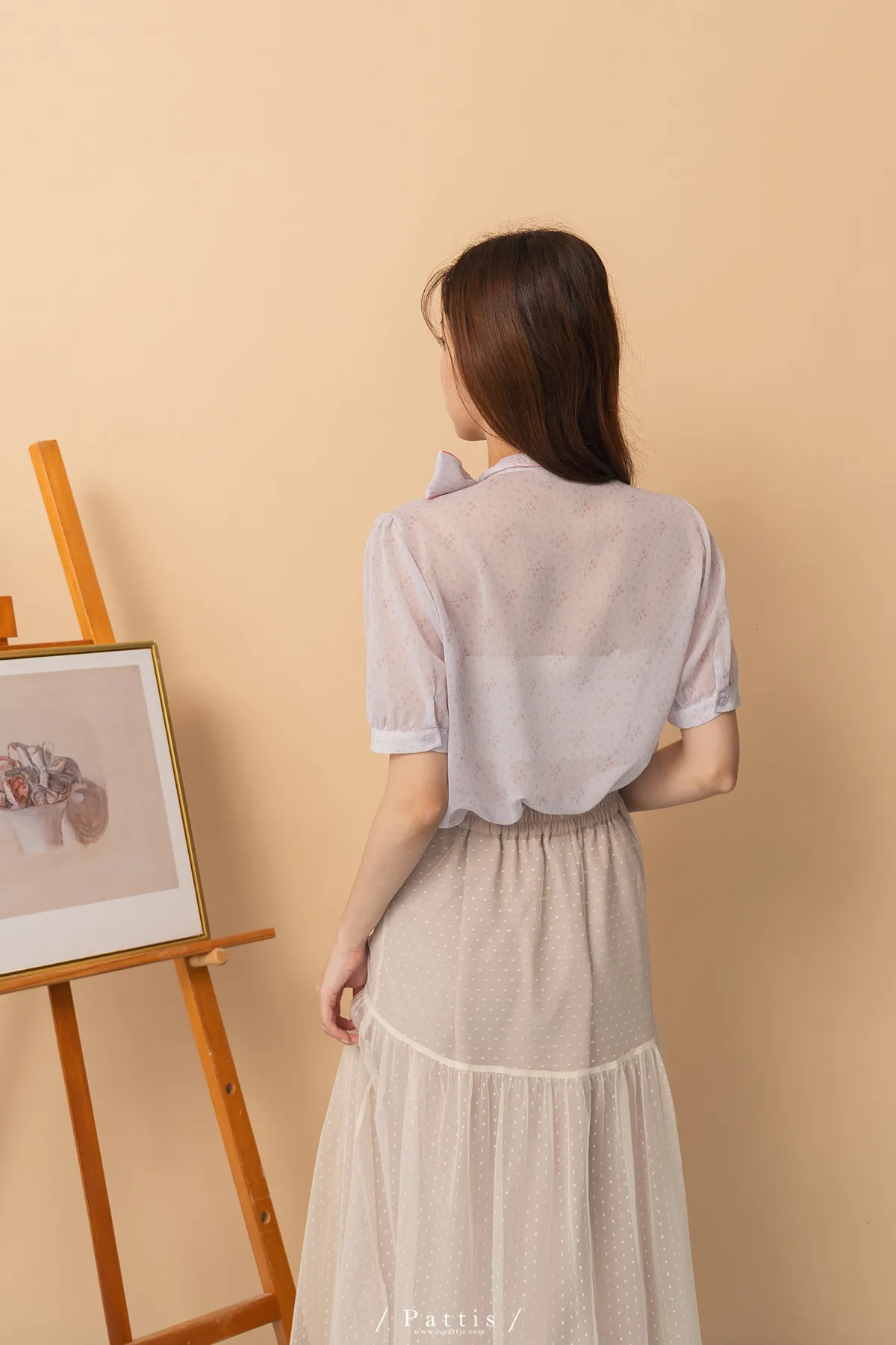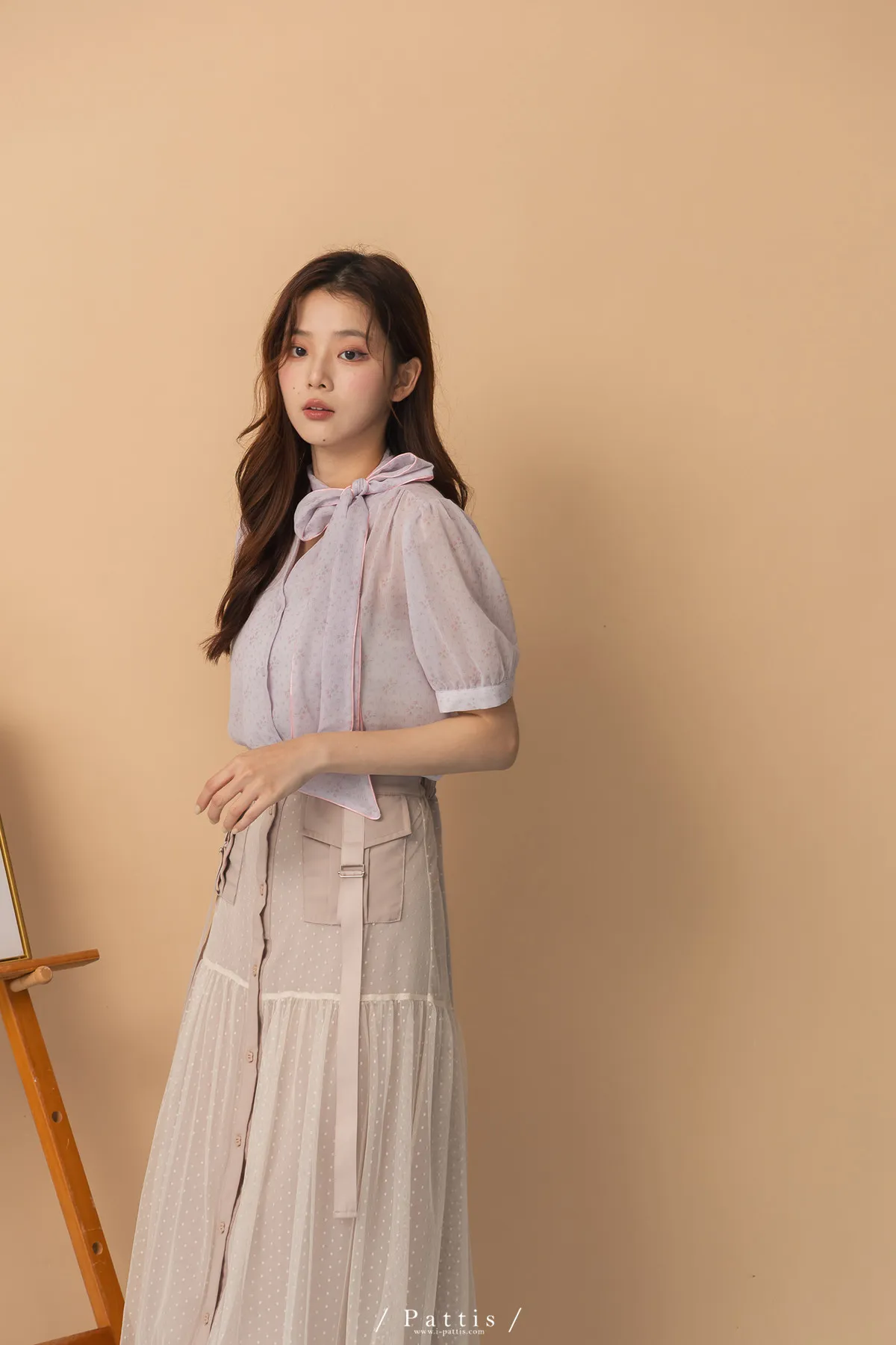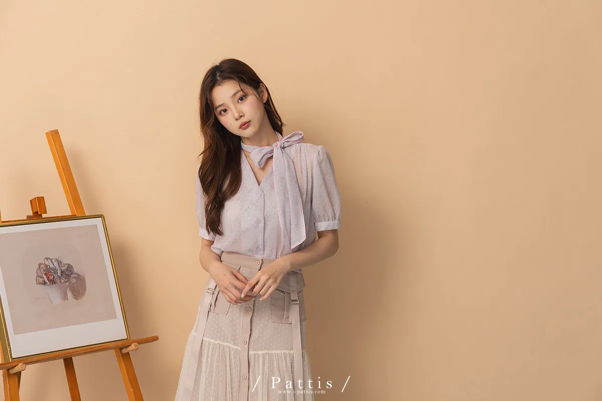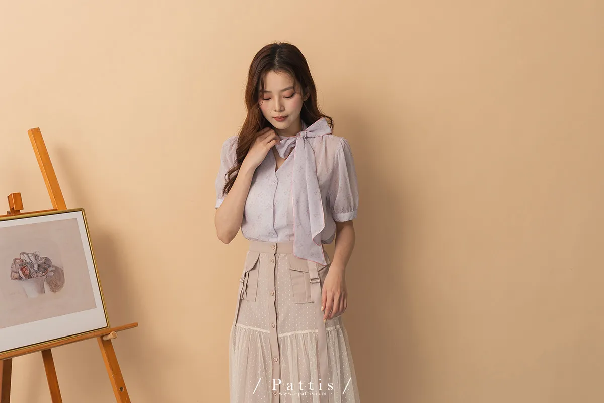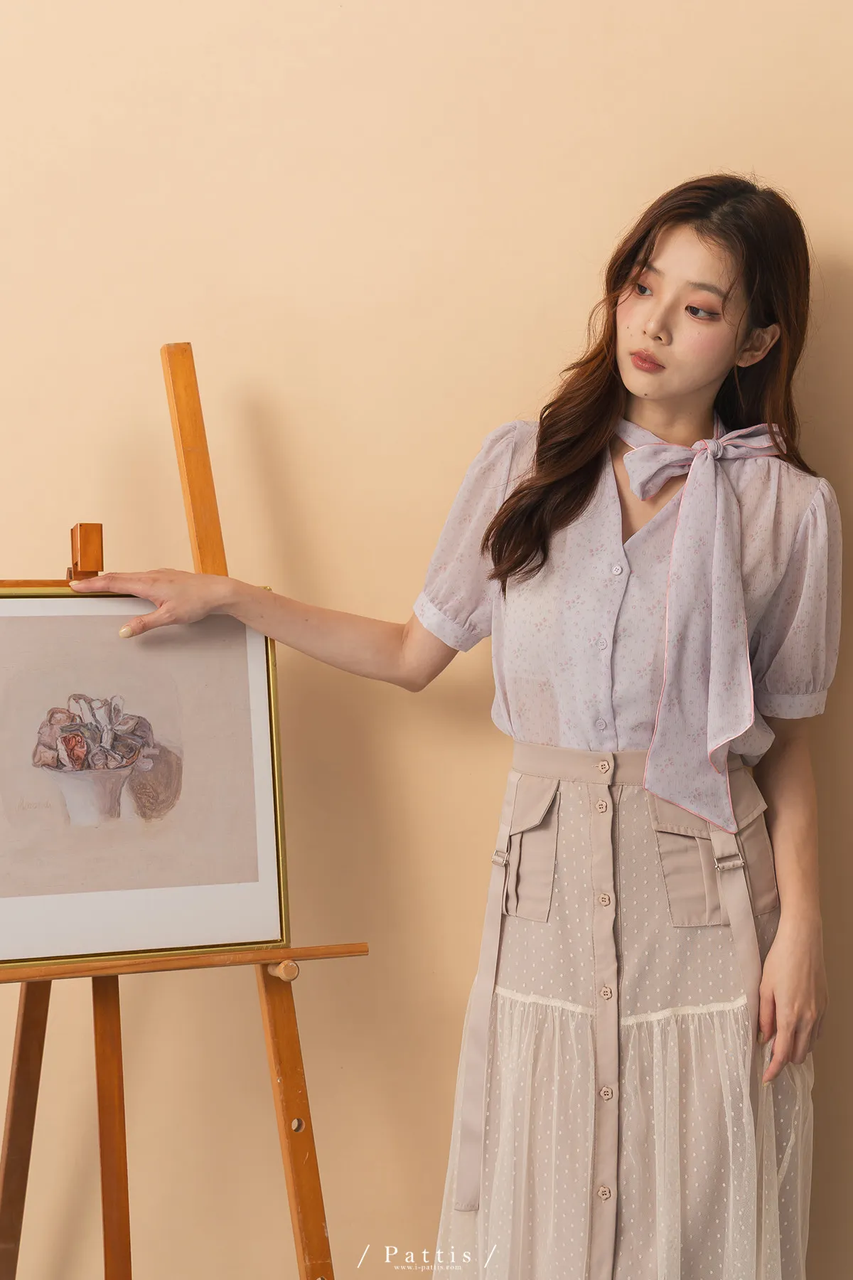 春日慵懶範本 | 滾邊小碎花領巾V領上衣(淺紫)