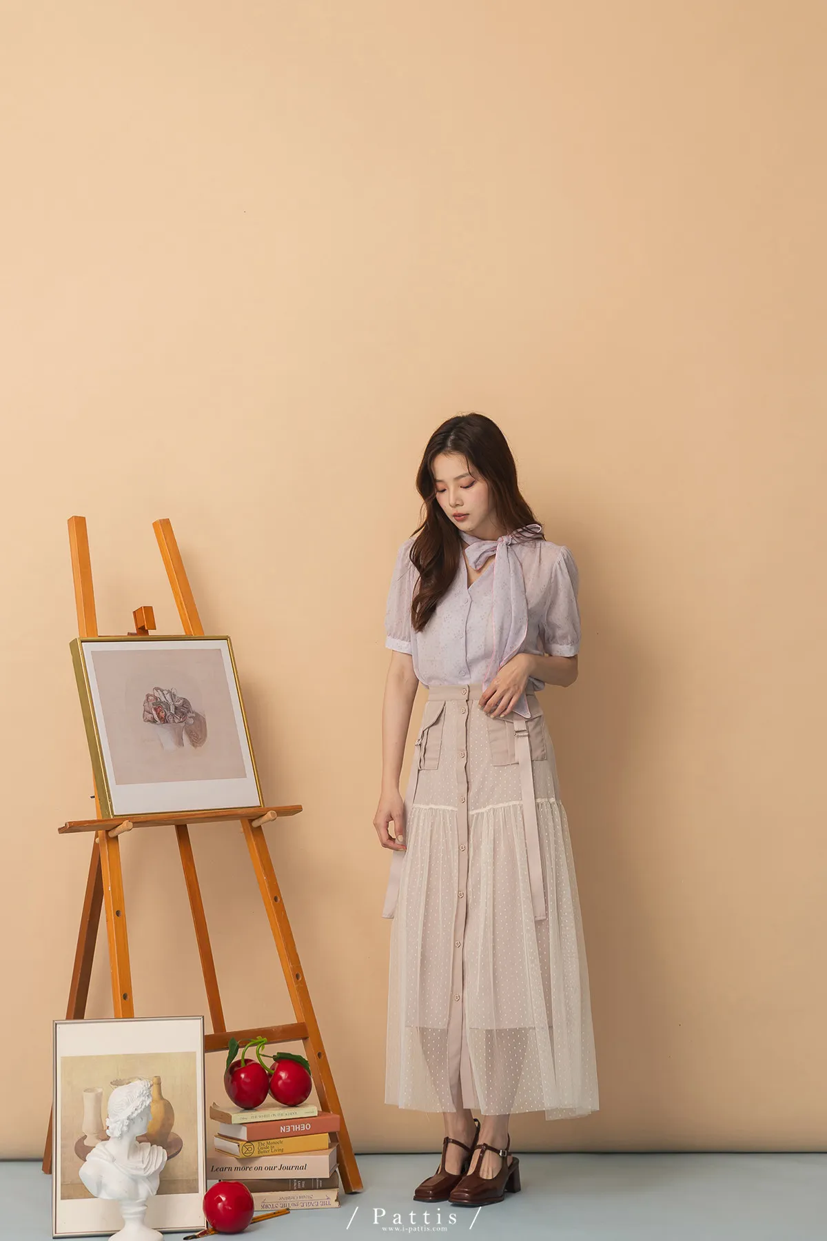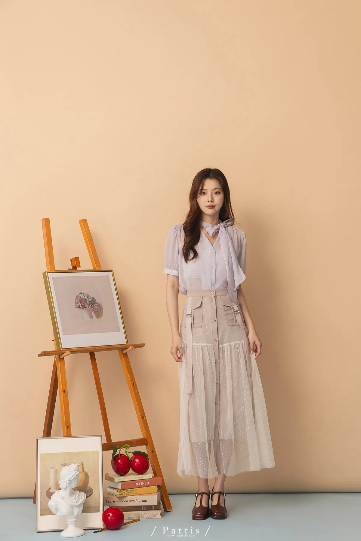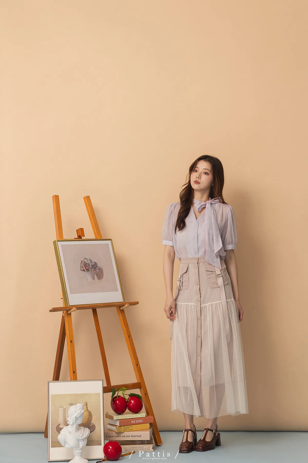 | F | 57 | 36 | 54 | 63 | 25 | 12(有袖釦) | 14 | 25 | 雪紡 | X | 前鈕釦全開,綁帶不可拆 |