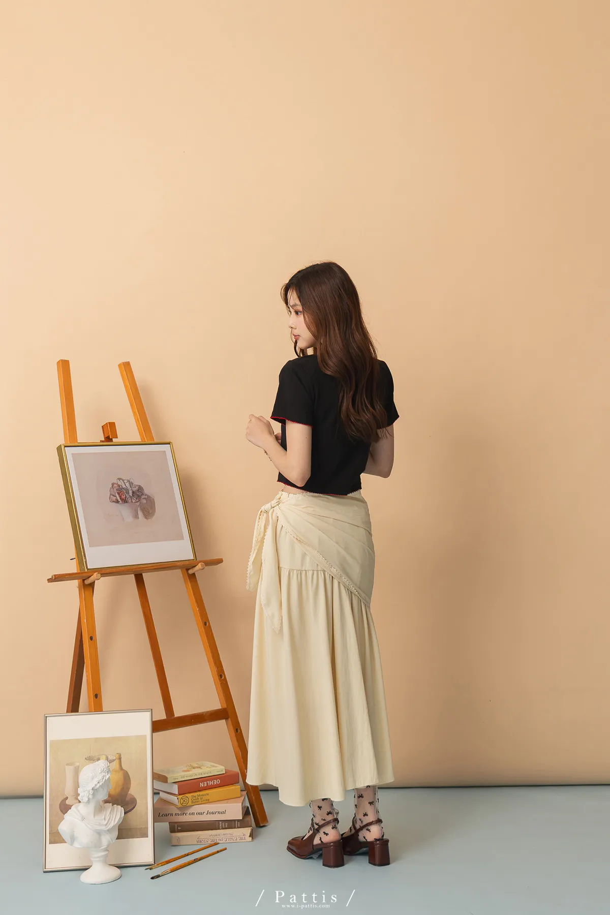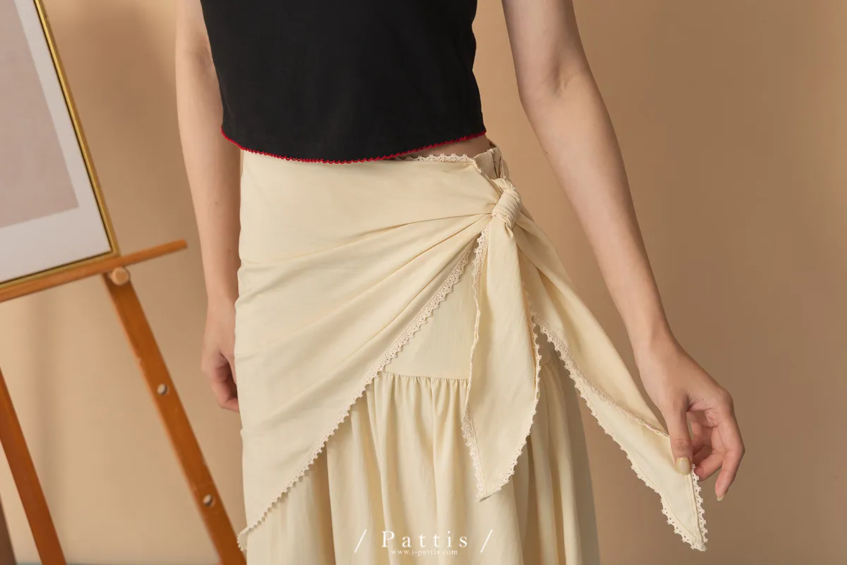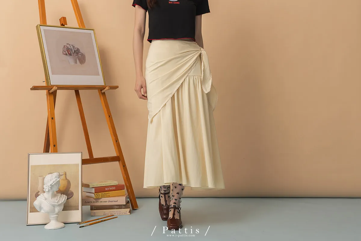 流光疆界 | 斜邊流蘇綁巾抓皺長裙(單一色)