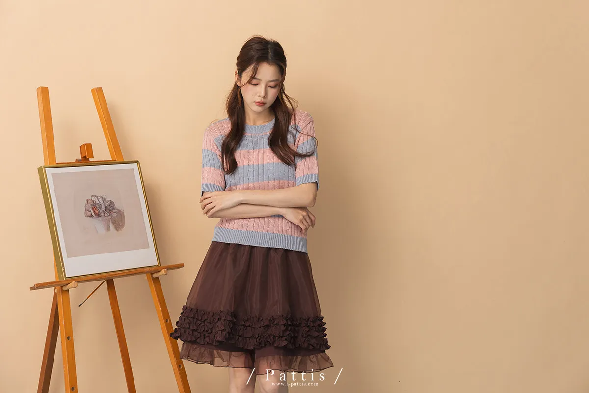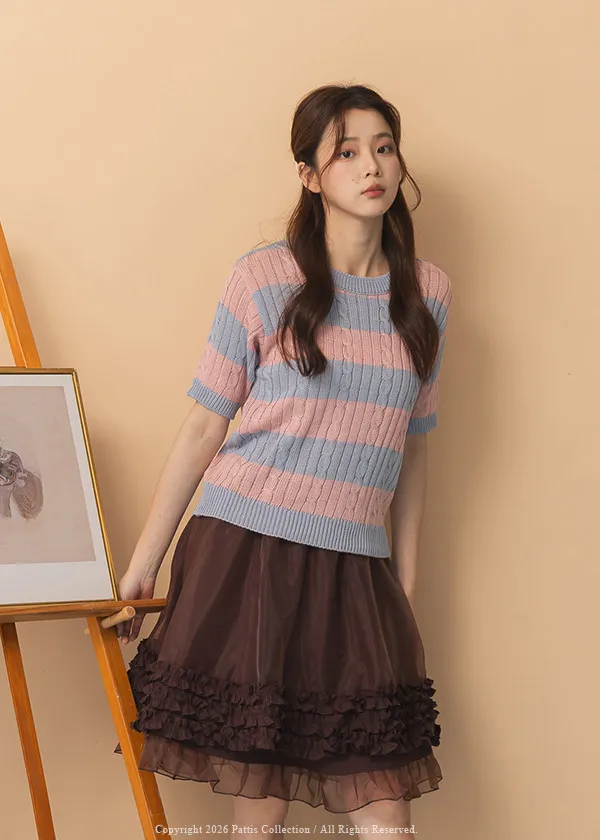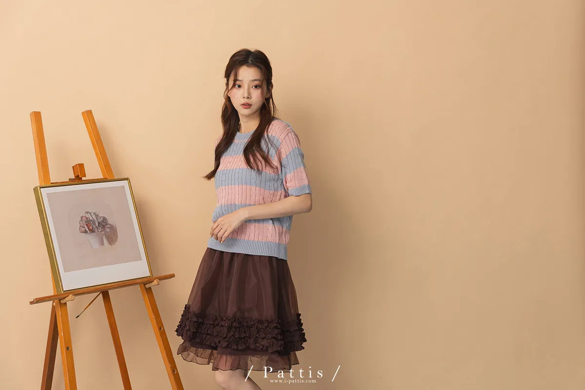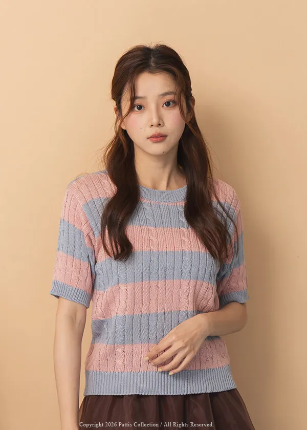 色彩規劃師 | 麻花條紋針織雙色上衣(粉藍)