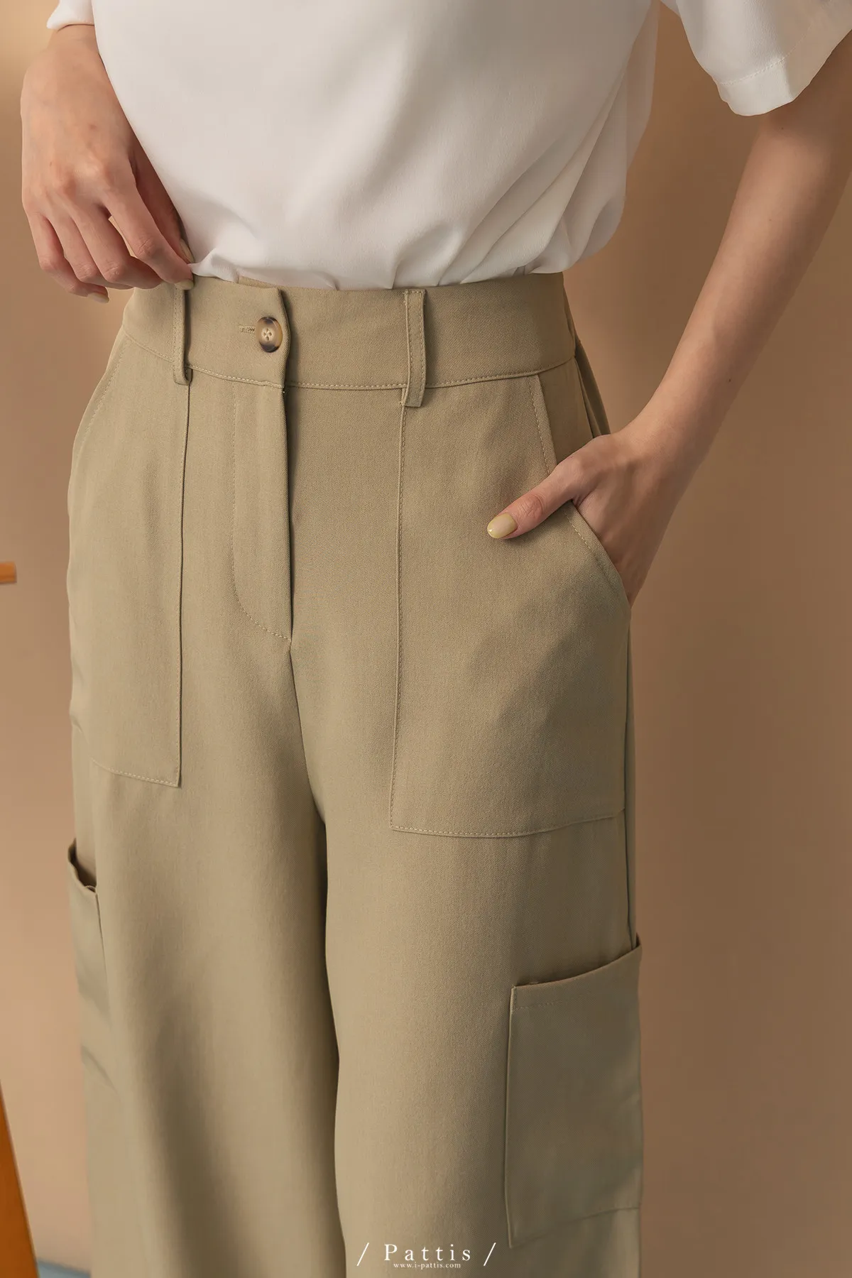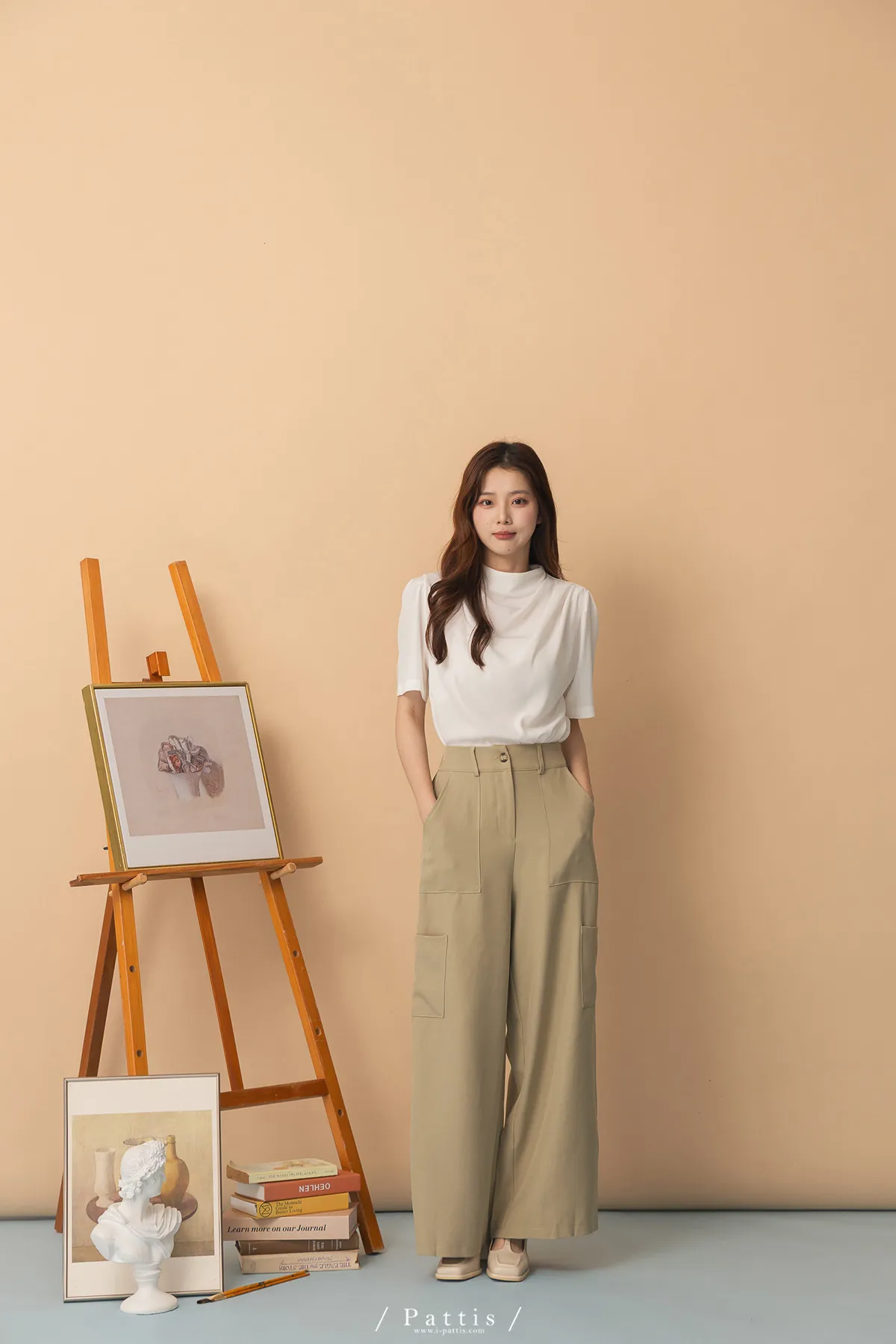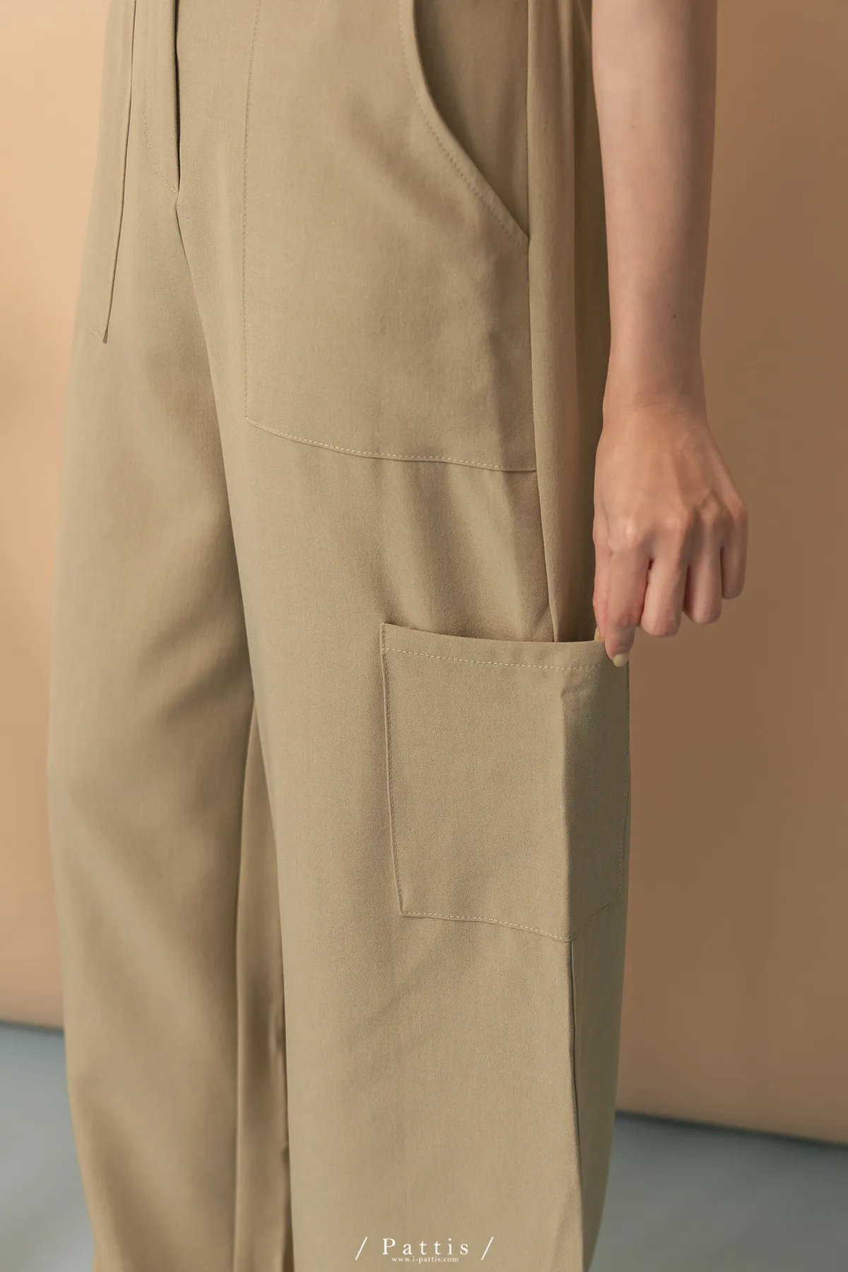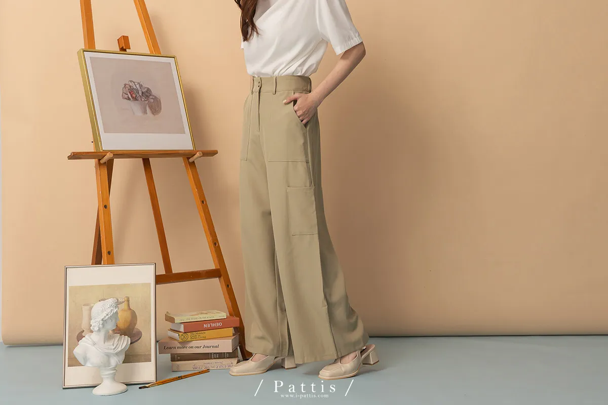 薄暮裡的荒野漫步 | 桃心領交叉綁帶背心+寬褲set組(淺灰綠)