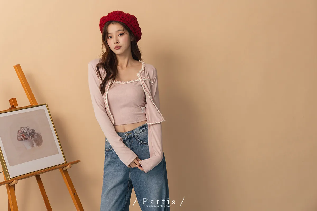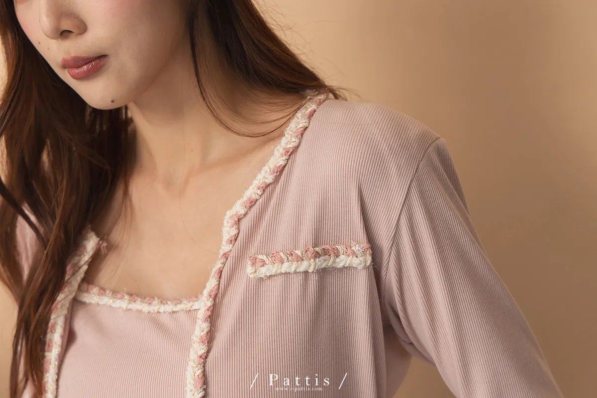 溫柔是不需聲張的勇氣 | 小香風滾邊背心+外套set組(粉)