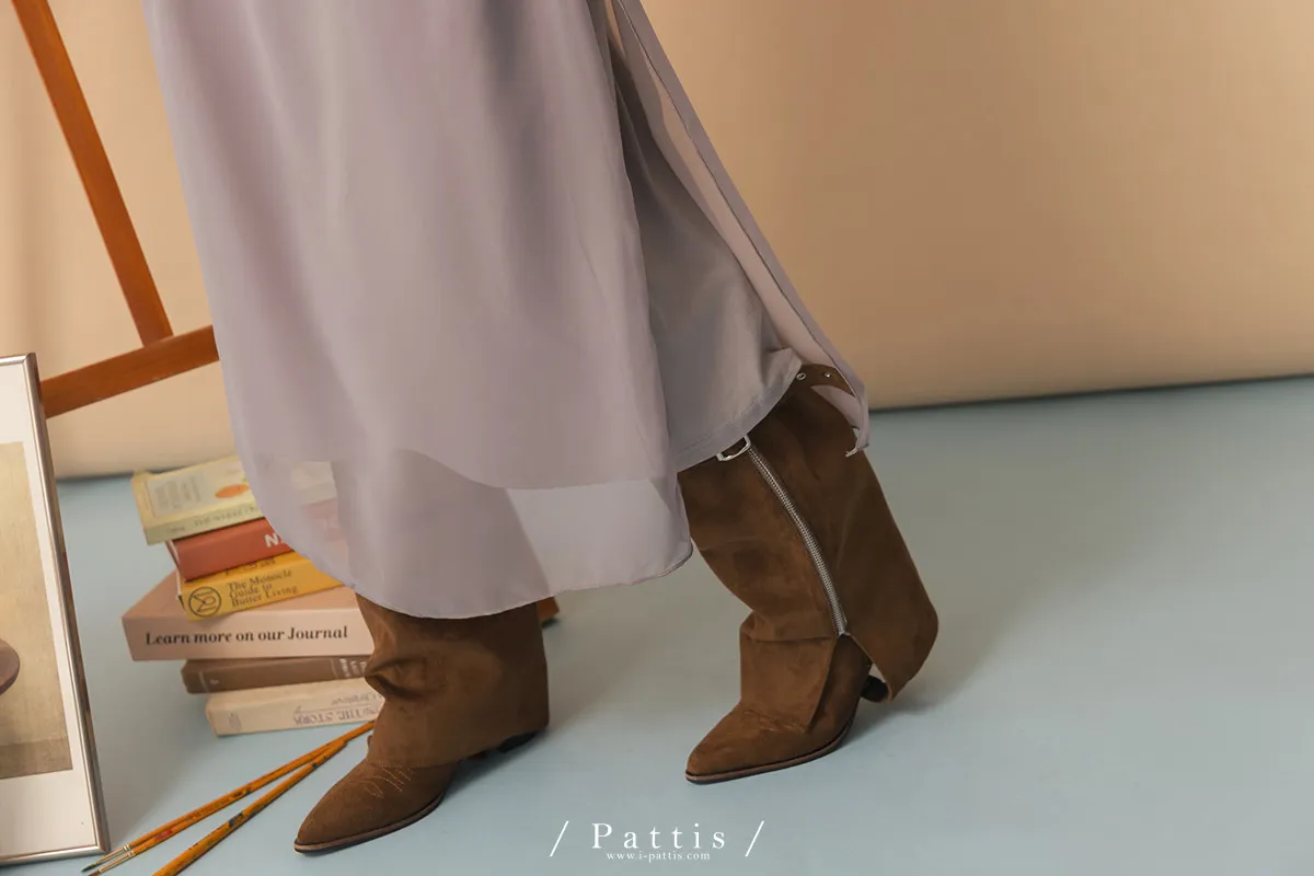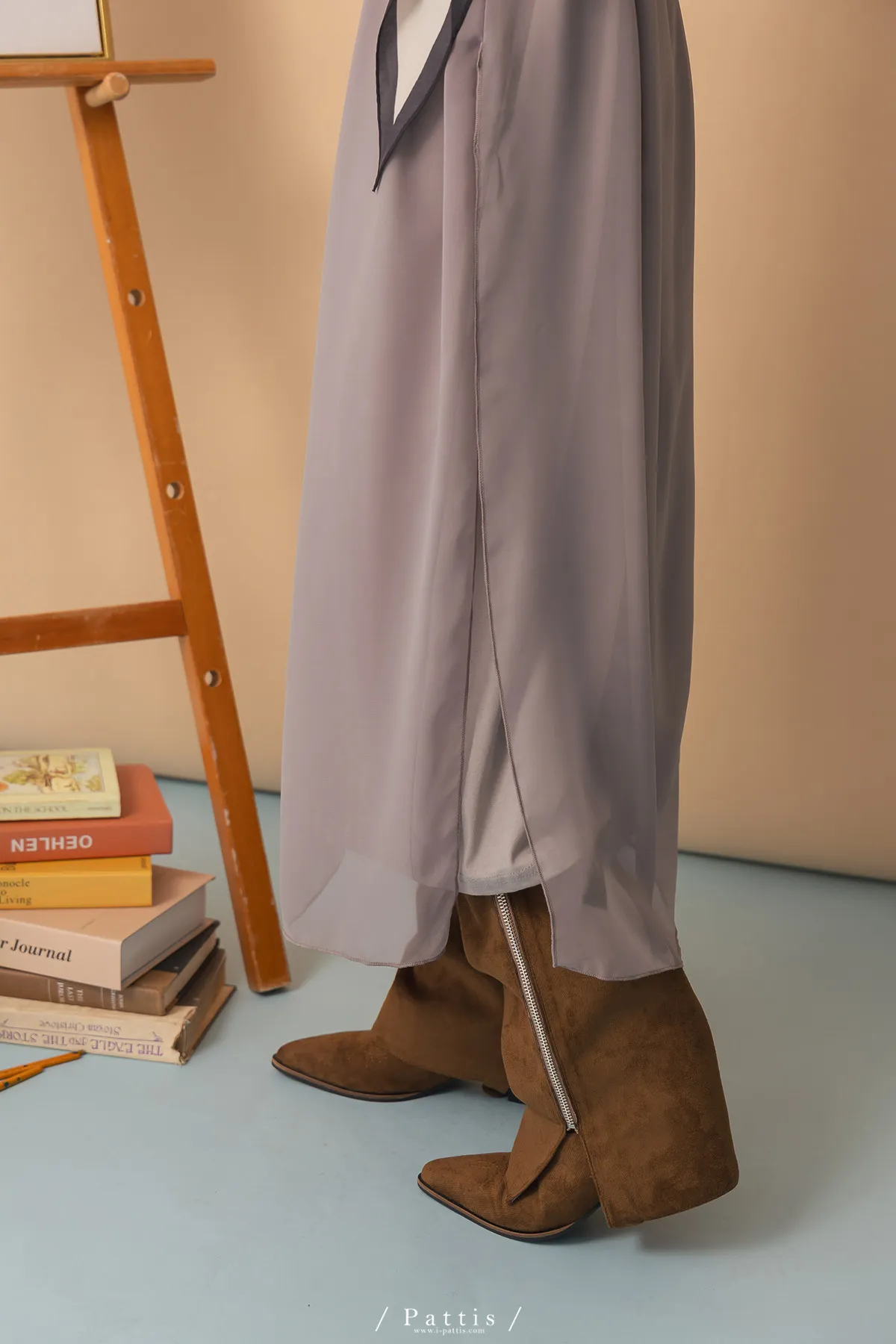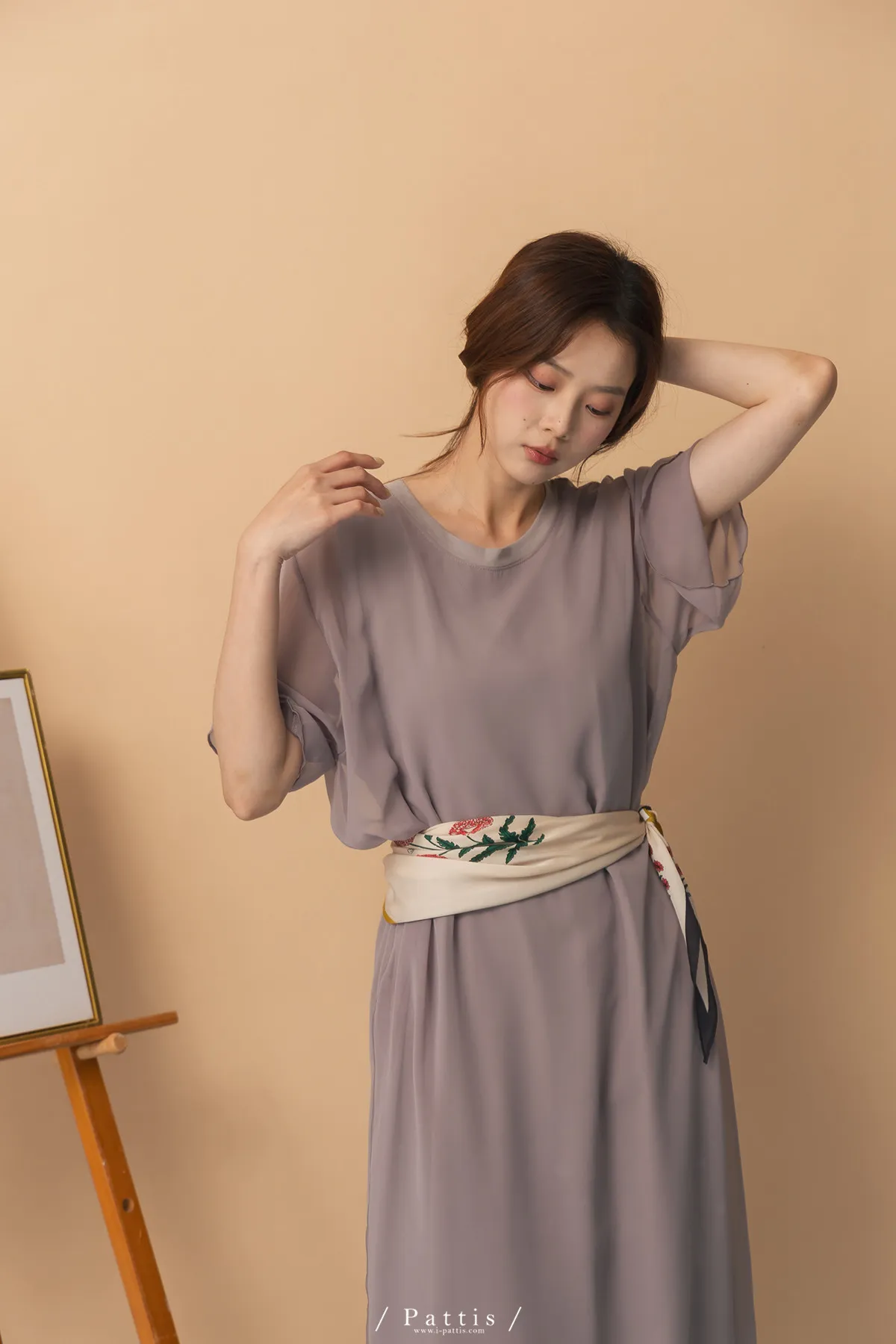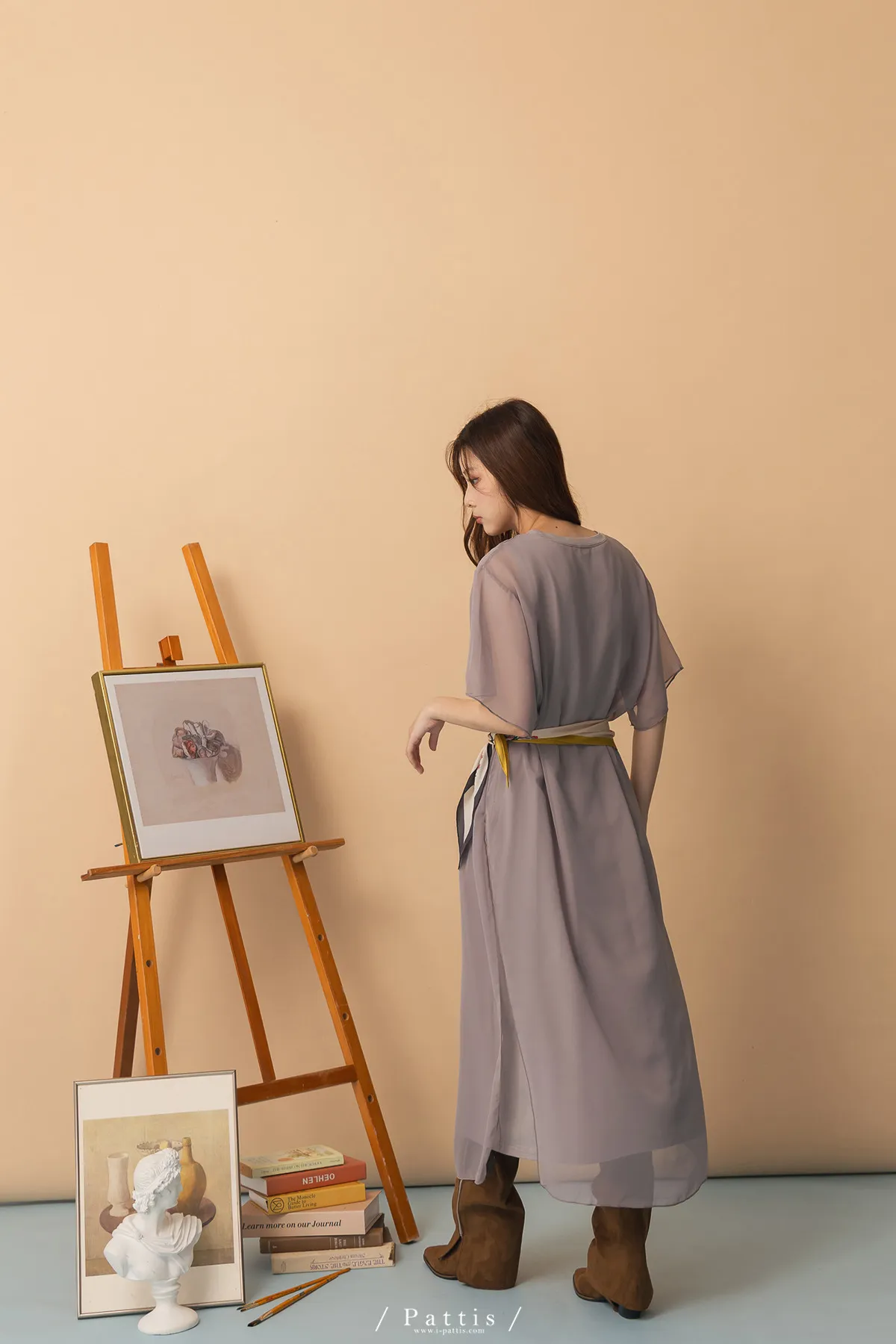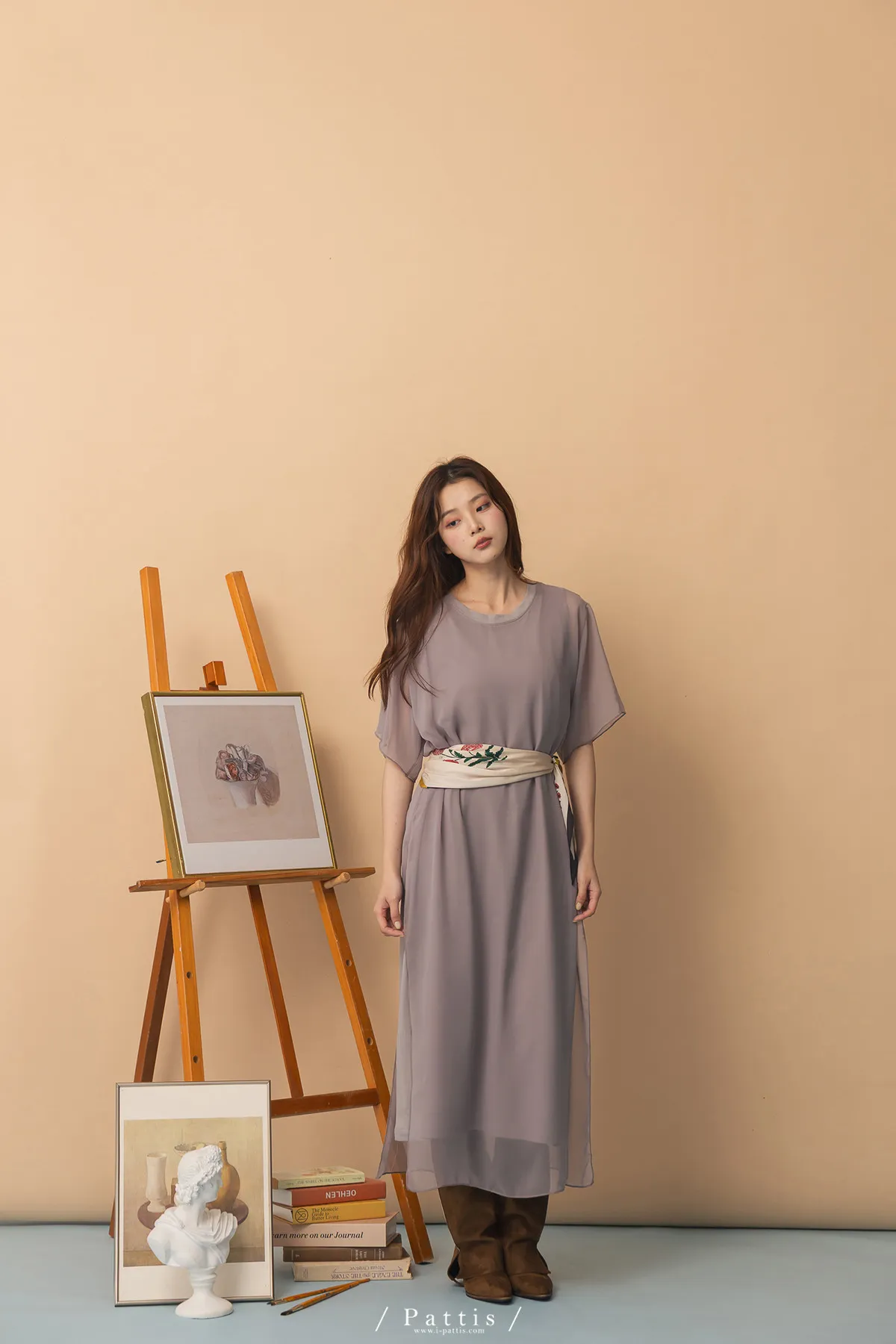 *特*雙層軟質透肌網紗圓領開叉洋裝(淺灰紫)