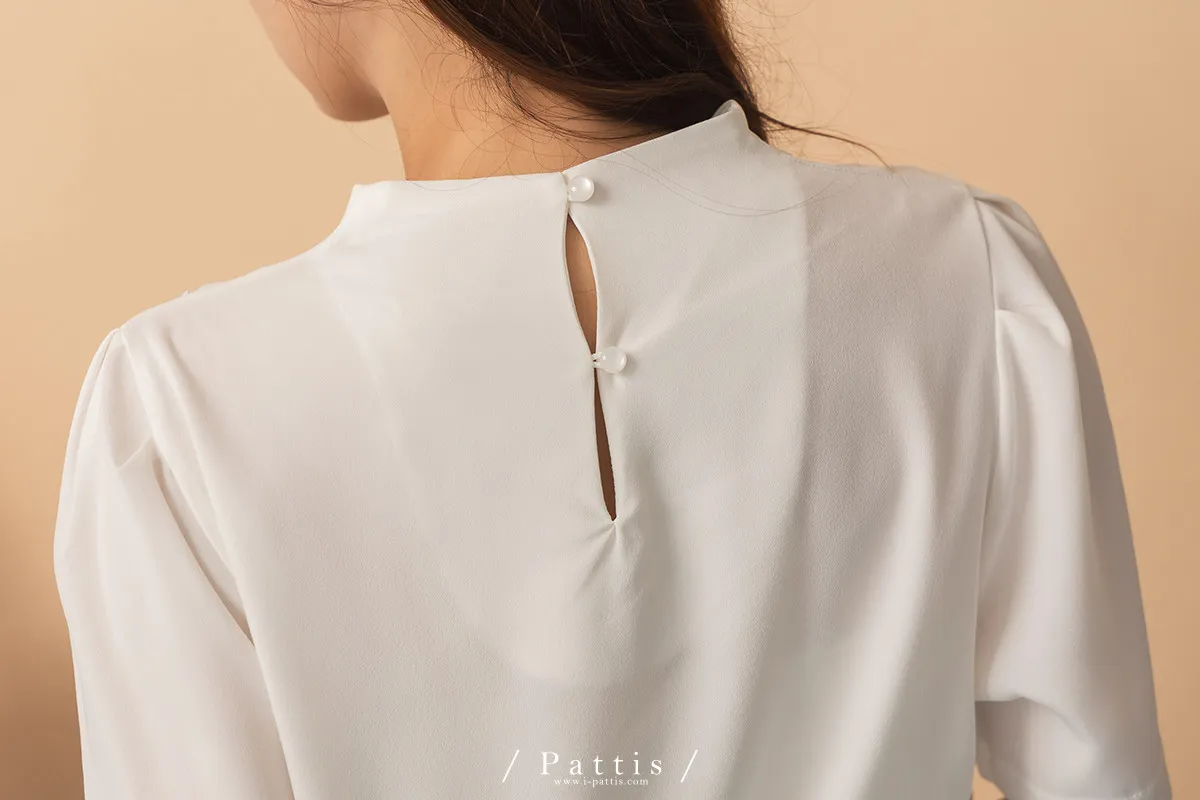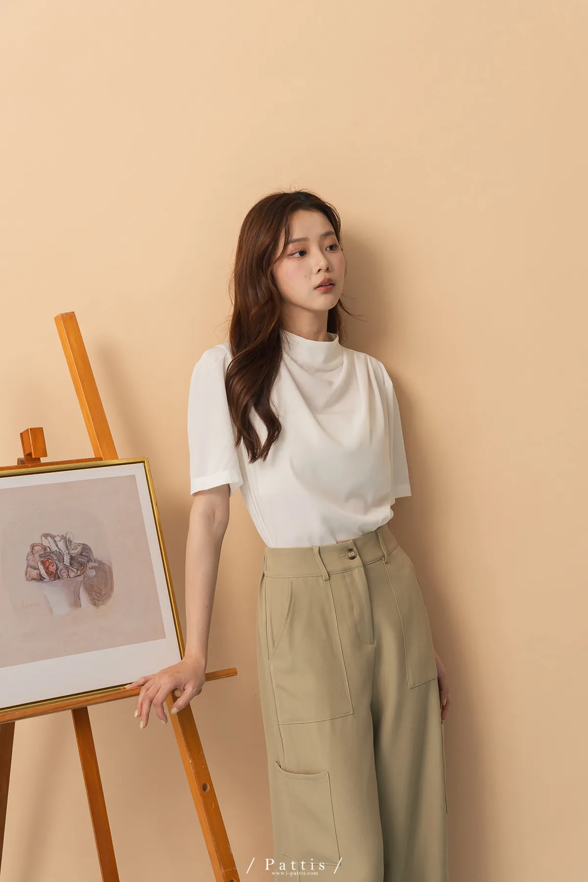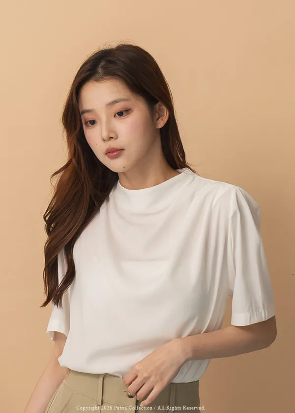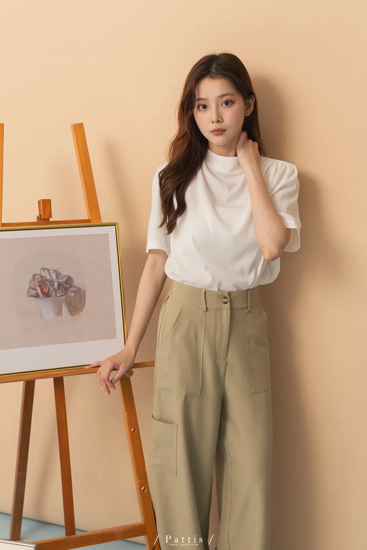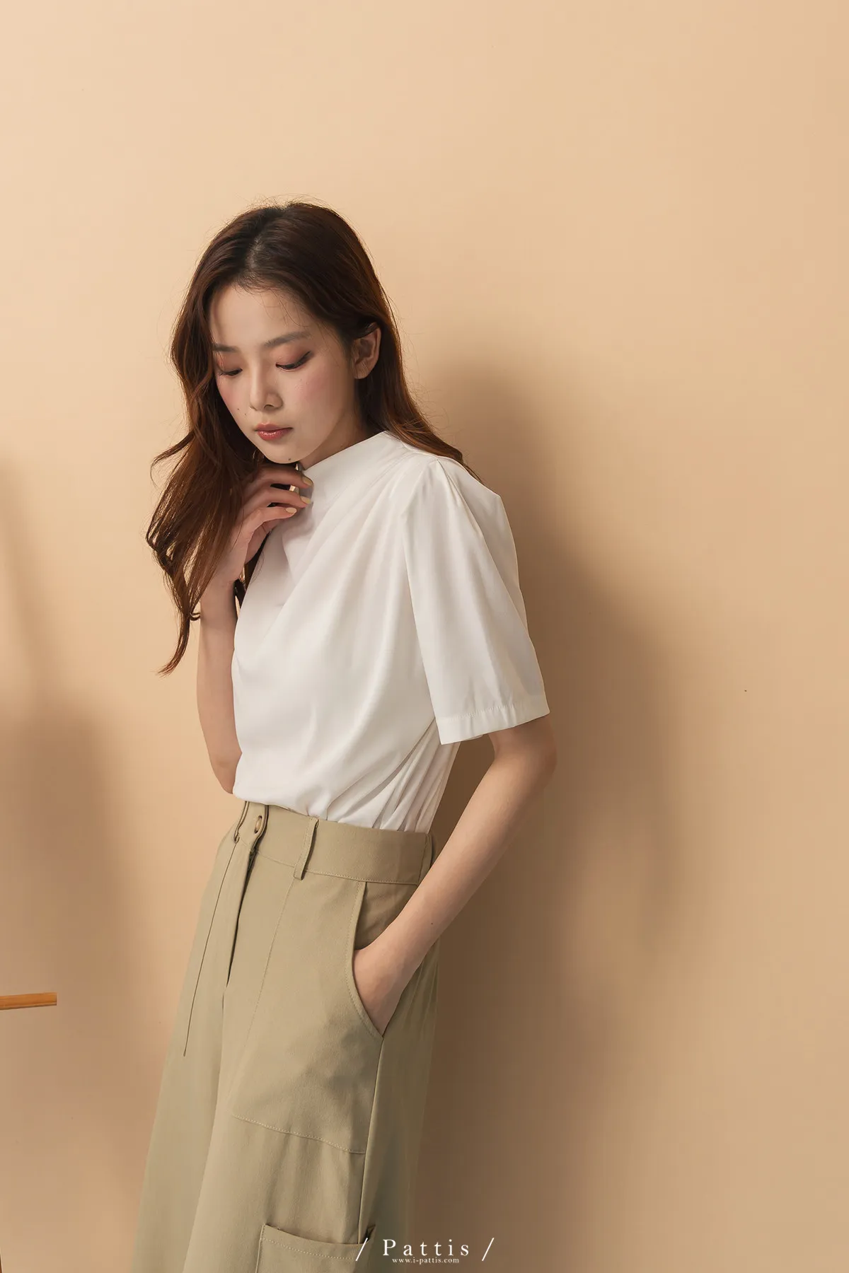 *特*抓皺小立領短袖雪紡上衣(米白)