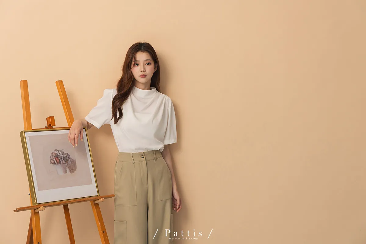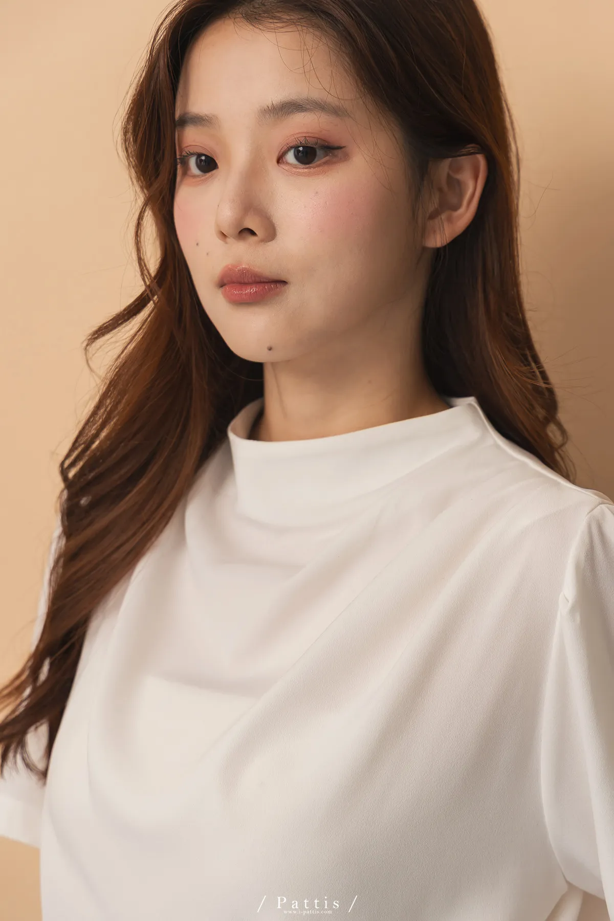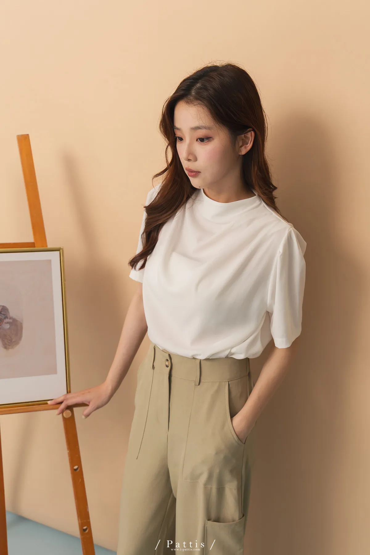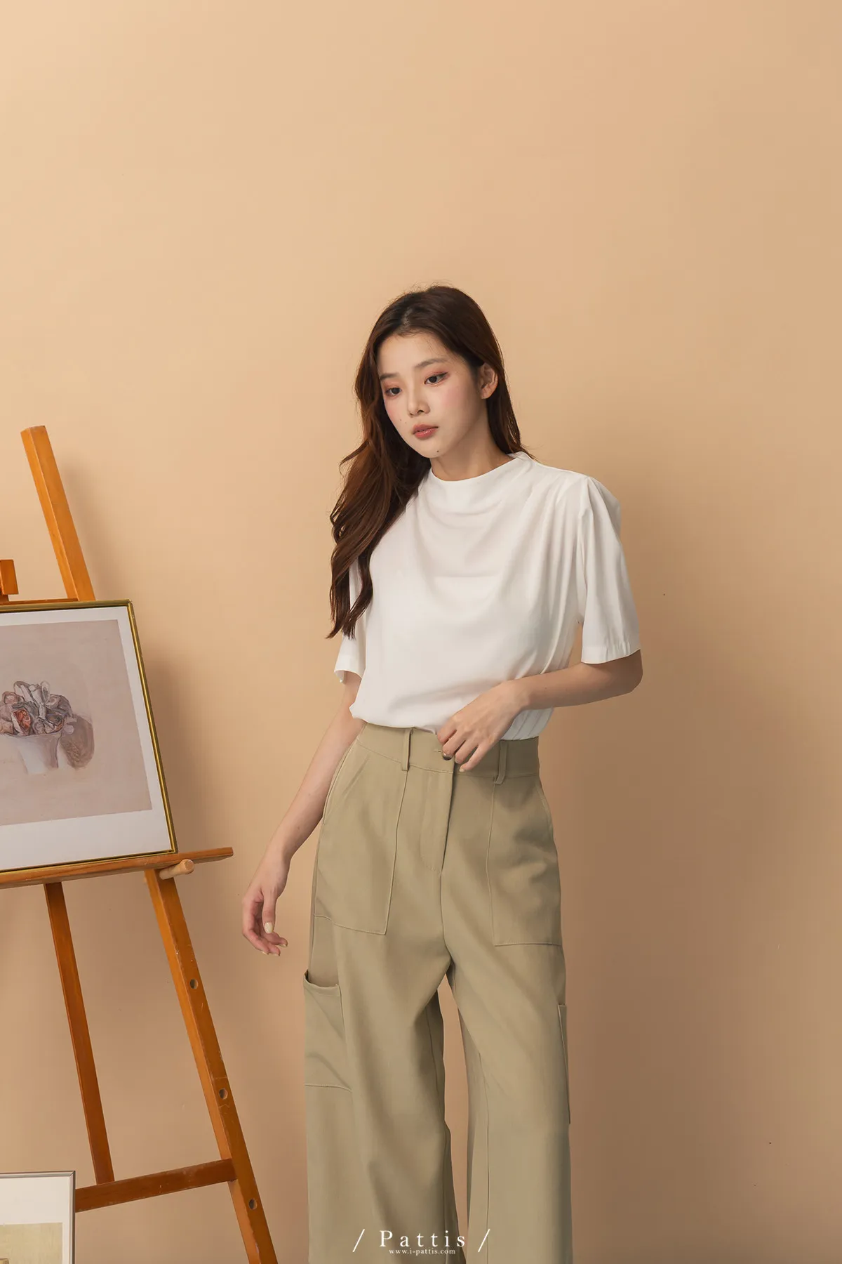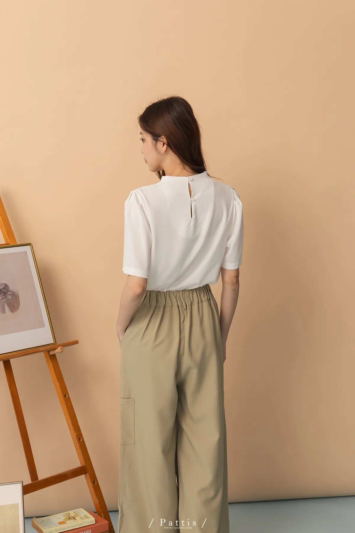 *特*抓皺小立領短袖雪紡上衣(米白)