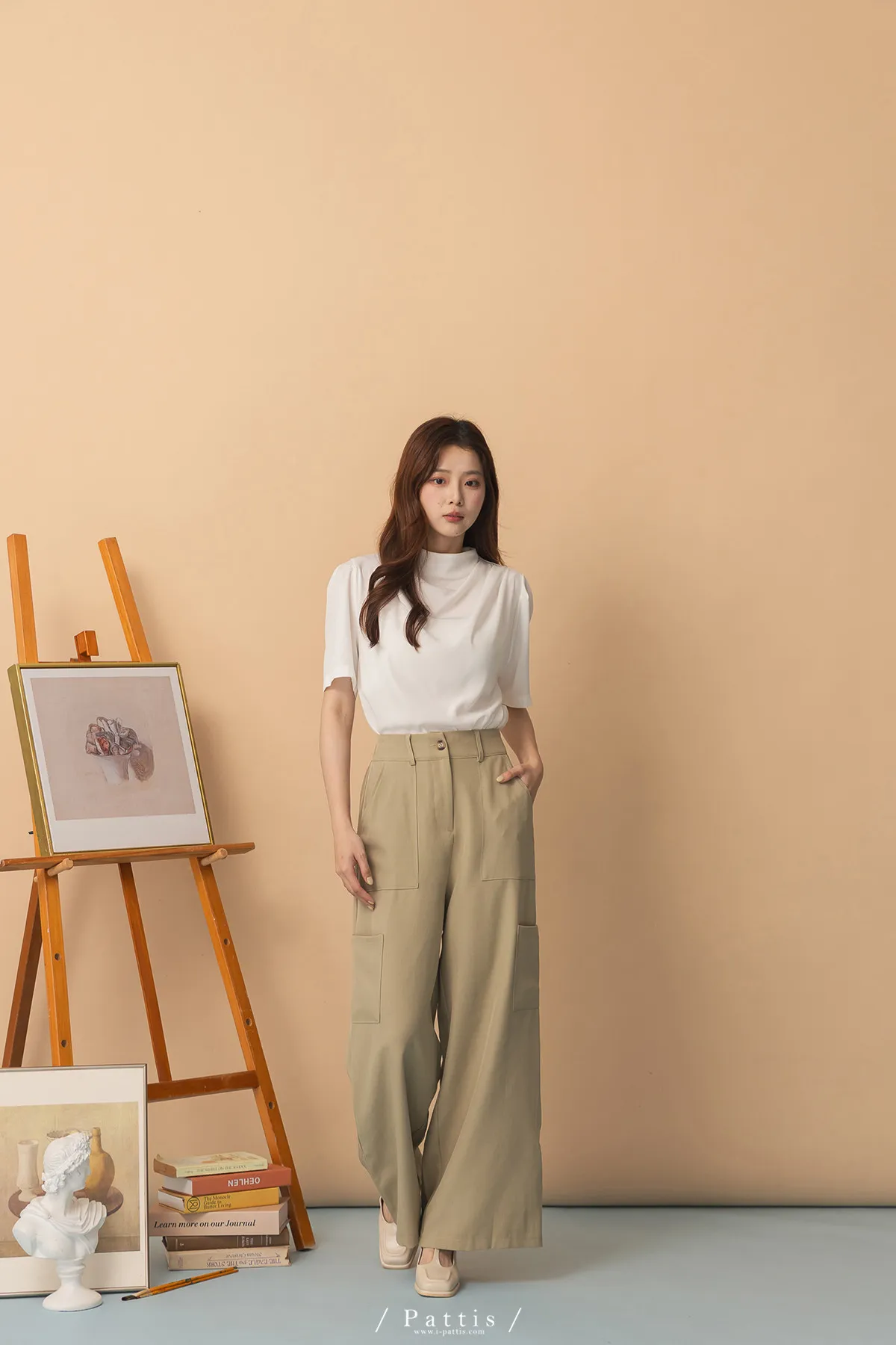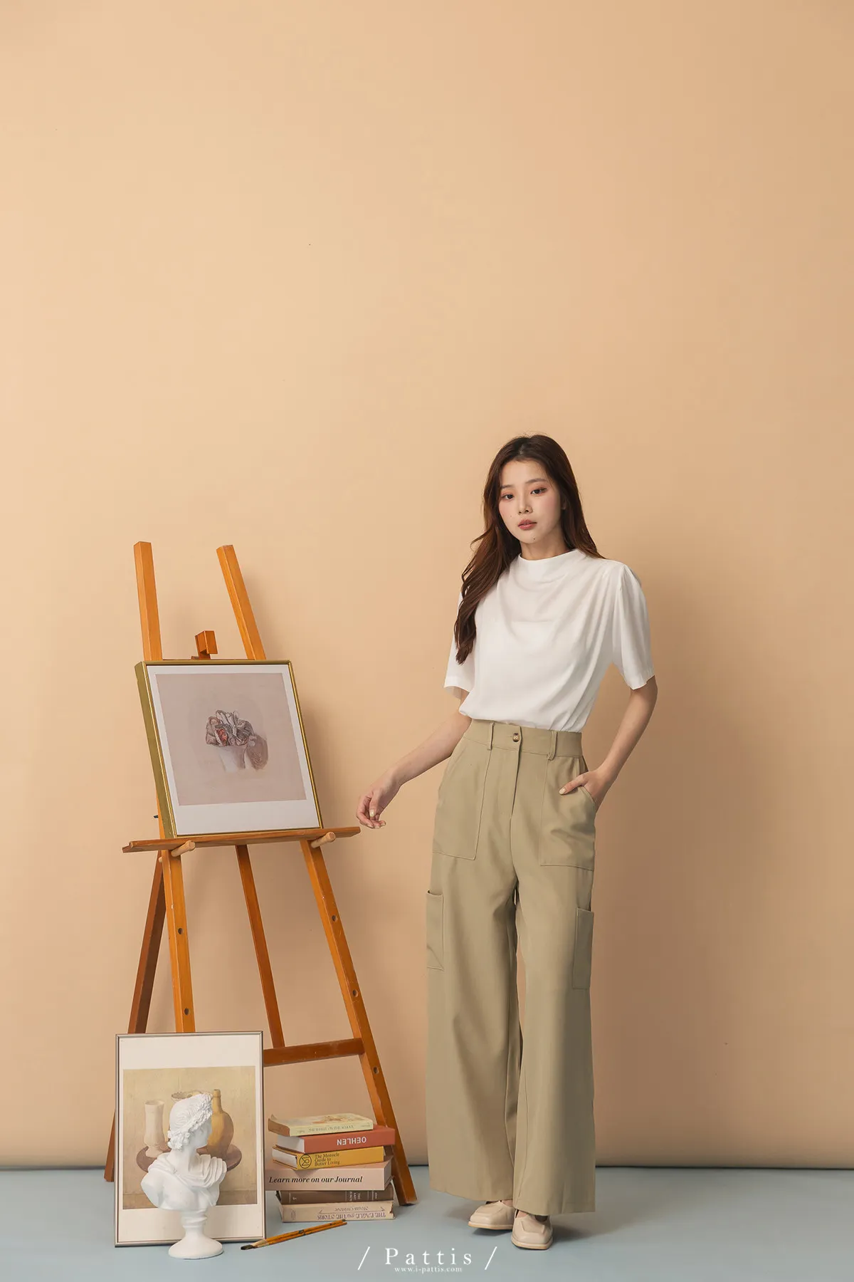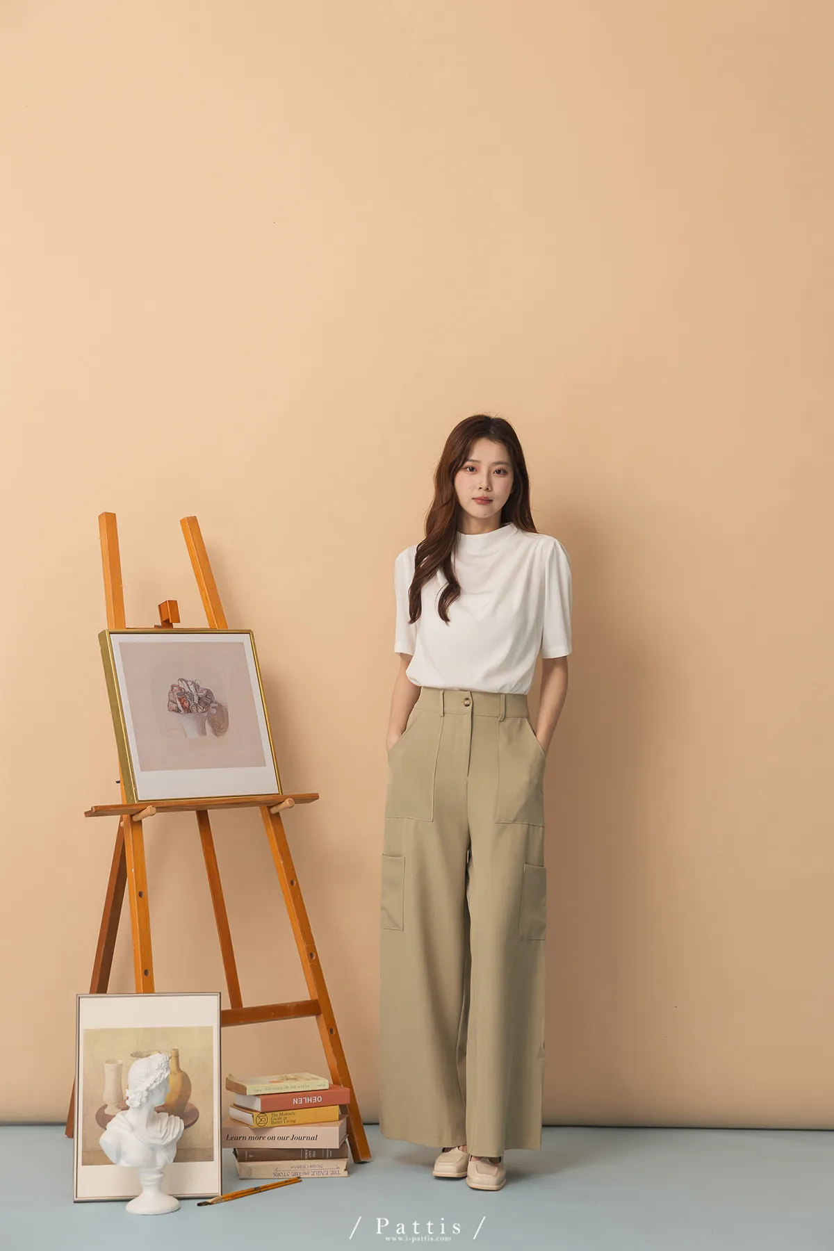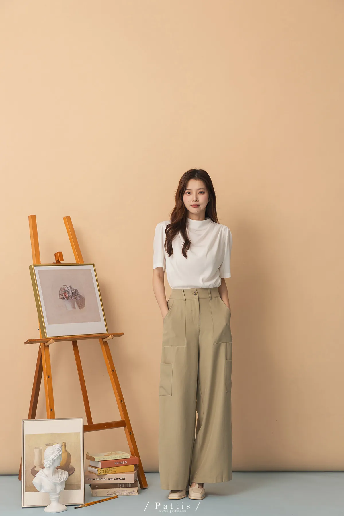 *特*抓皺小立領短袖雪紡上衣(米白)