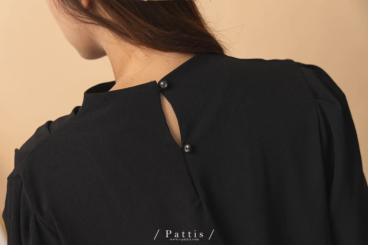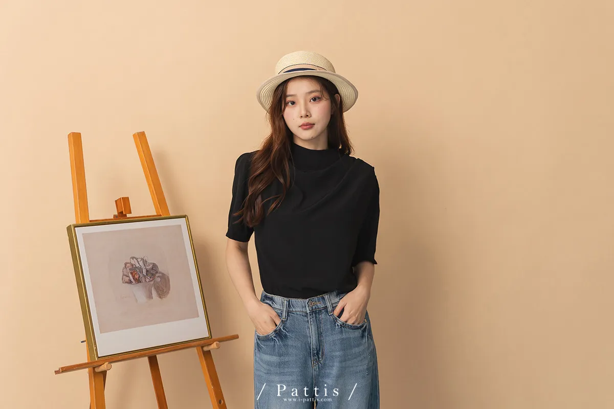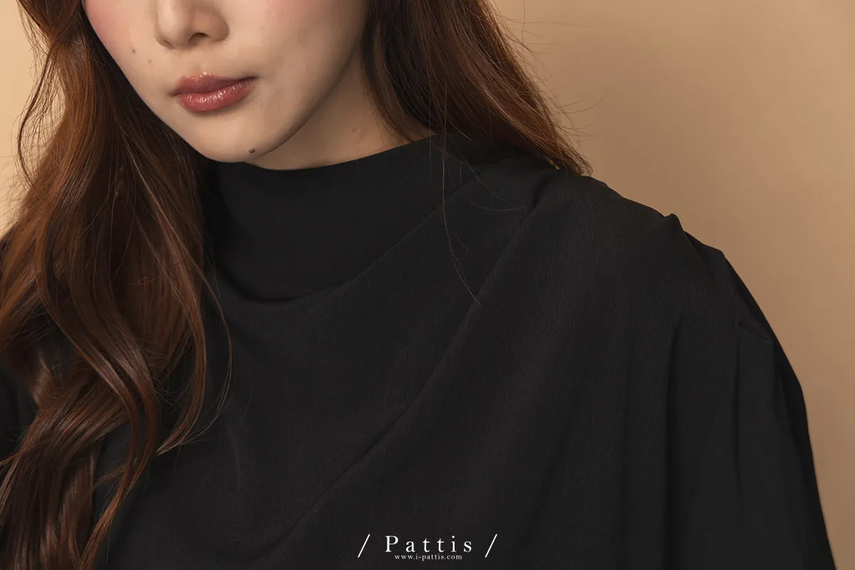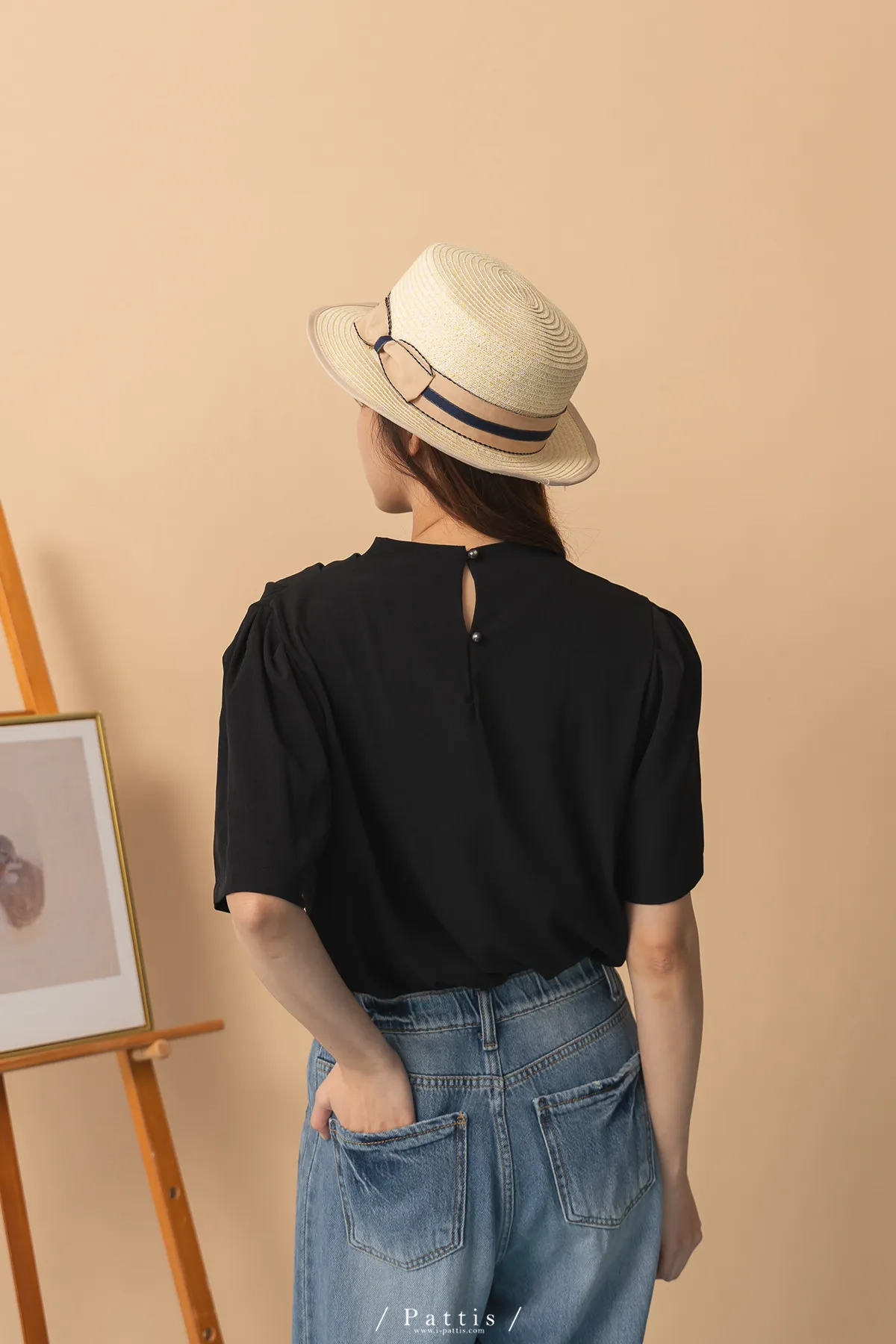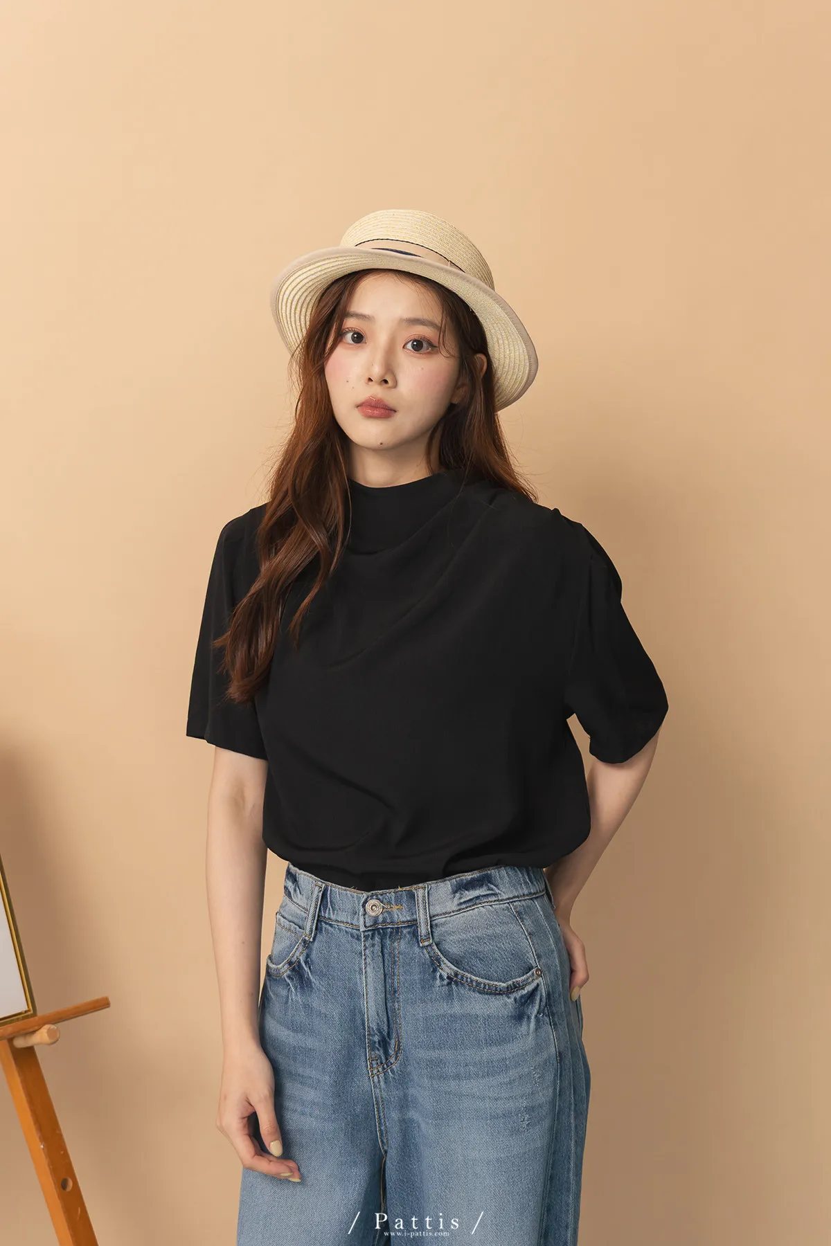 *特*抓皺小立領短袖雪紡上衣(黑)