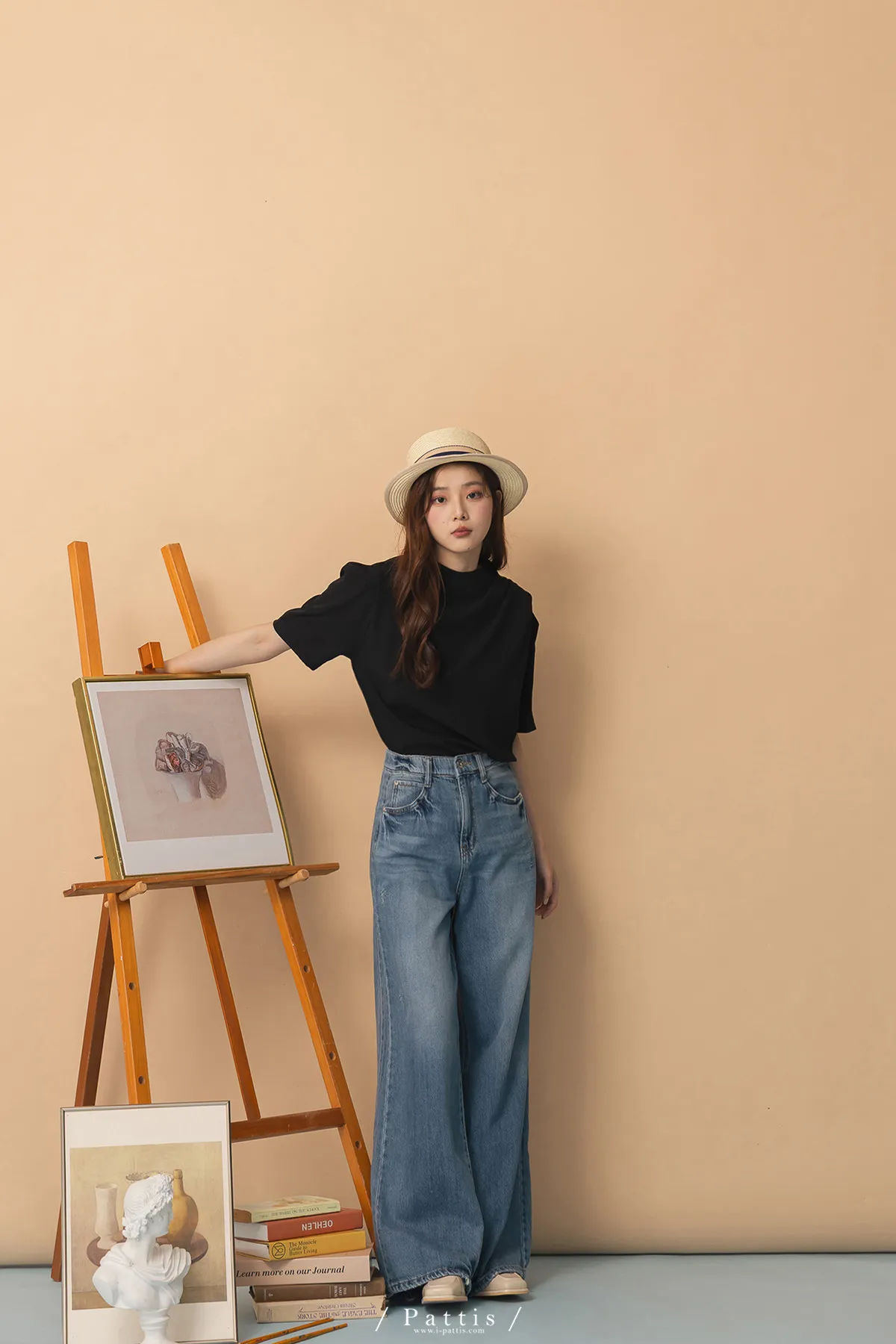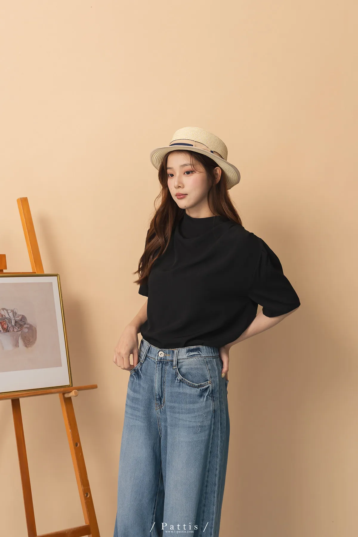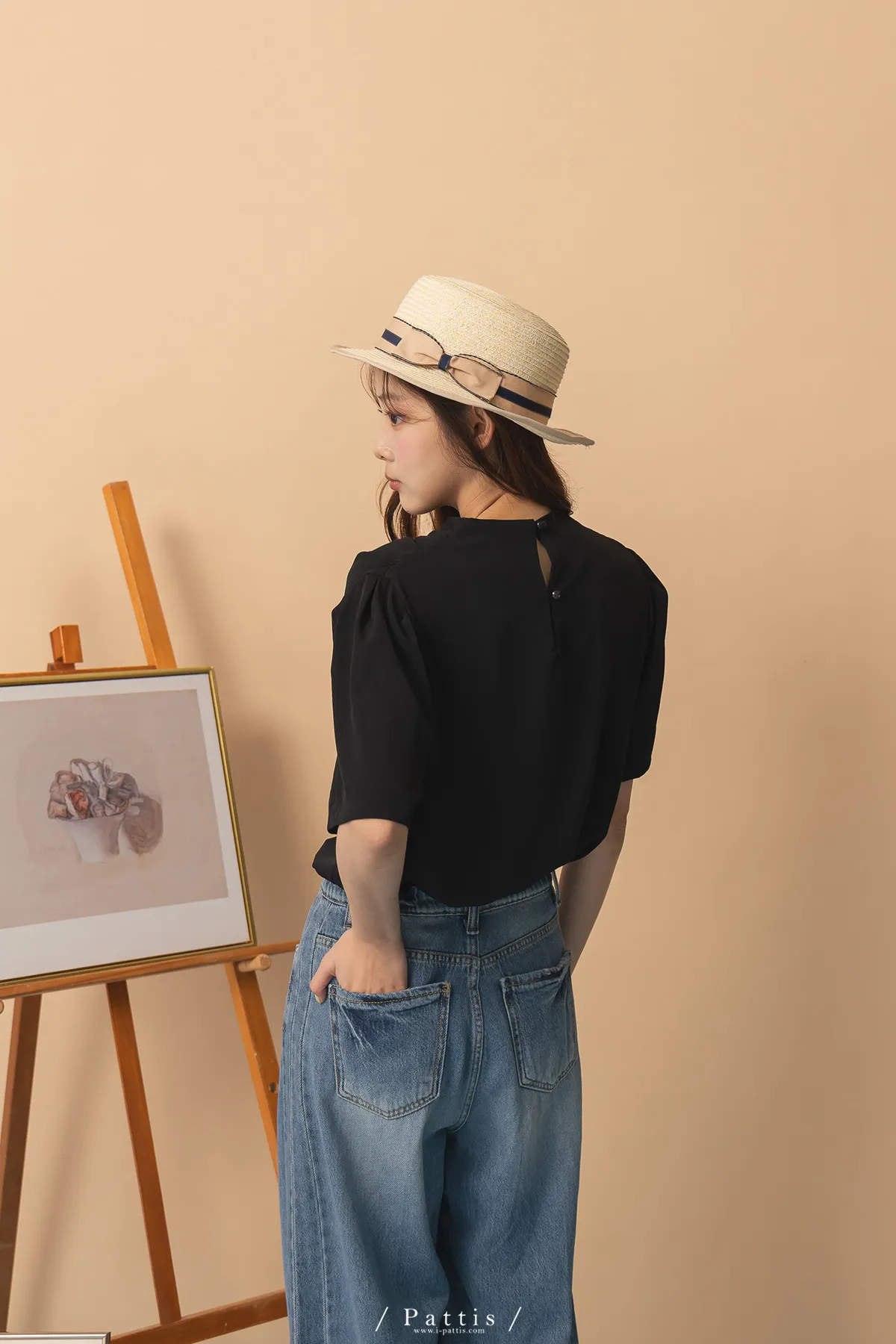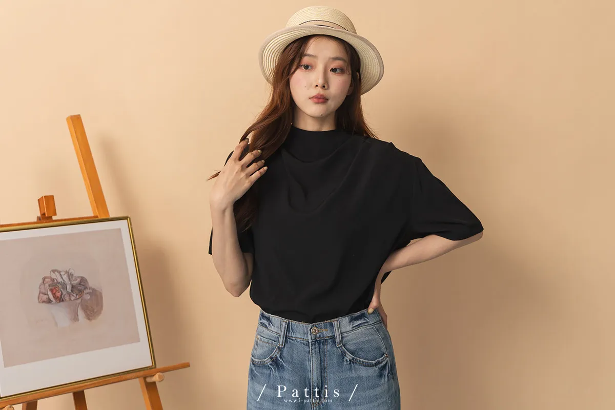 *特*抓皺小立領短袖雪紡上衣(黑)