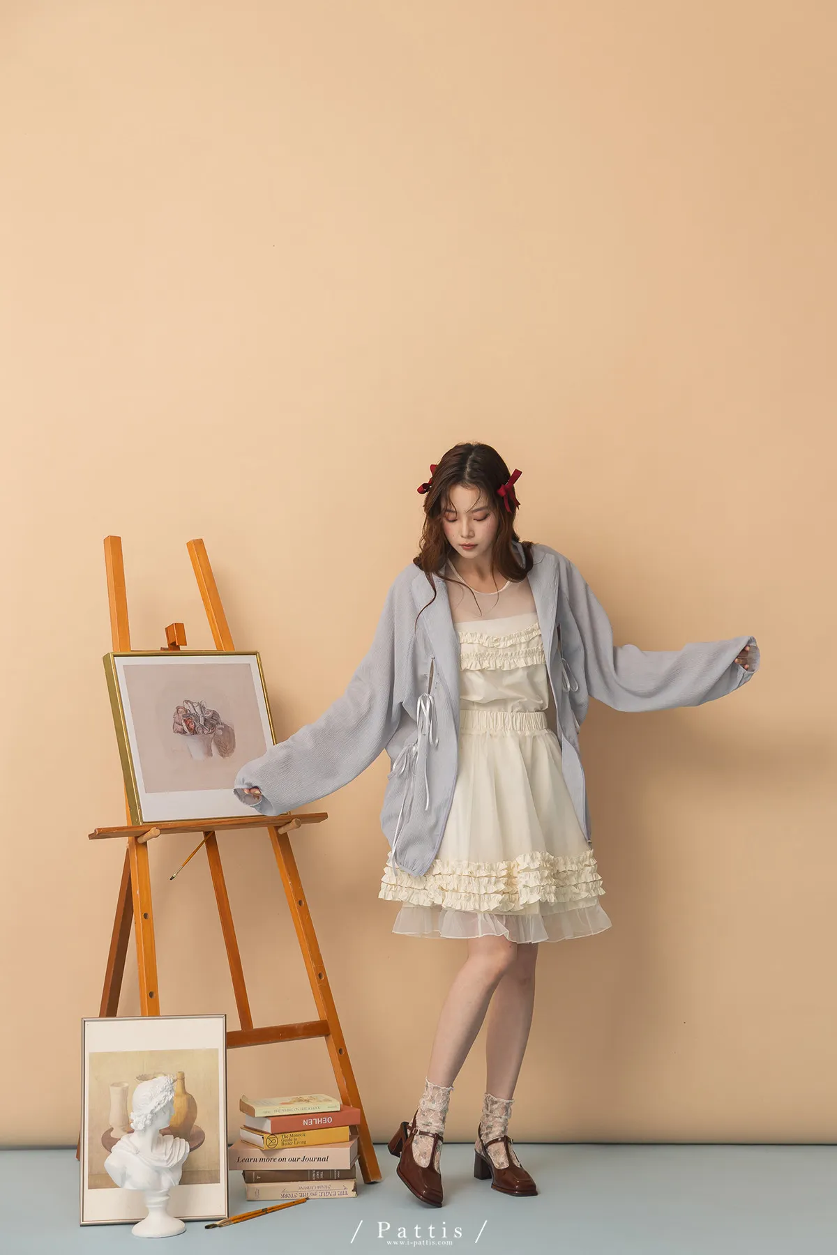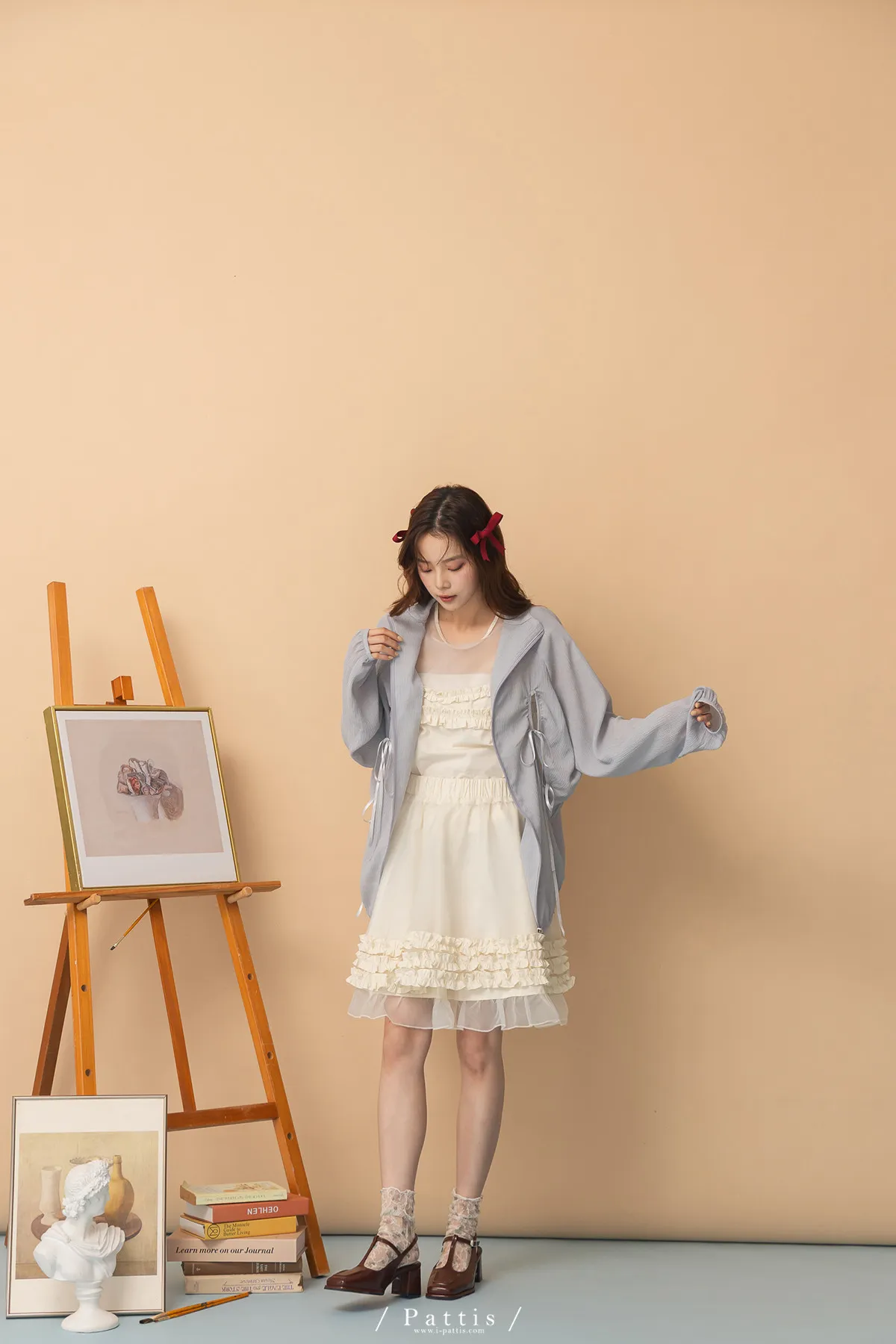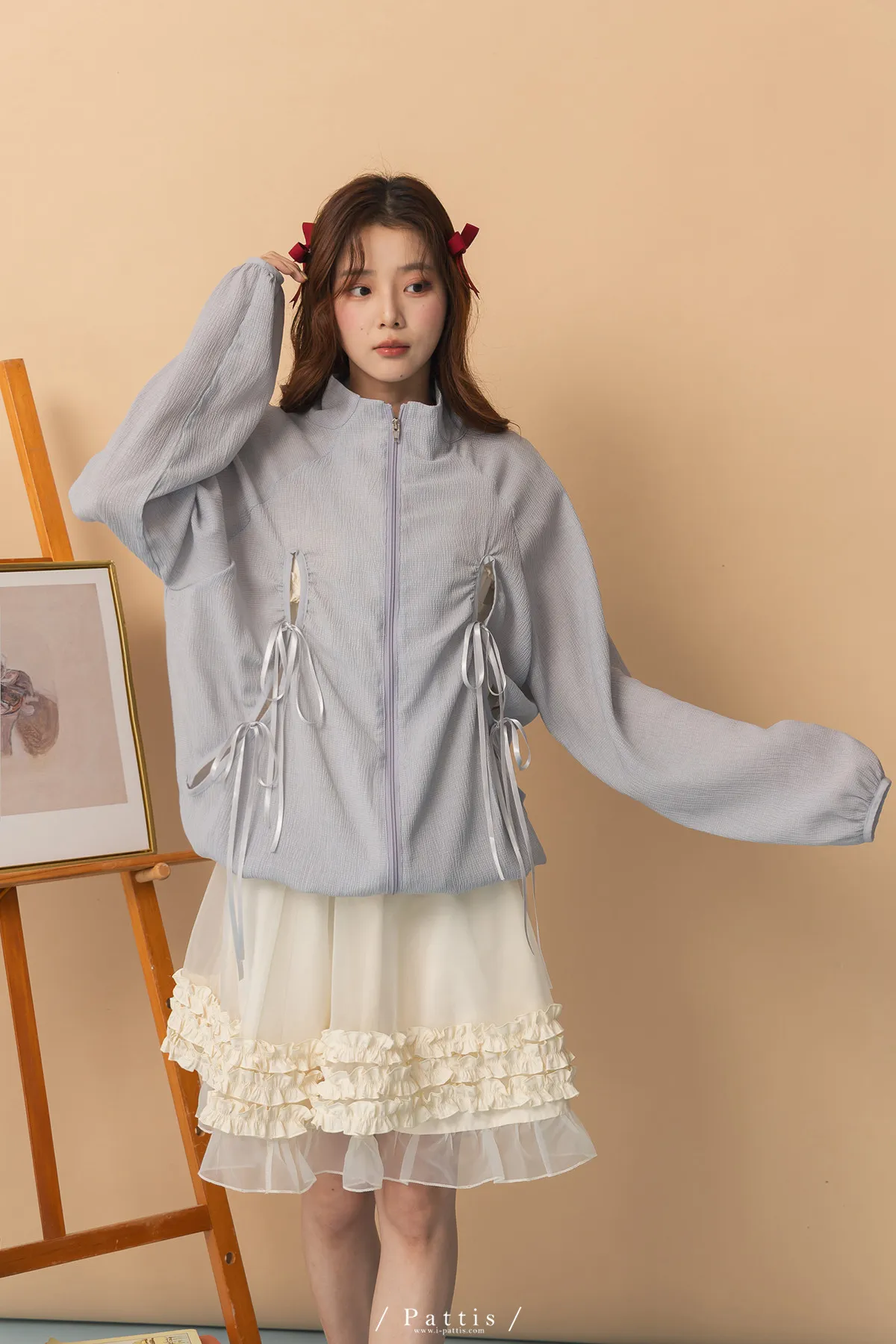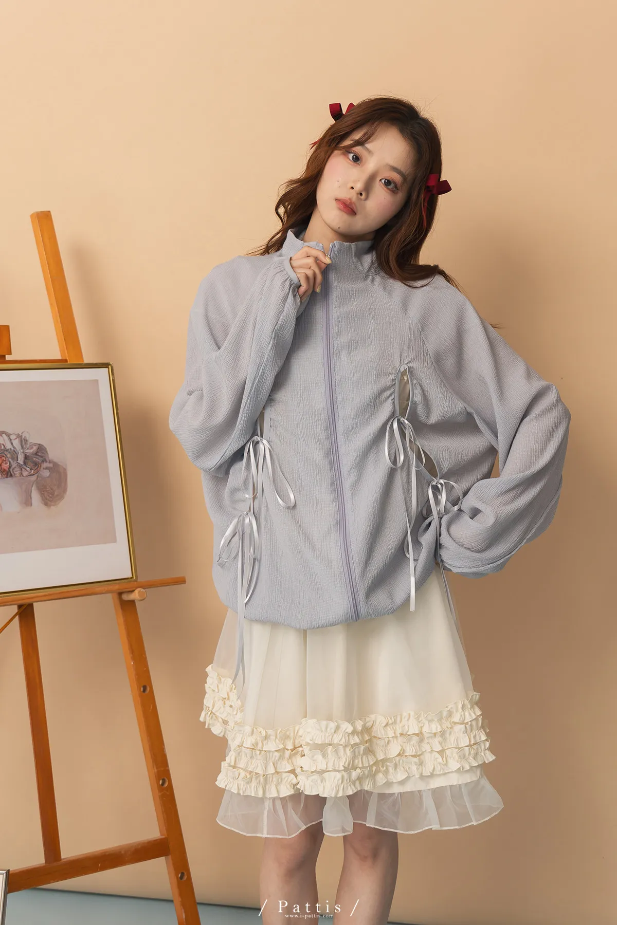 僅限今日的保護色 | 縷空蝴蝶結緞帶拉鍊清透防曬感外套(淺藍)