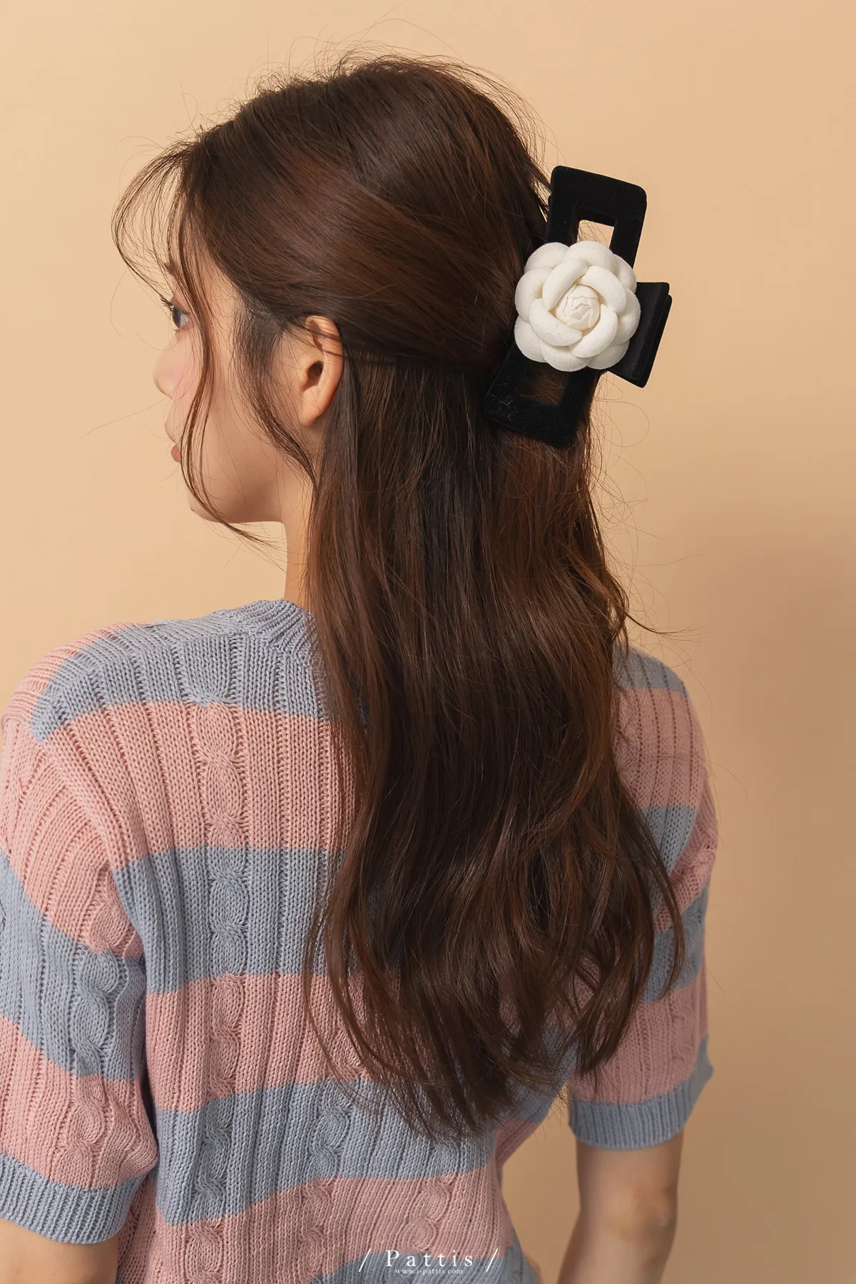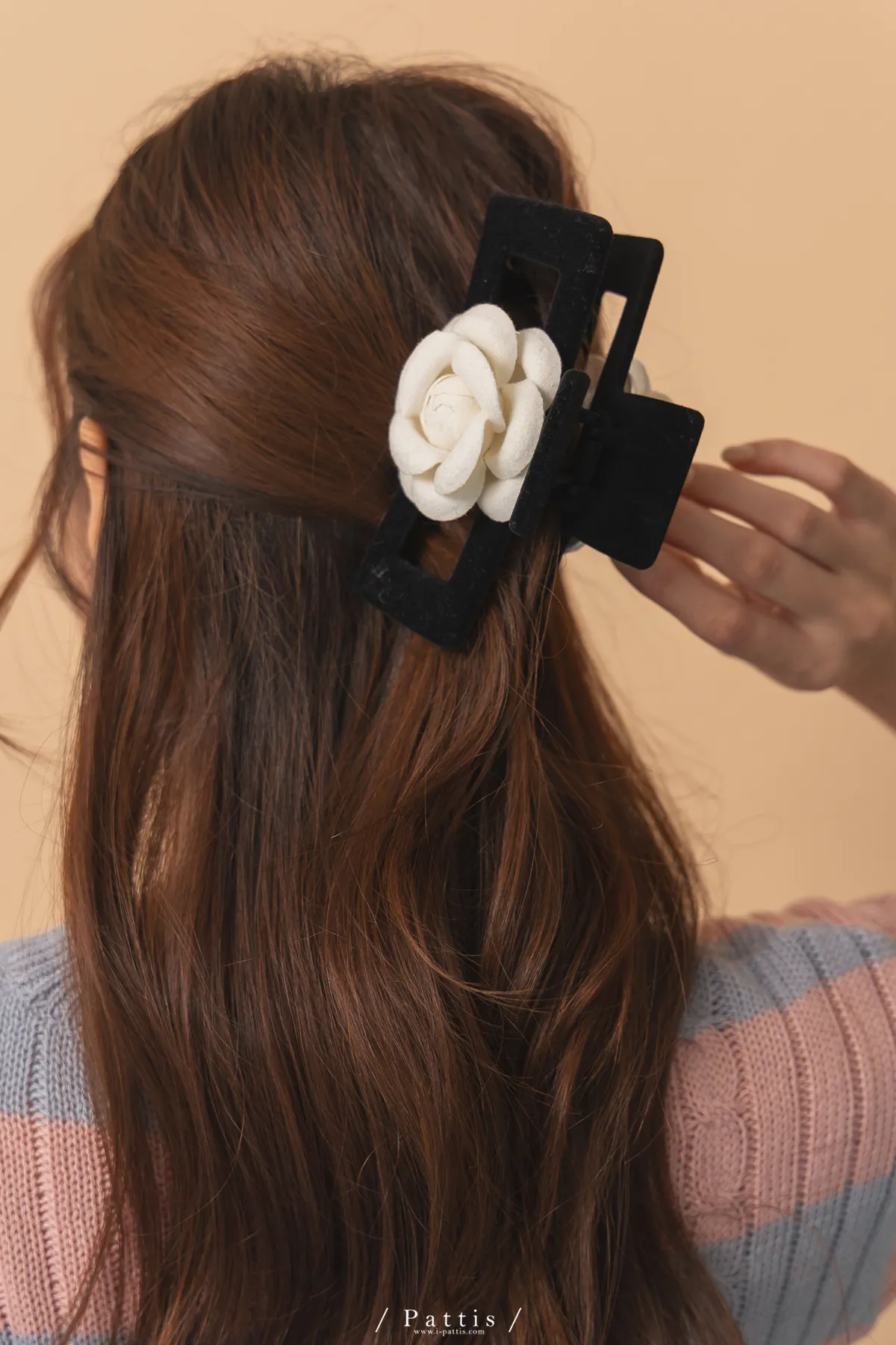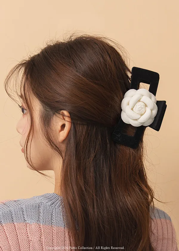 立體山茶花植絨大抓夾(單一色)