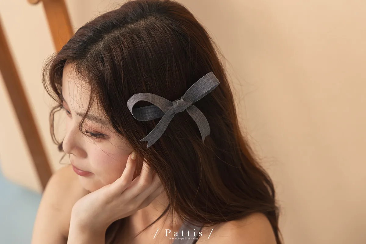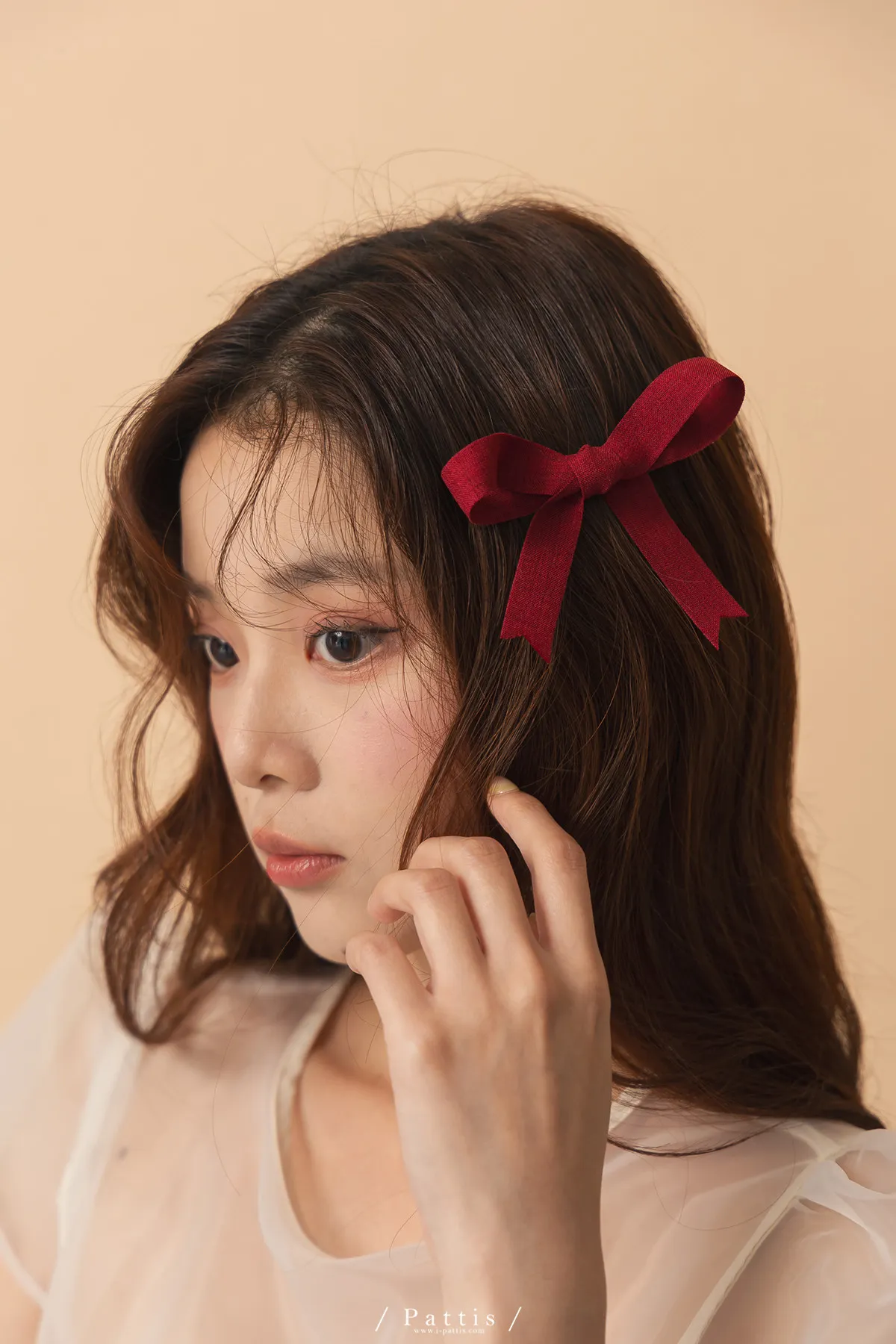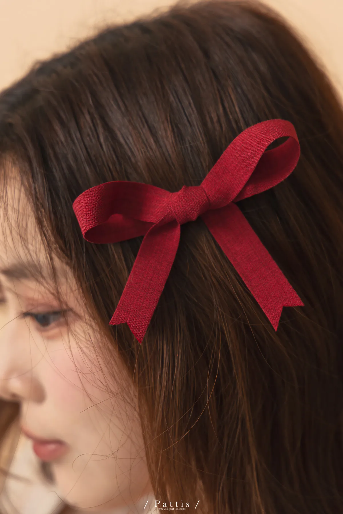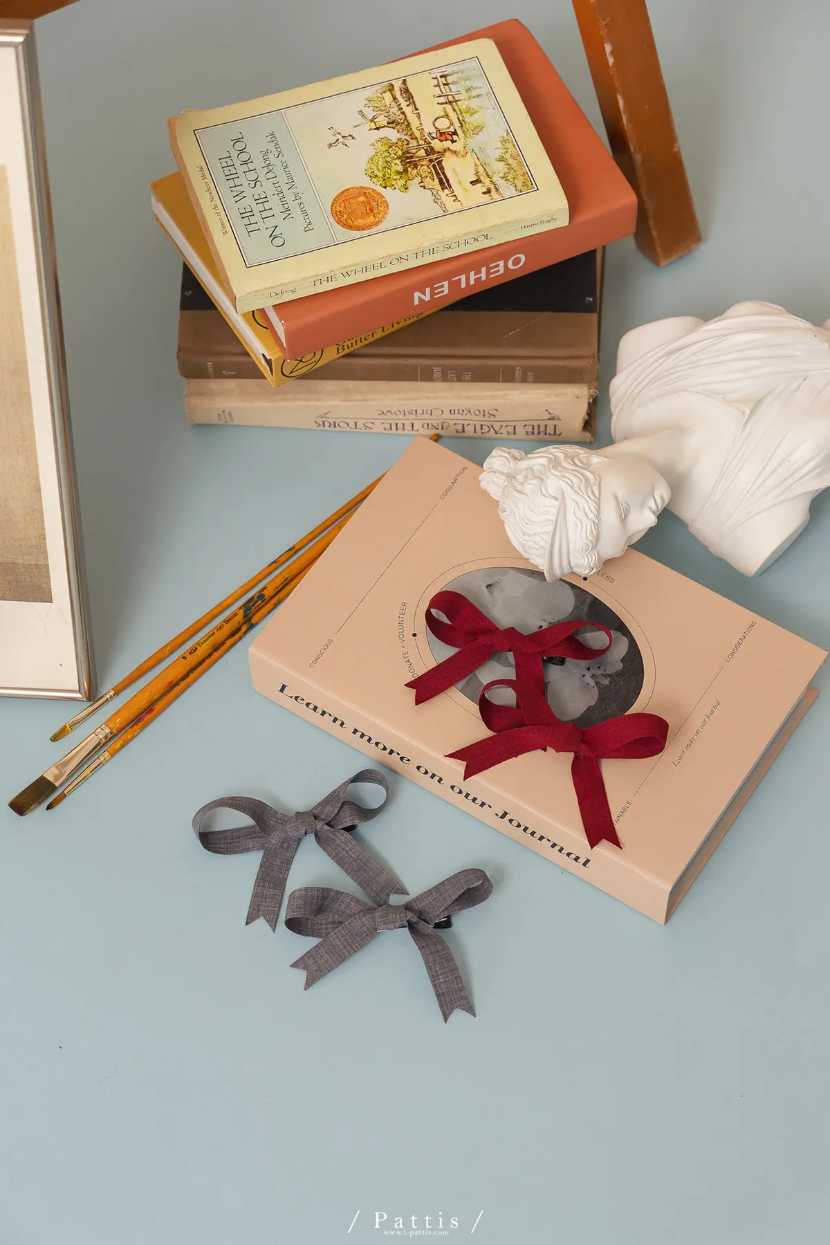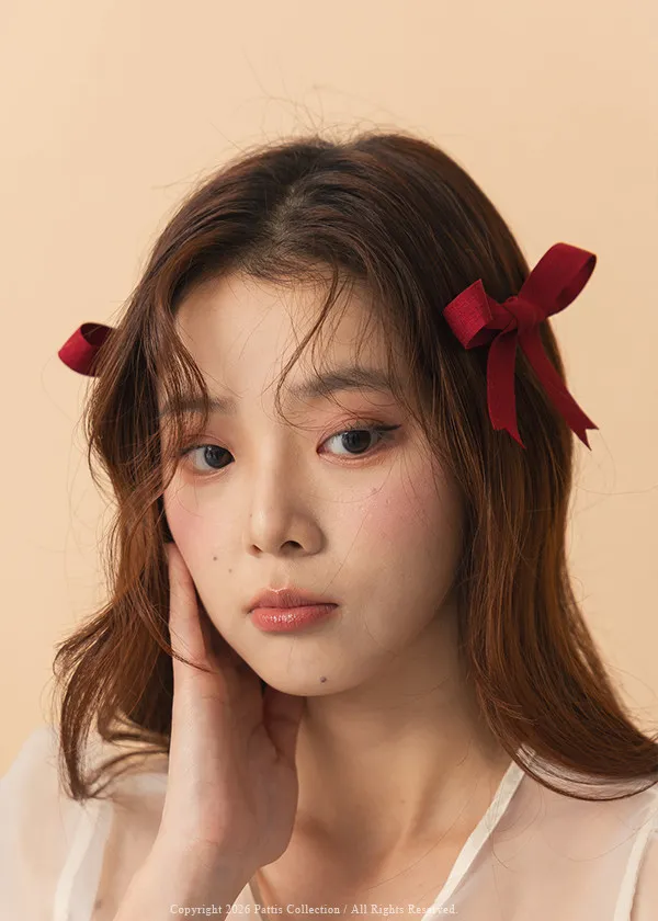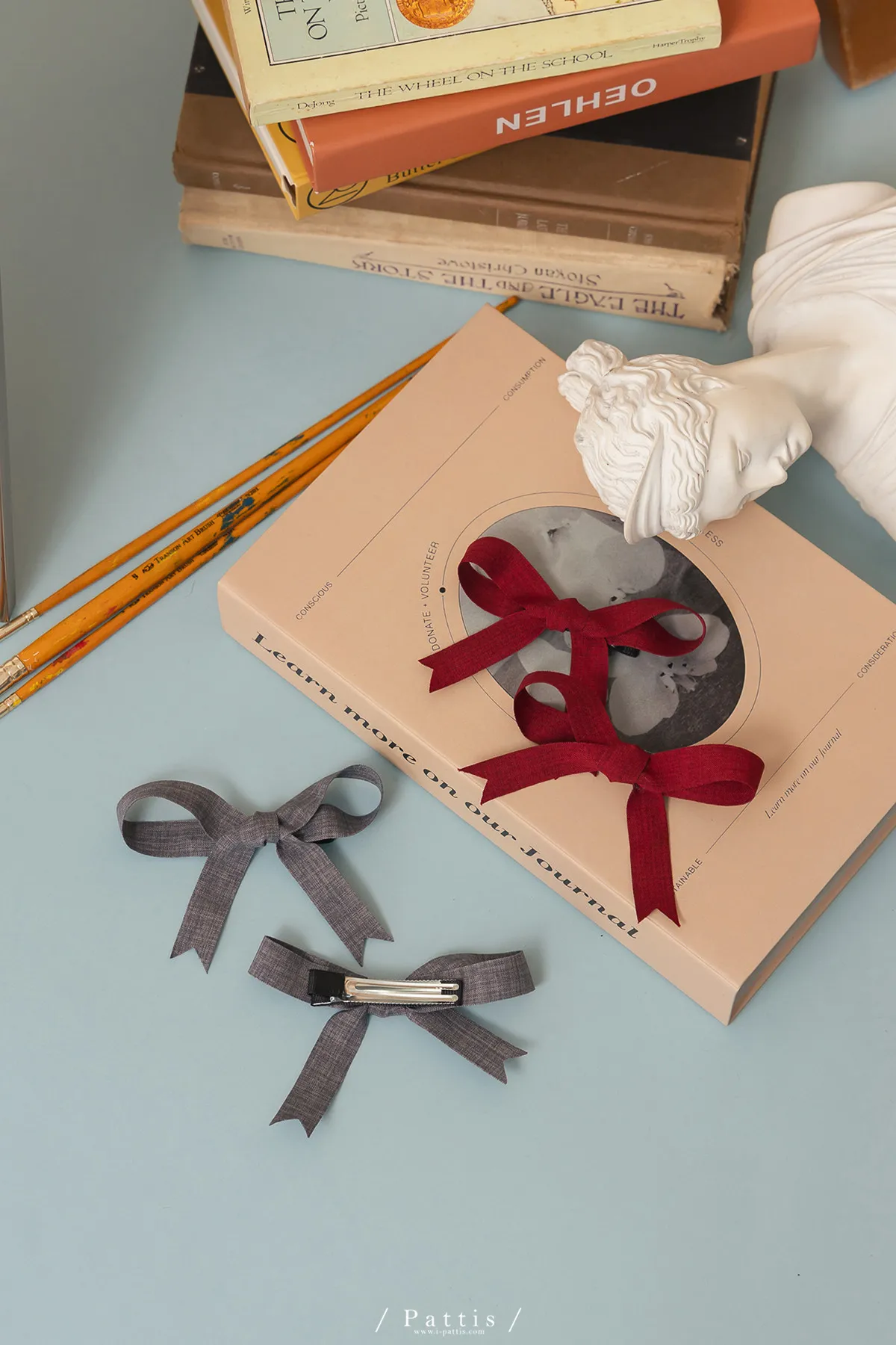 紋理蝴蝶結髮夾二件set組(酒紅/霧灰)