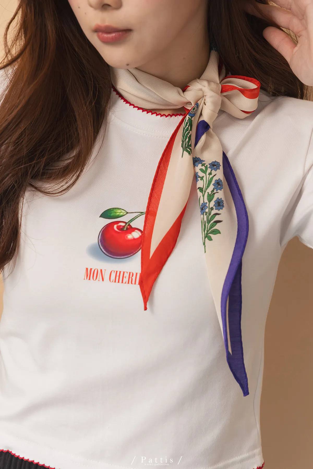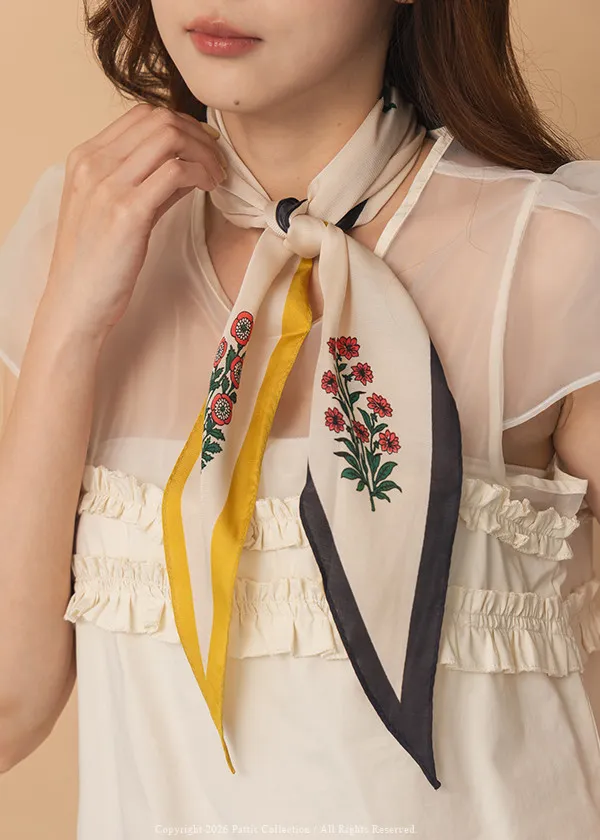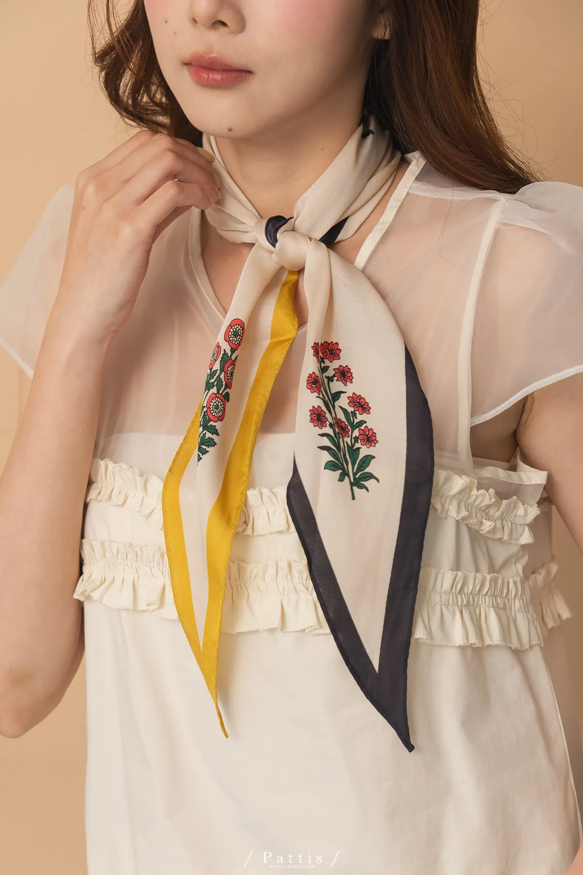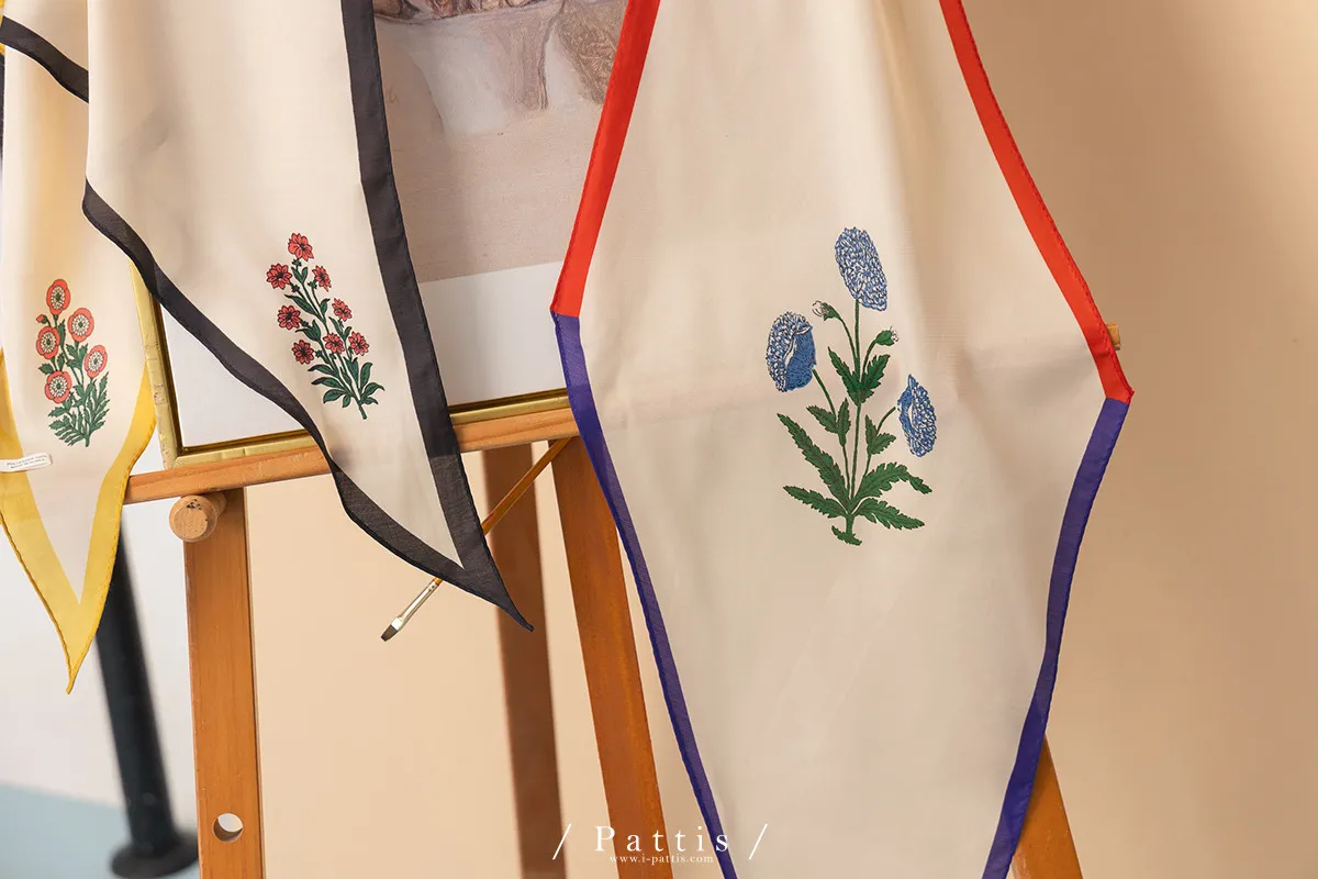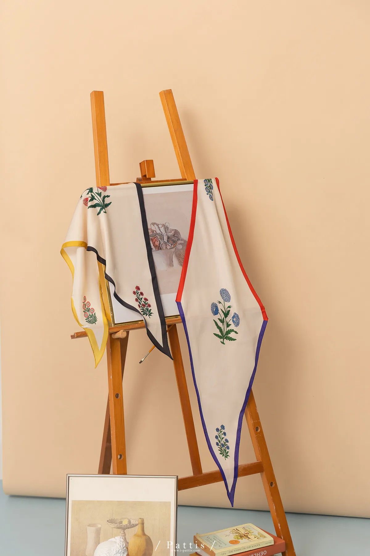 手繪花卉雙色長菱型絲巾(黃黑/藍橘)