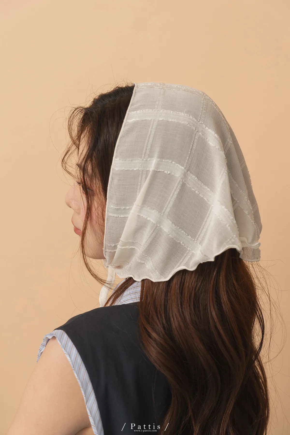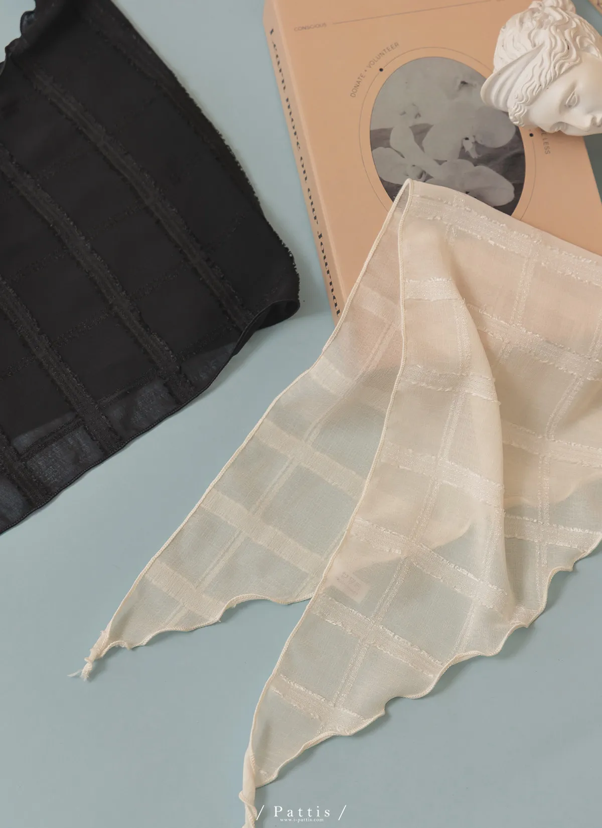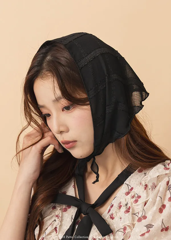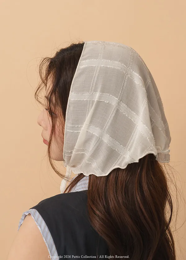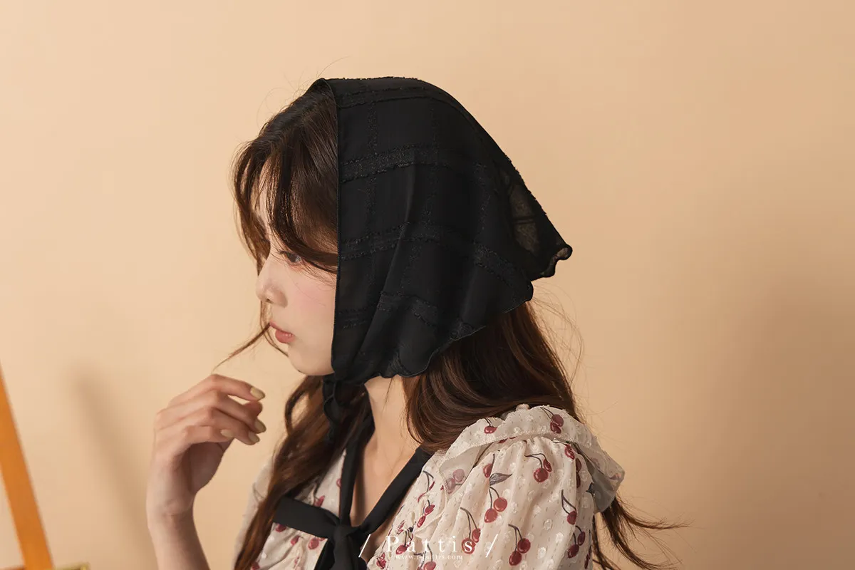 方格蕾絲滾邊三角領巾(米白/黑)