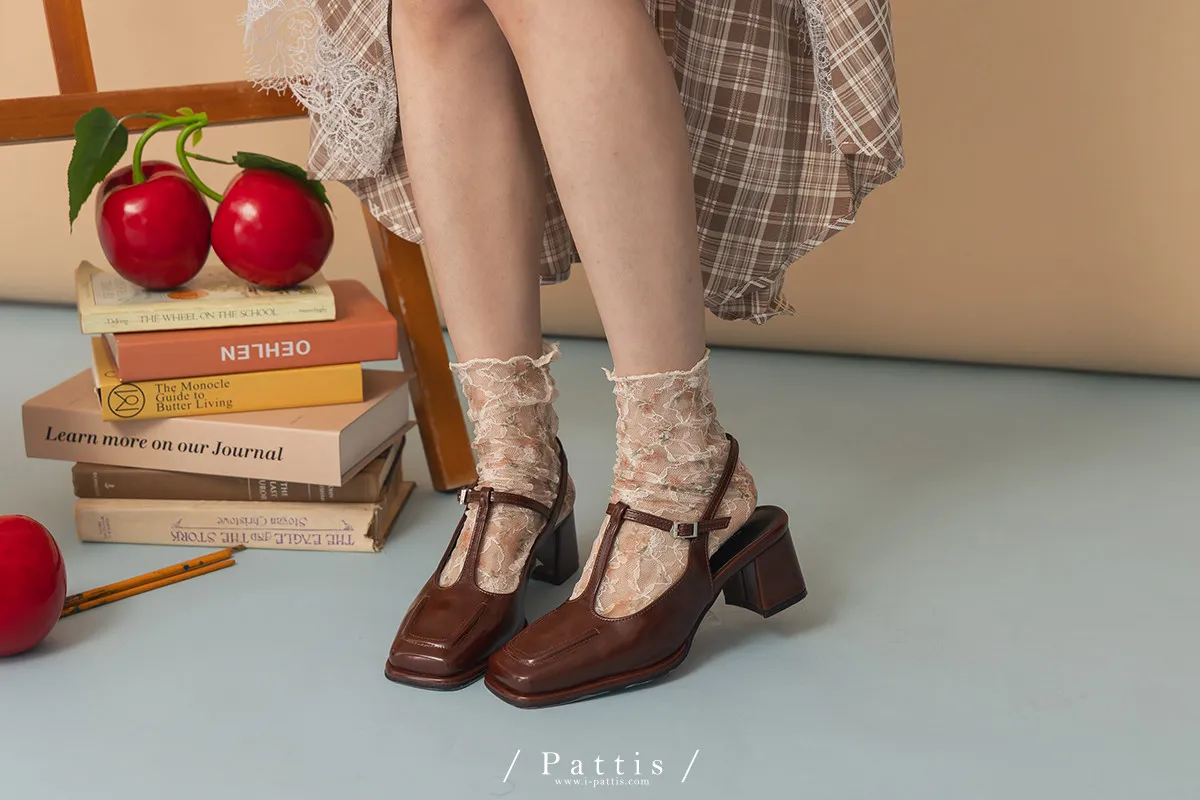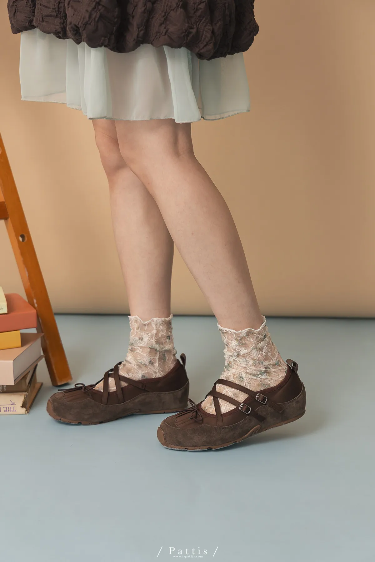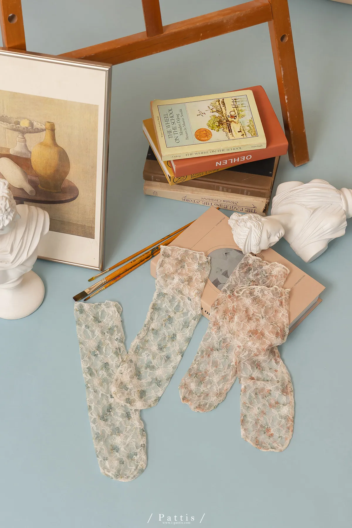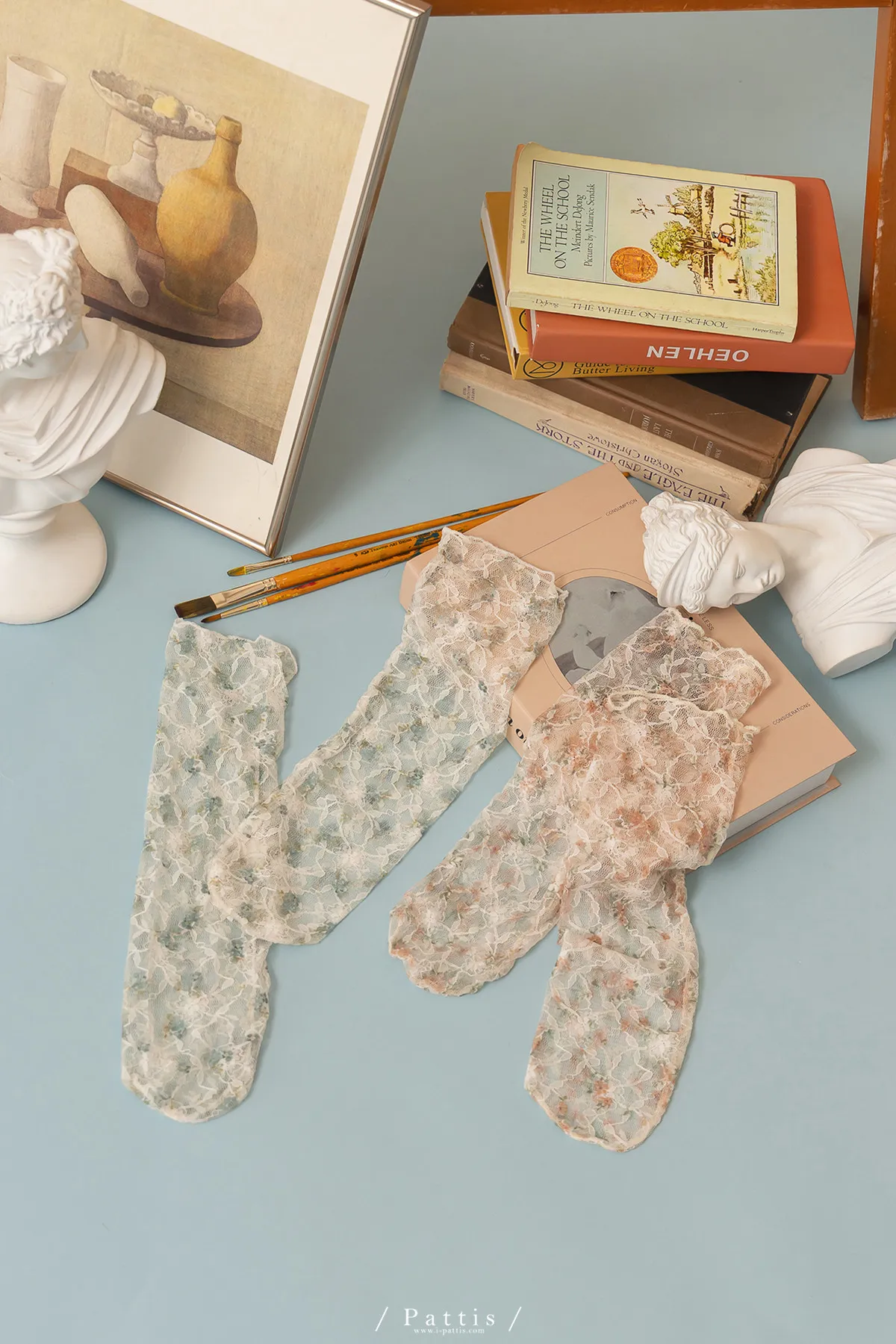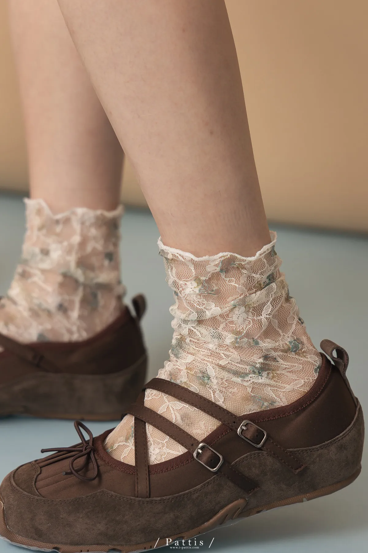 蕾絲網紗印花短襪(橘粉/藍綠)