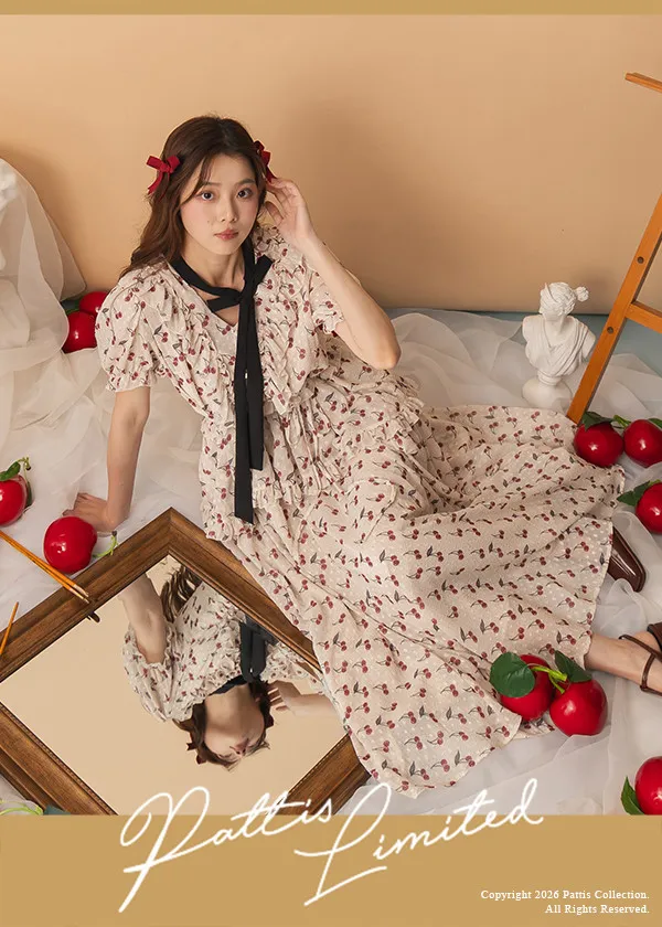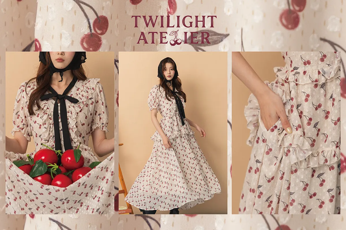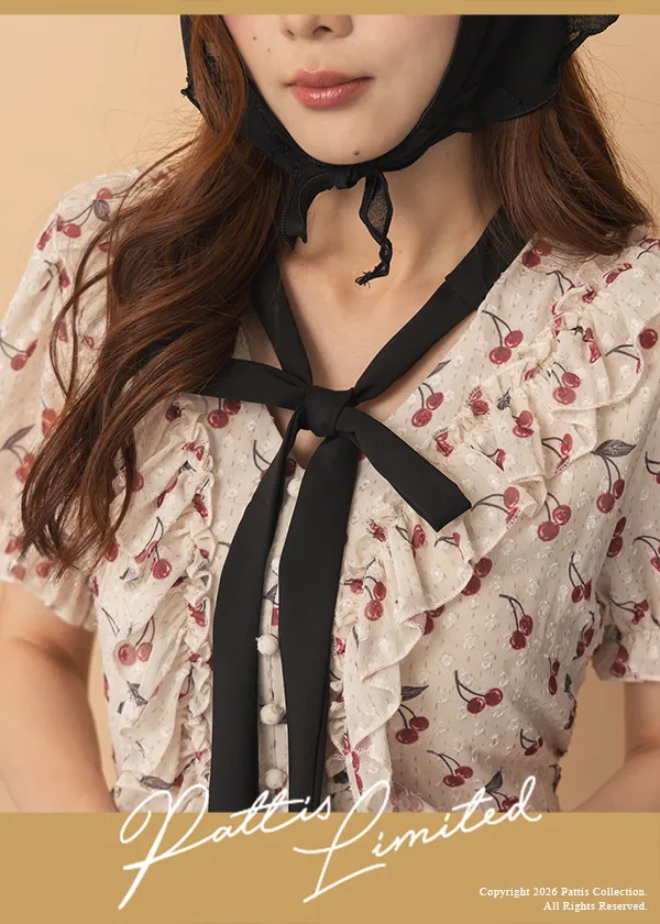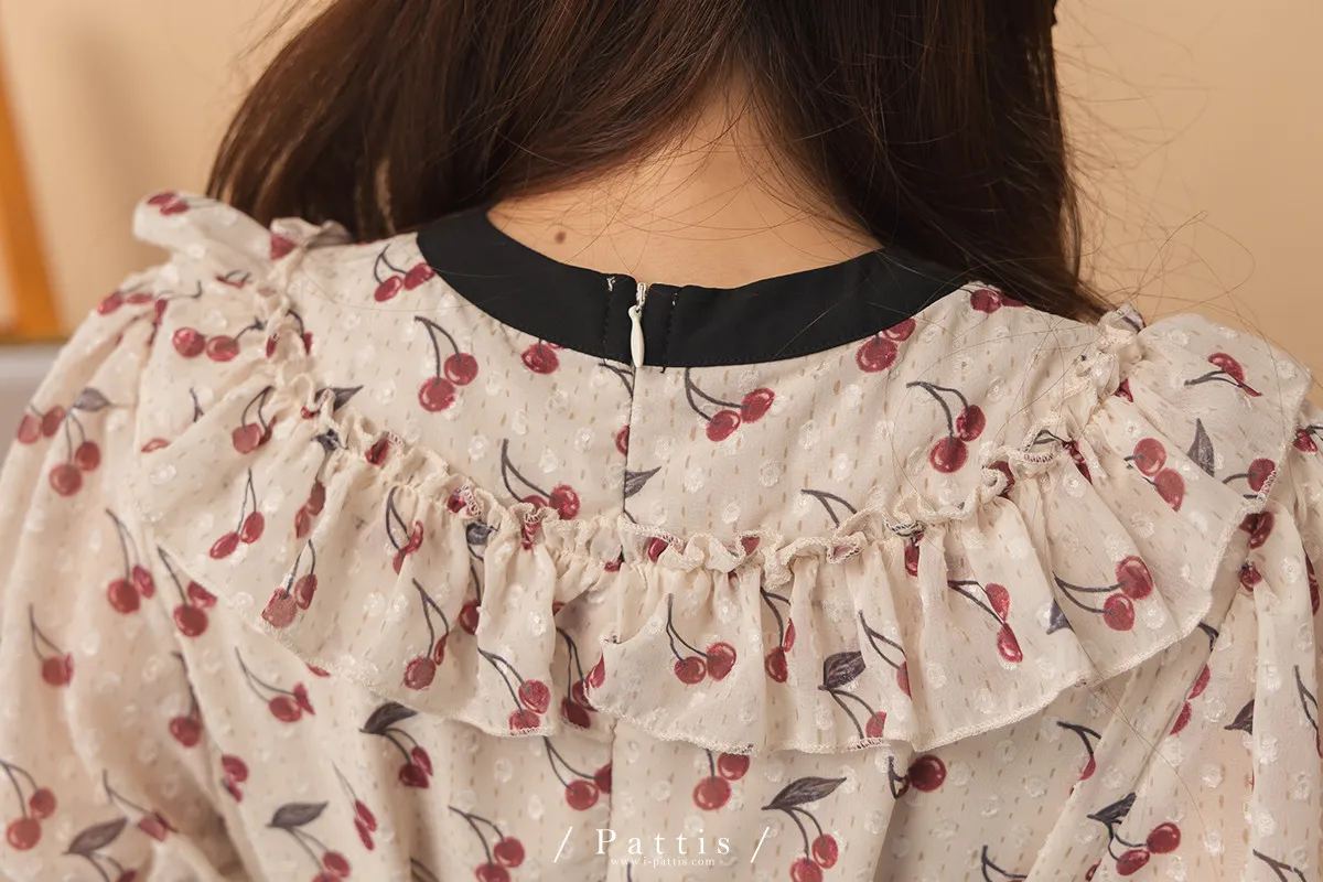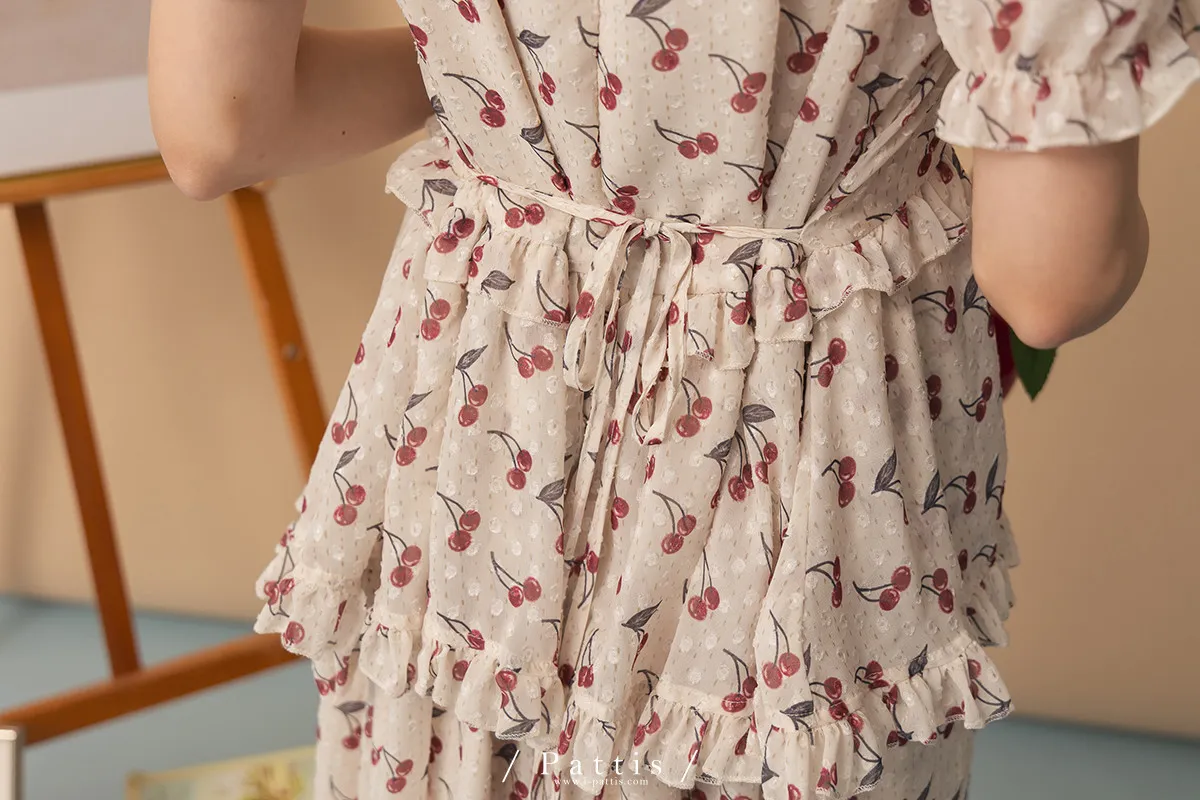 甜美又可愛的櫻桃印花,搭配浮雕的點點,讓質感更加分