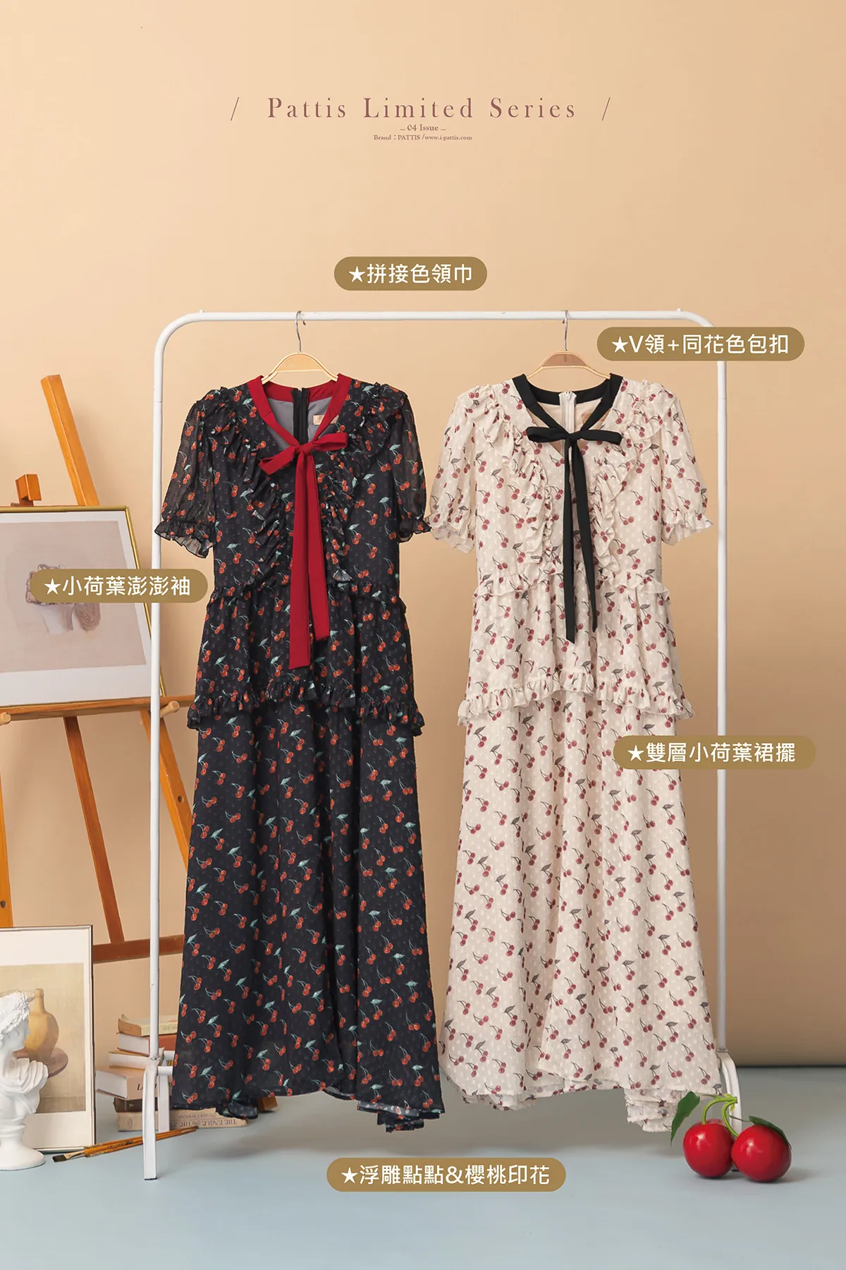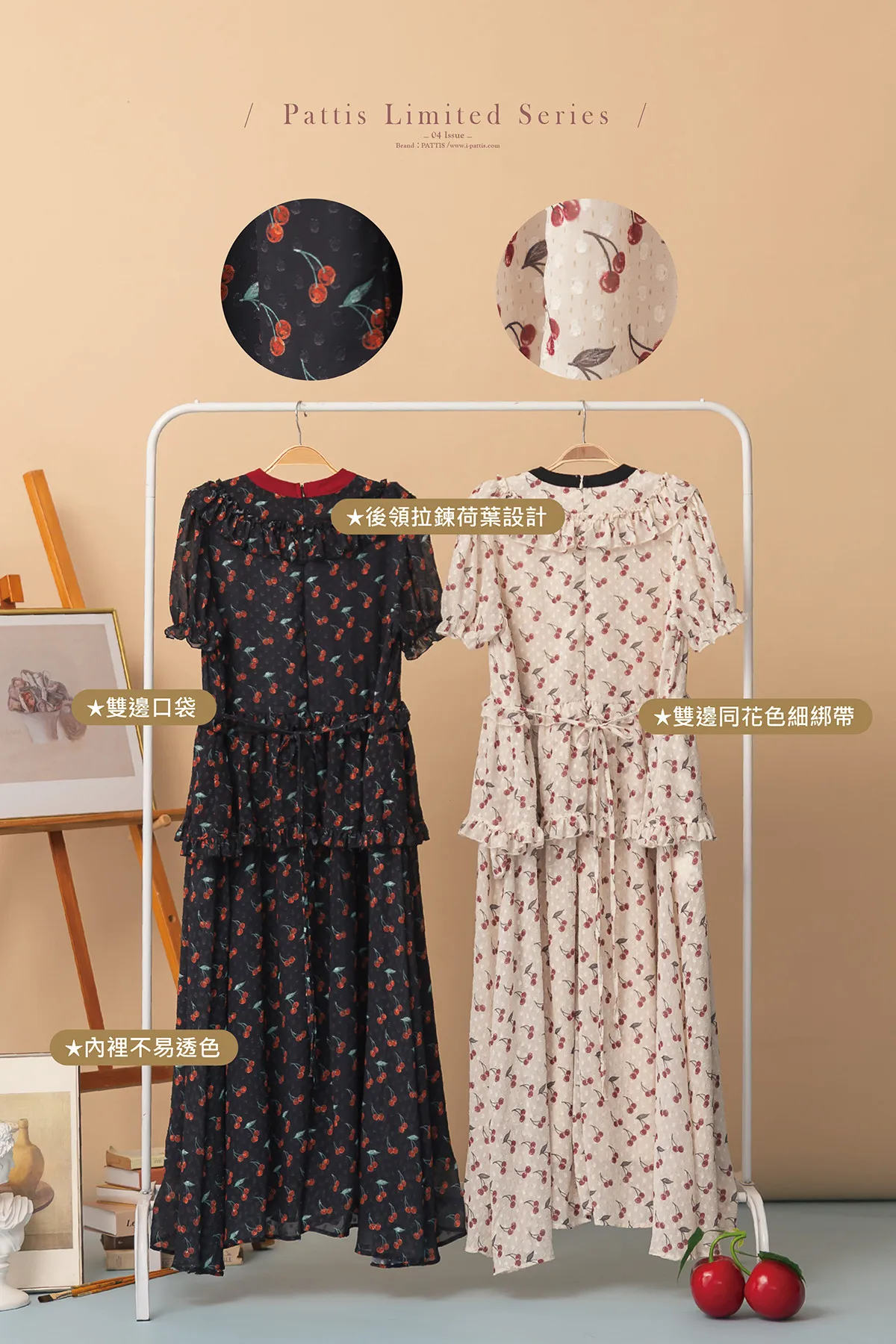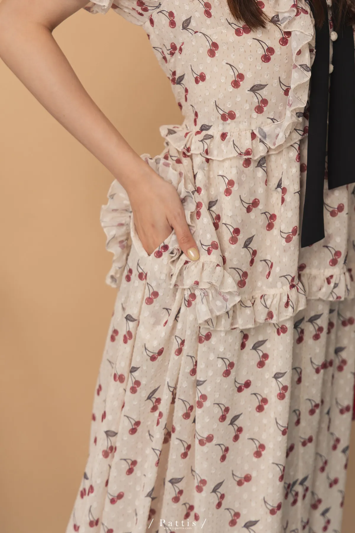 甜美又可愛的櫻桃印花,搭配浮雕的點點,讓質感更加分
