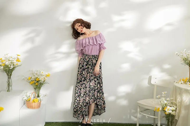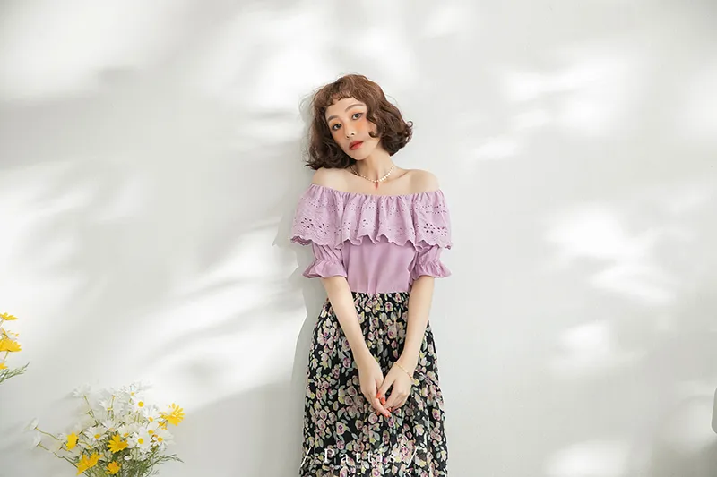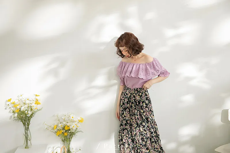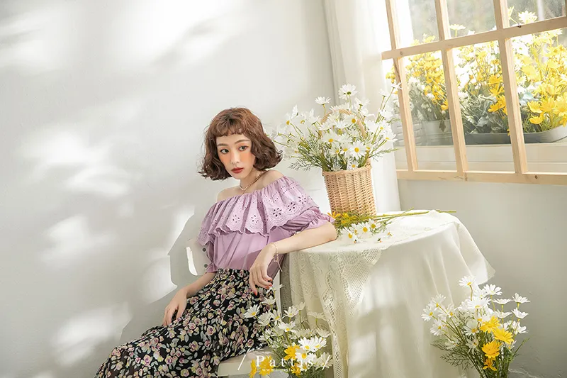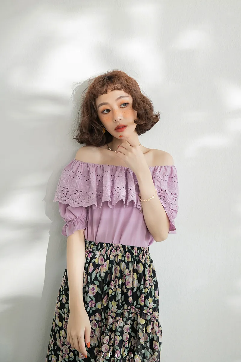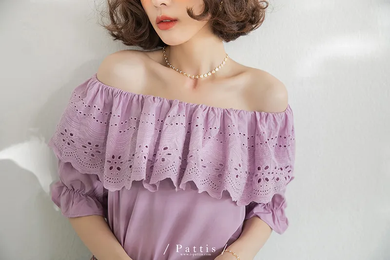 / NG品 / 恰好的偶遇 | 雷射燒花2way一字領上衣(紫)