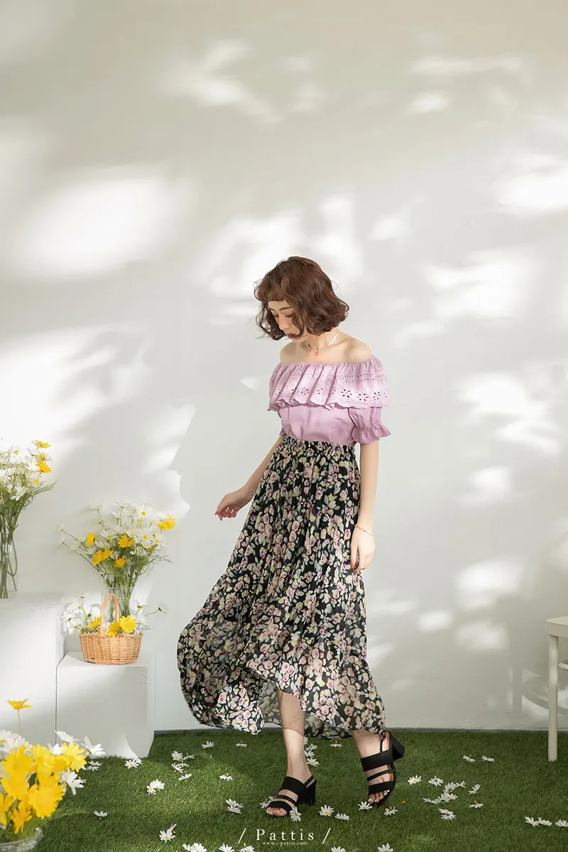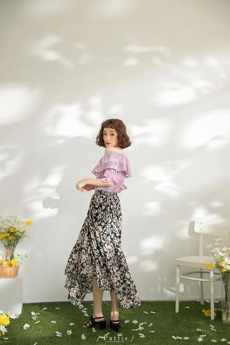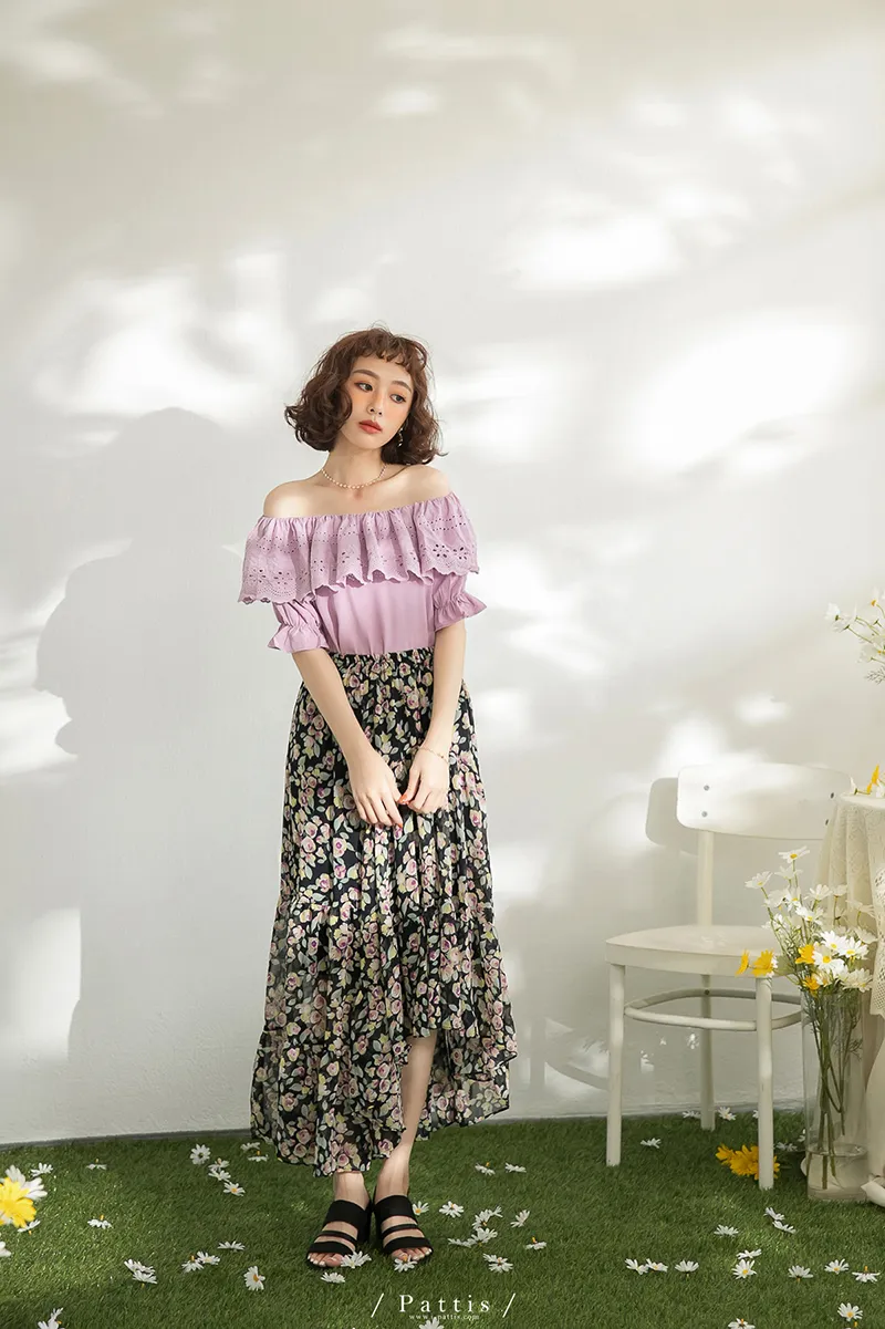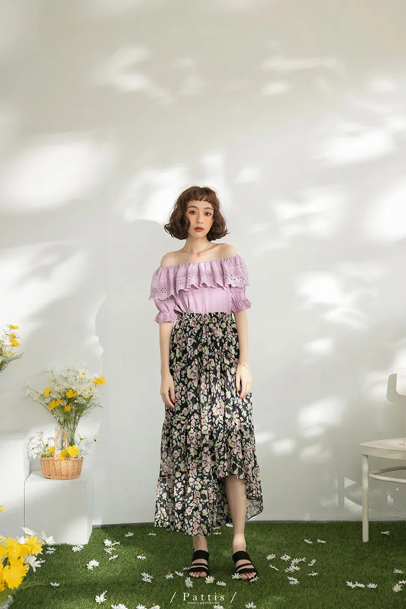 / NG品 / 恰好的偶遇 | 雷射燒花2way一字領上衣(紫)