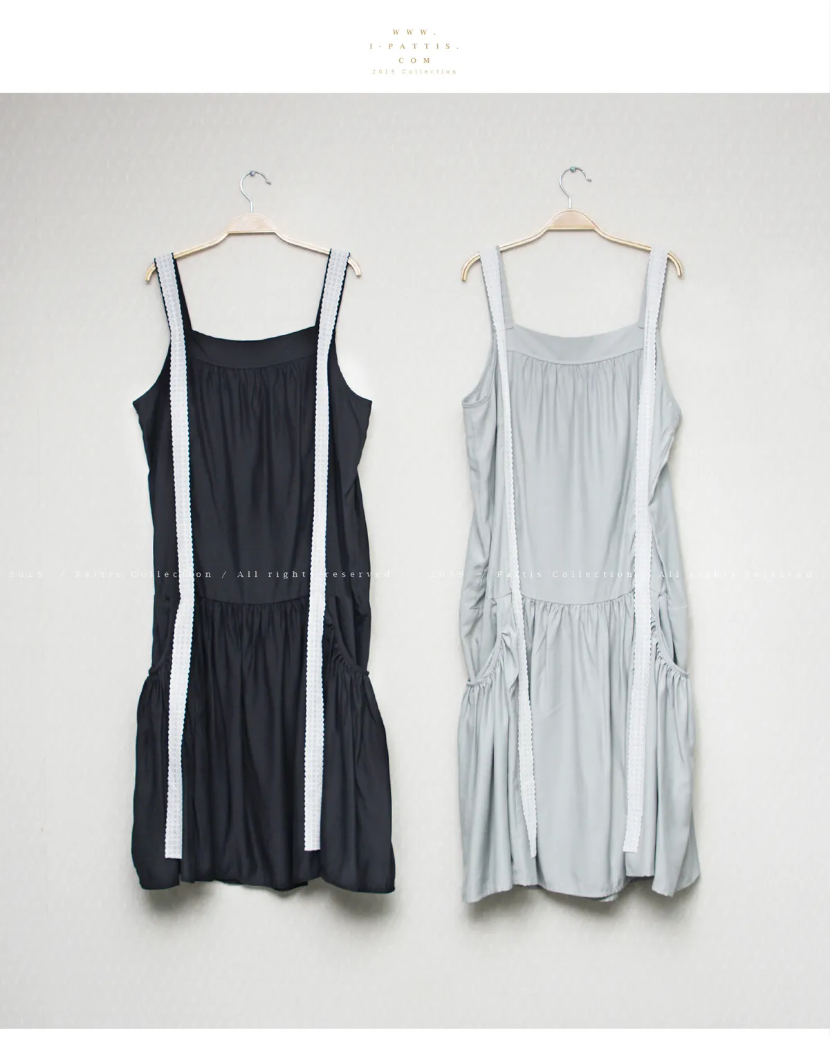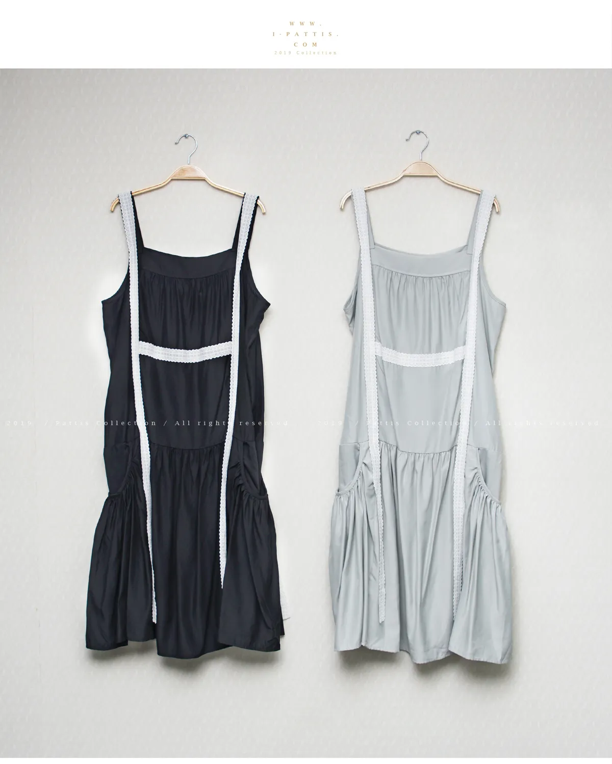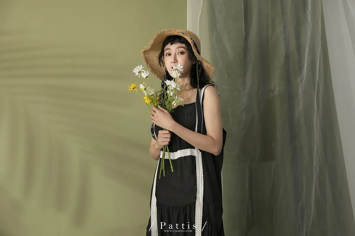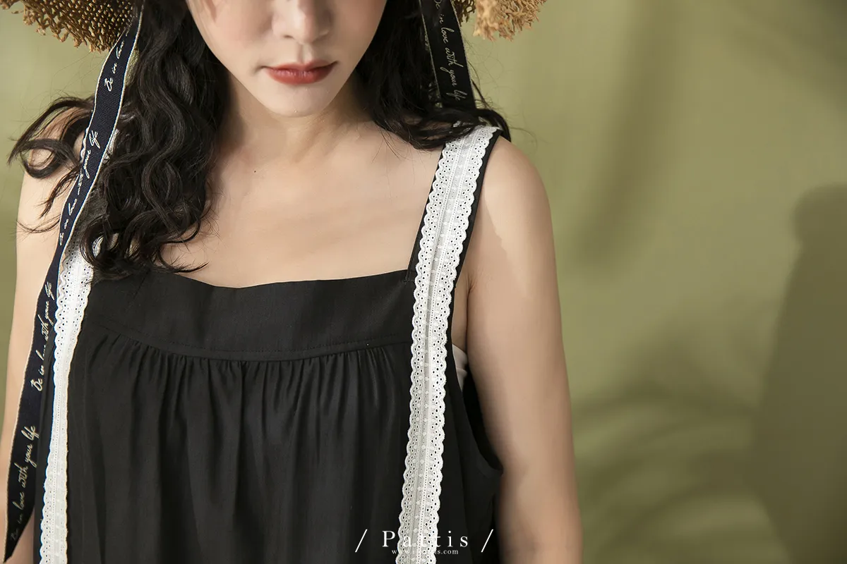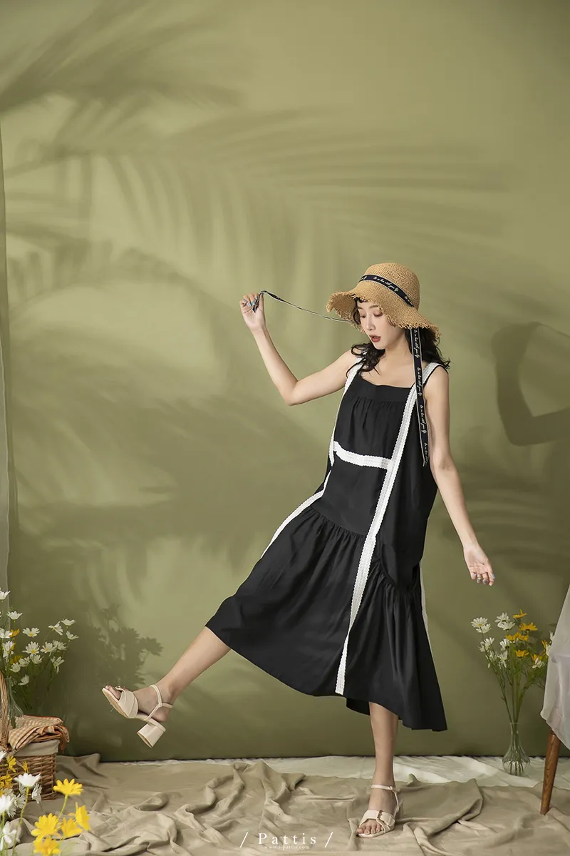 青檸泡泡酒 | 綴蕾絲大口袋背心洋裝(黑)