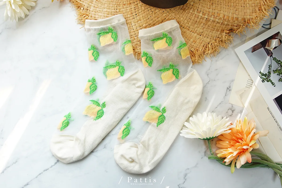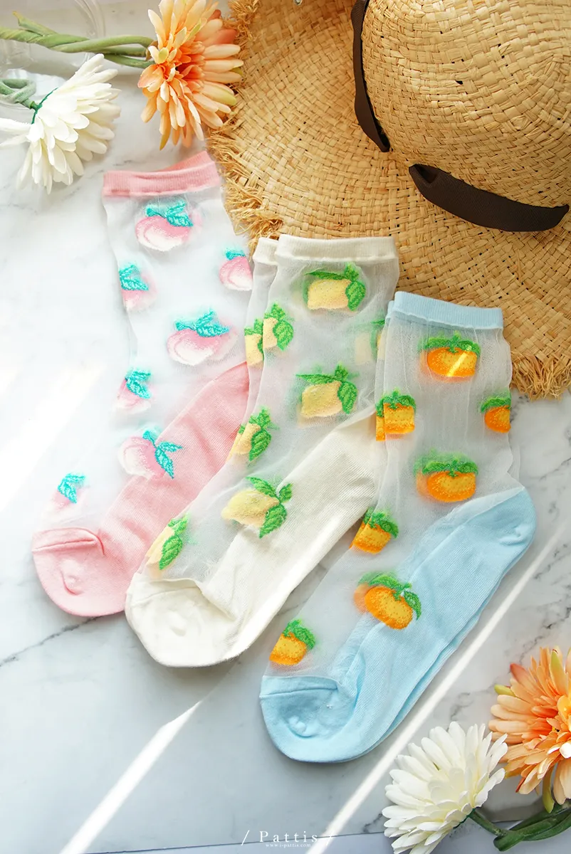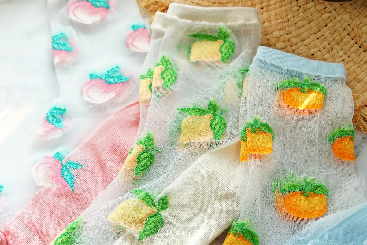 河畔甜果調 | 透肌網紗水果短襪(檸檬/甜橘/水蜜桃)