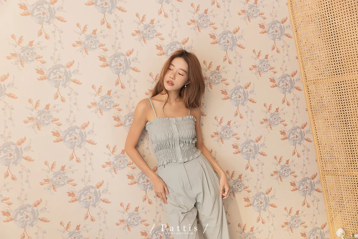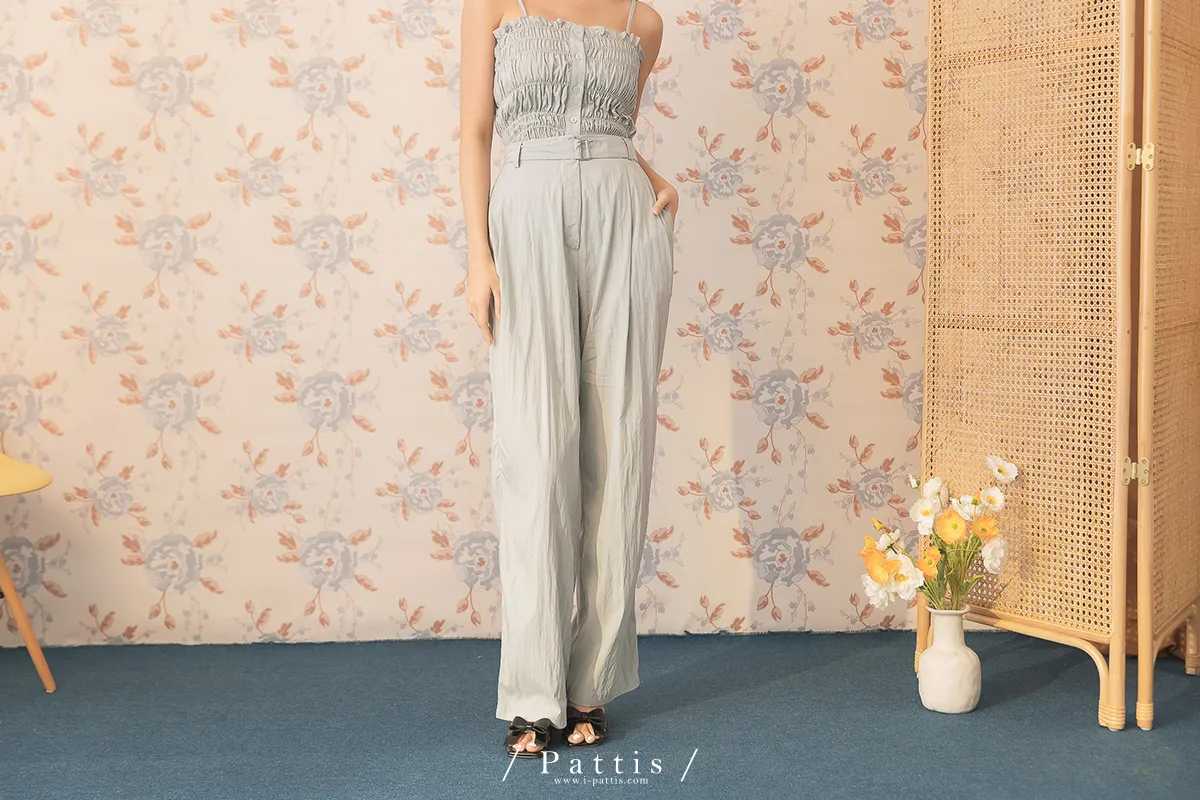 (現貨-寬褲)微醉氣泡酒細胞 | -可分售-抓皺鬆緊背心+寬褲set(淺綠)