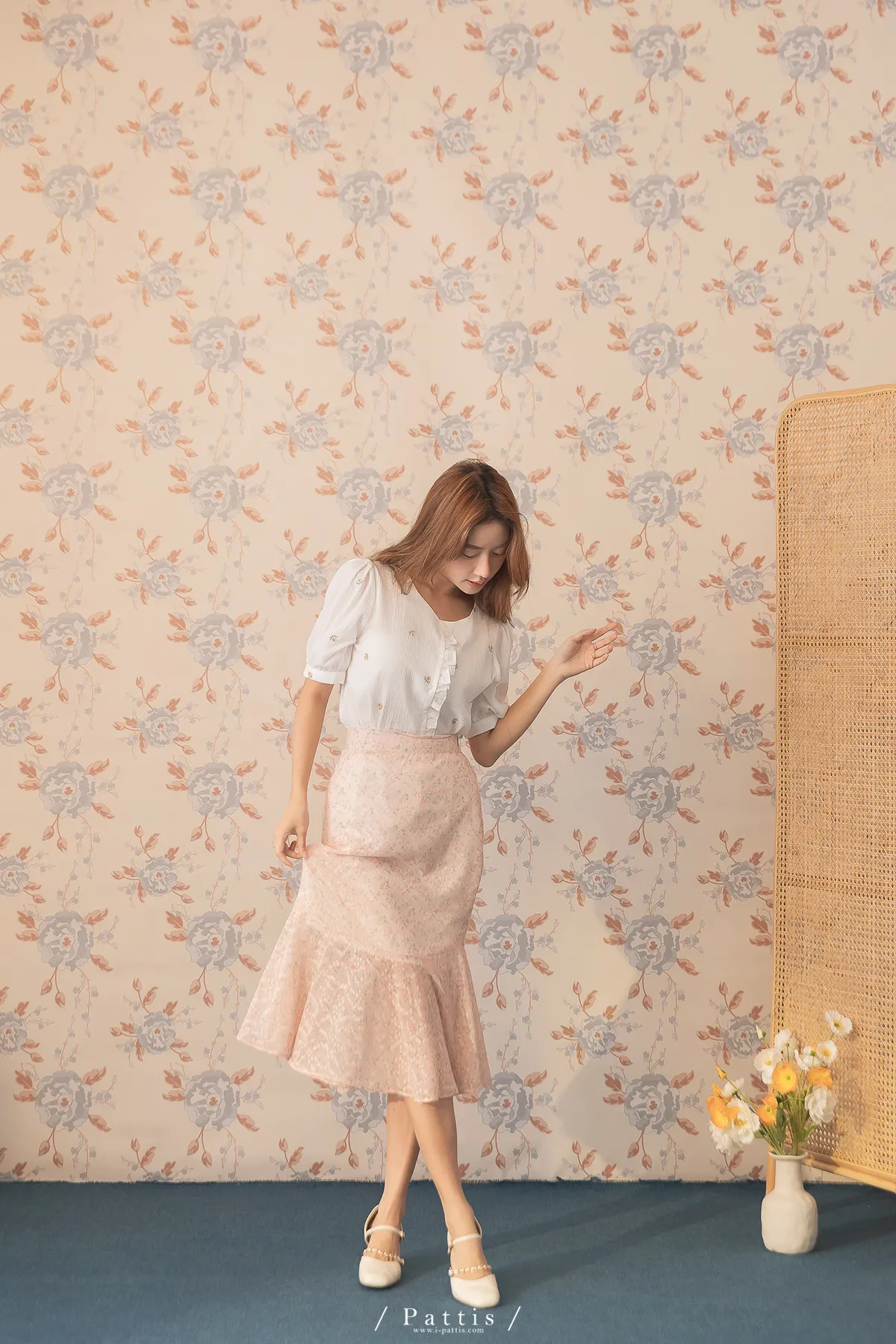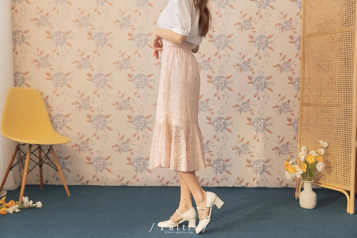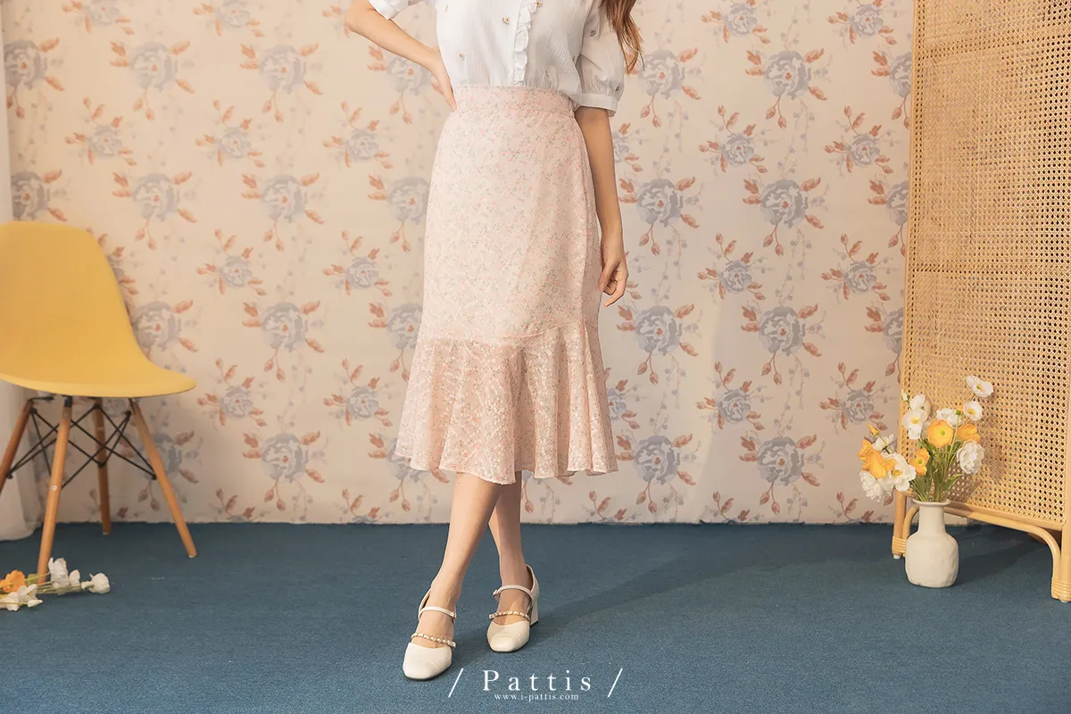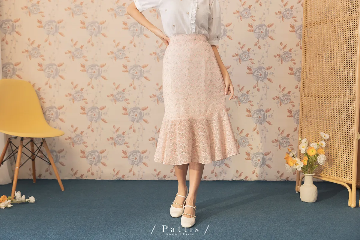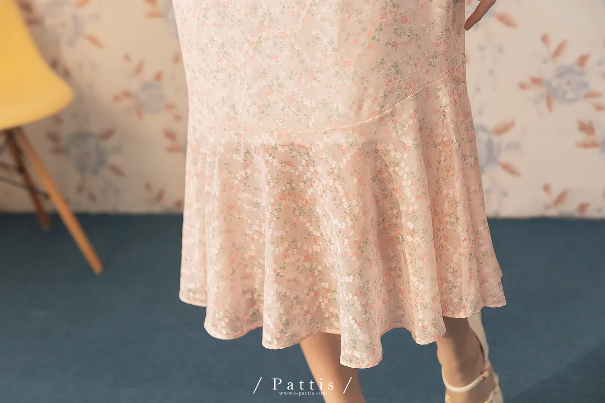 午時的波光人魚 | 浮雕方格小碎花魚尾裙(粉)