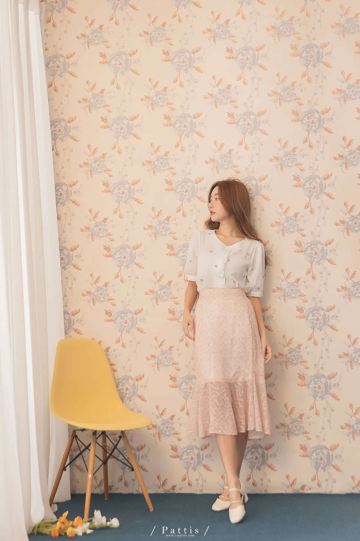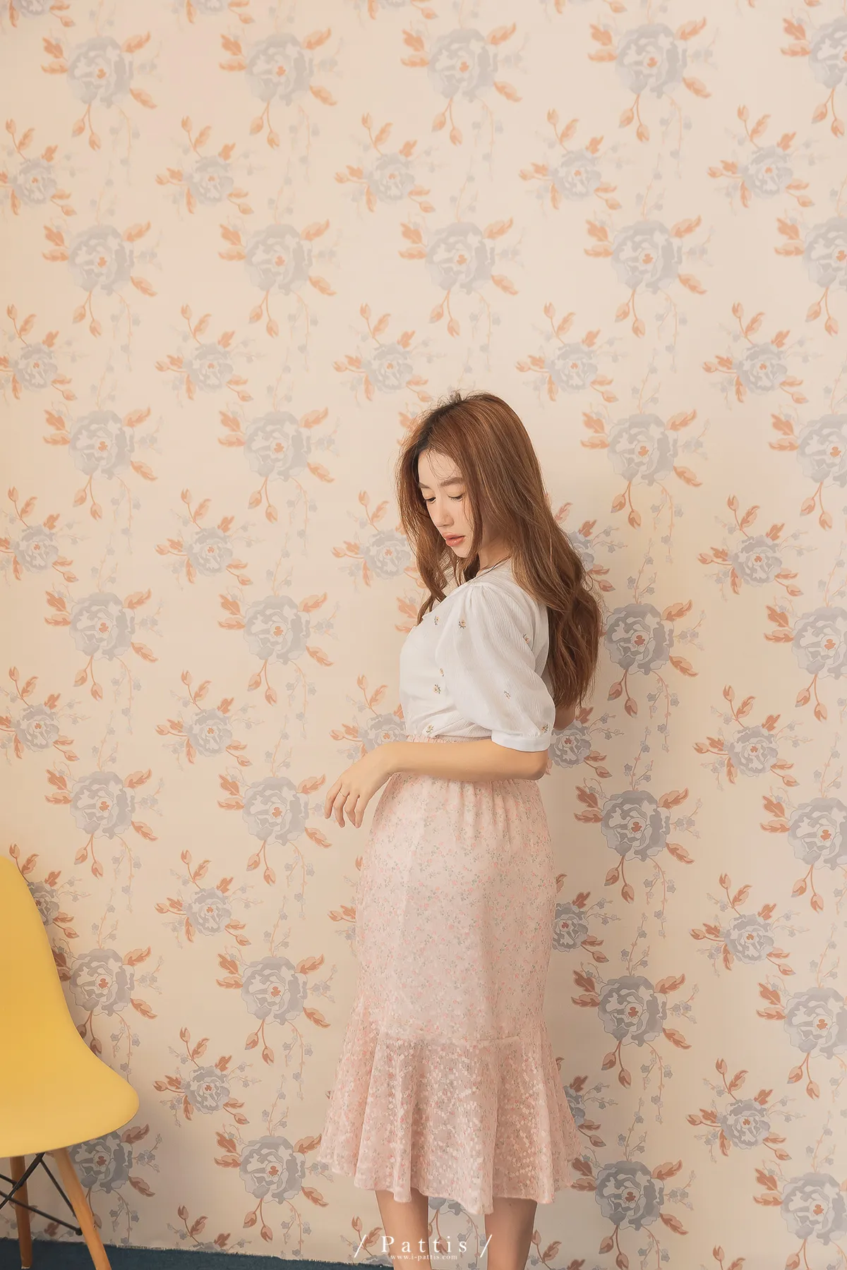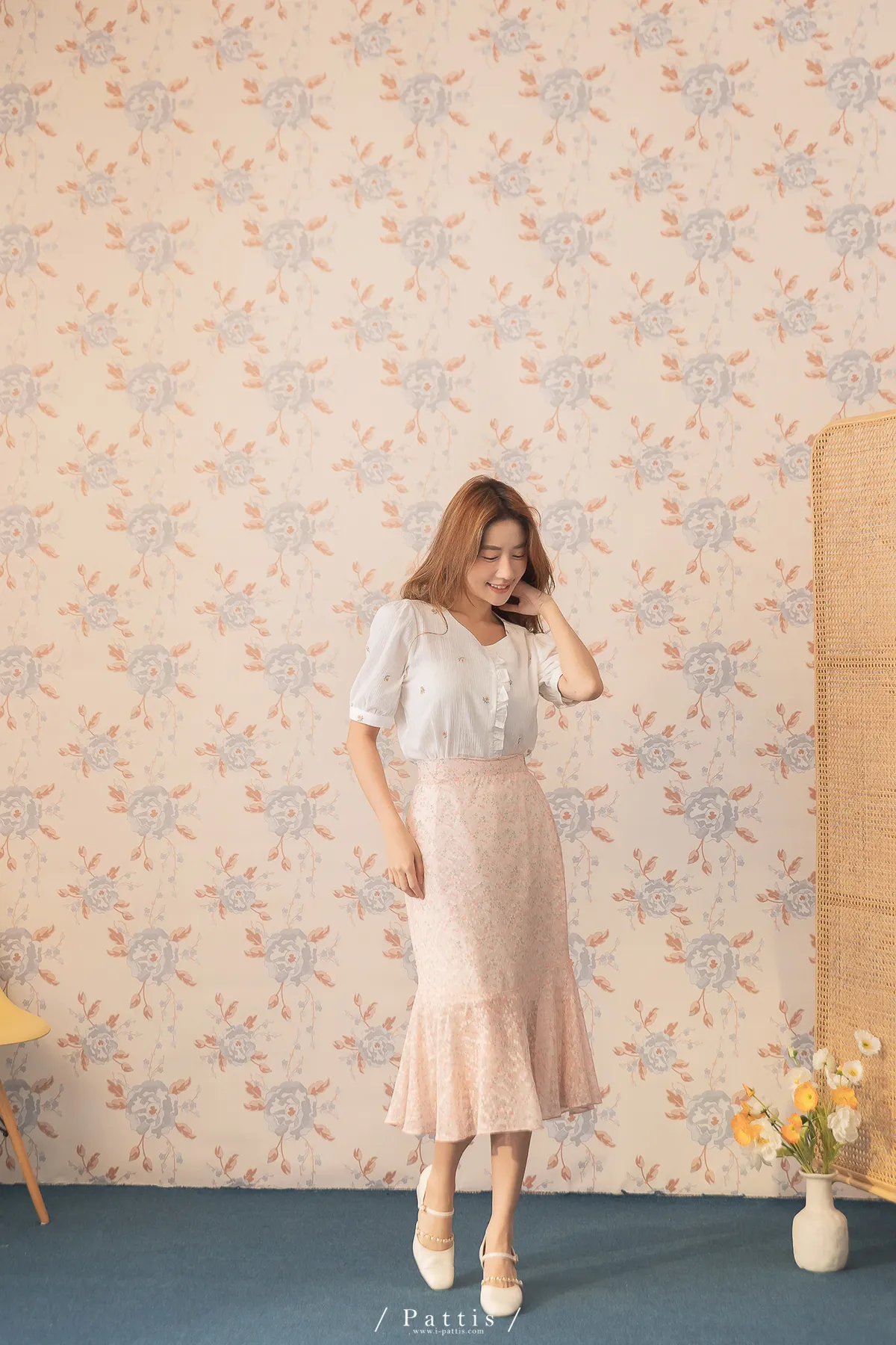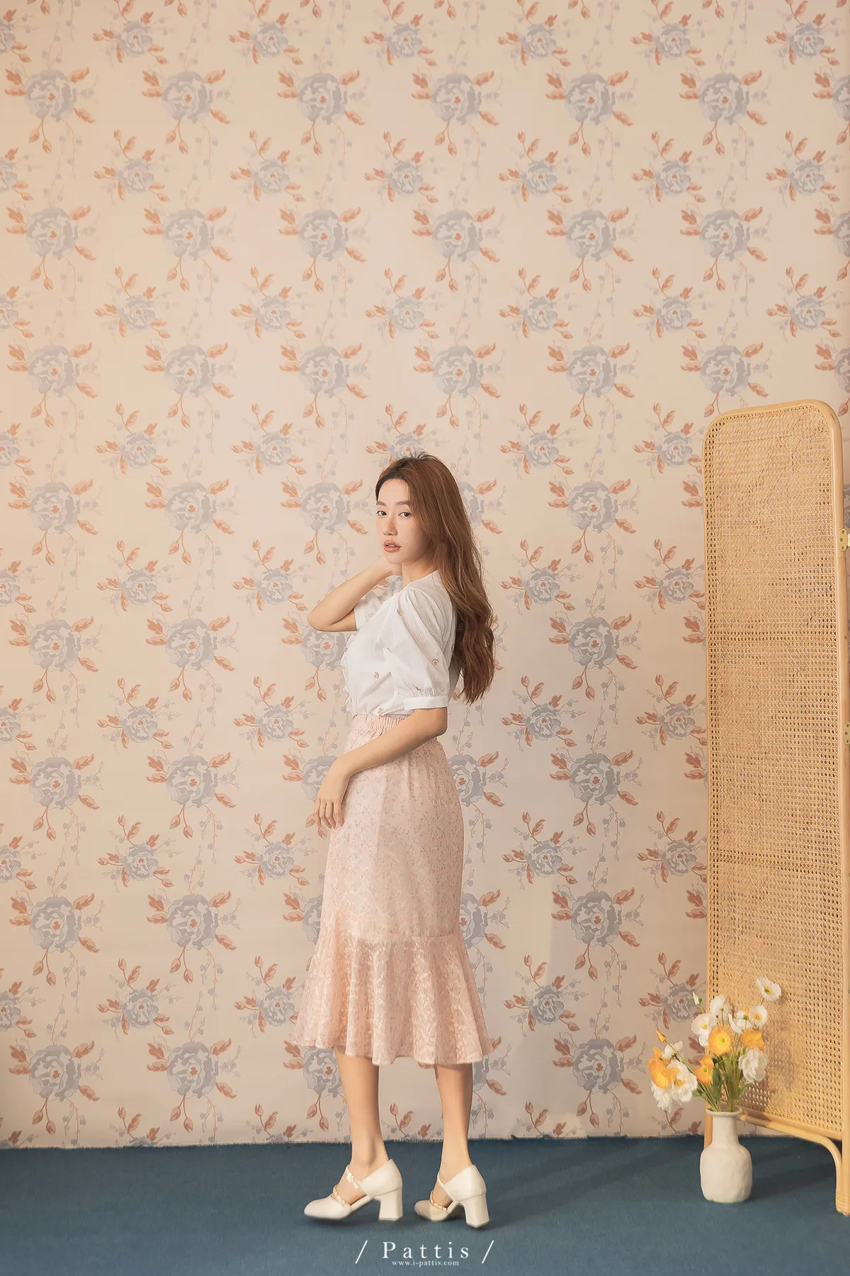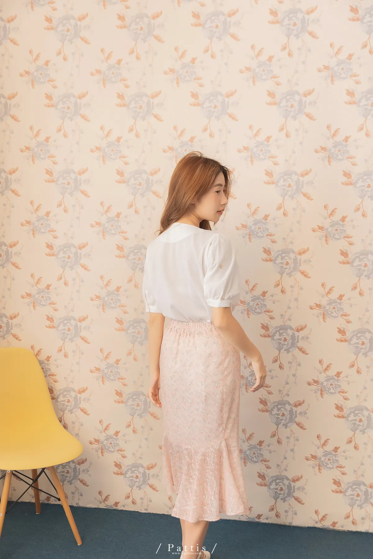 午時的波光人魚 | 浮雕方格小碎花魚尾裙(粉)