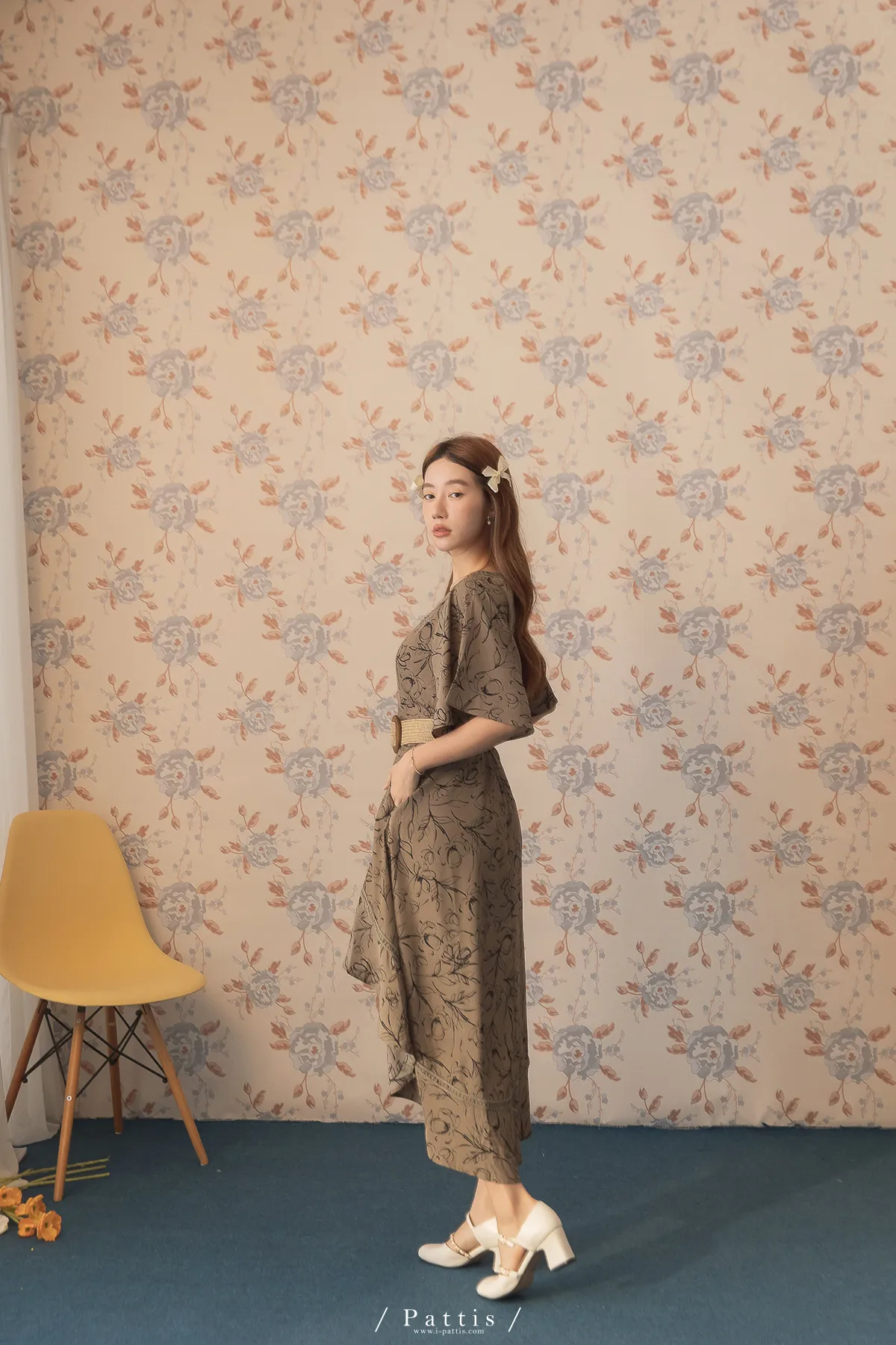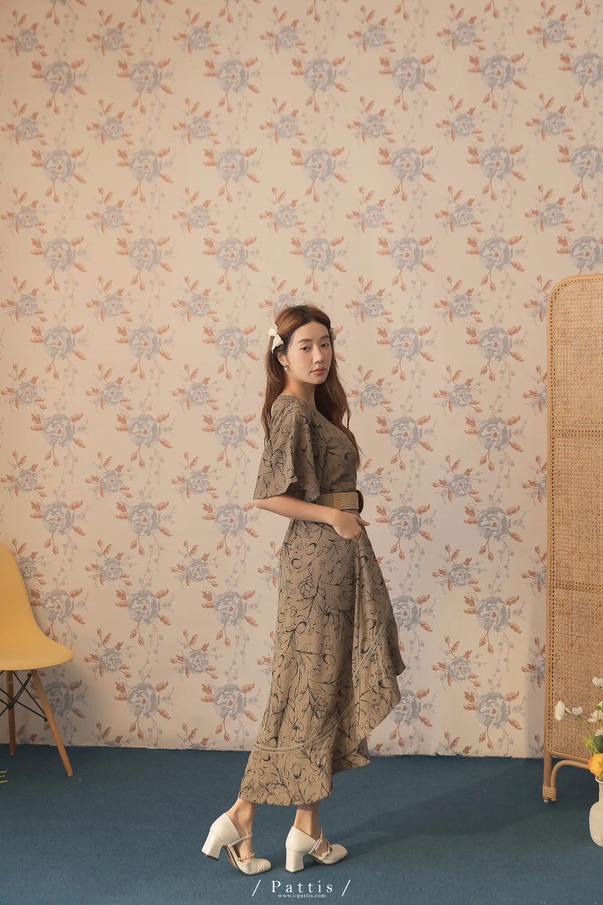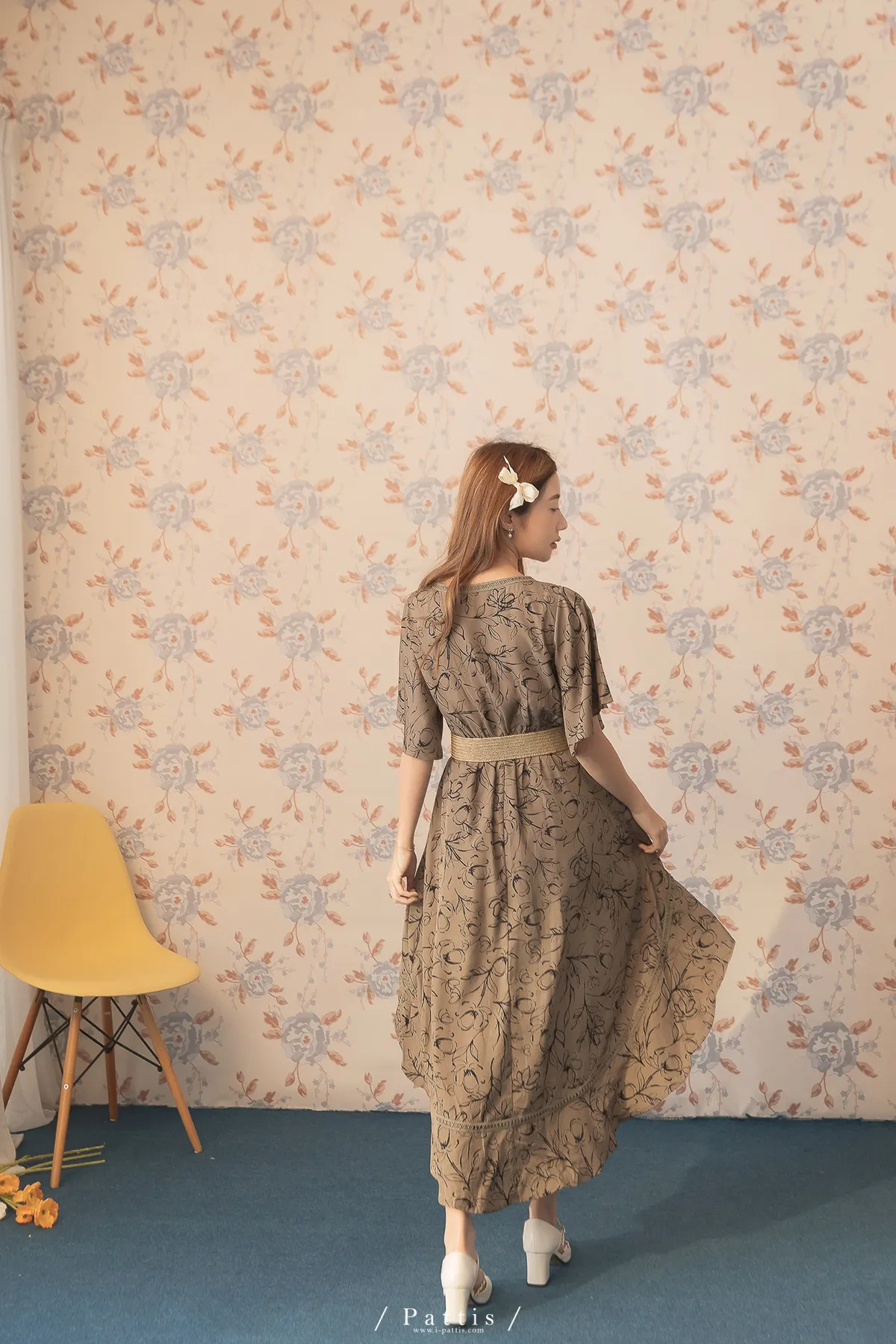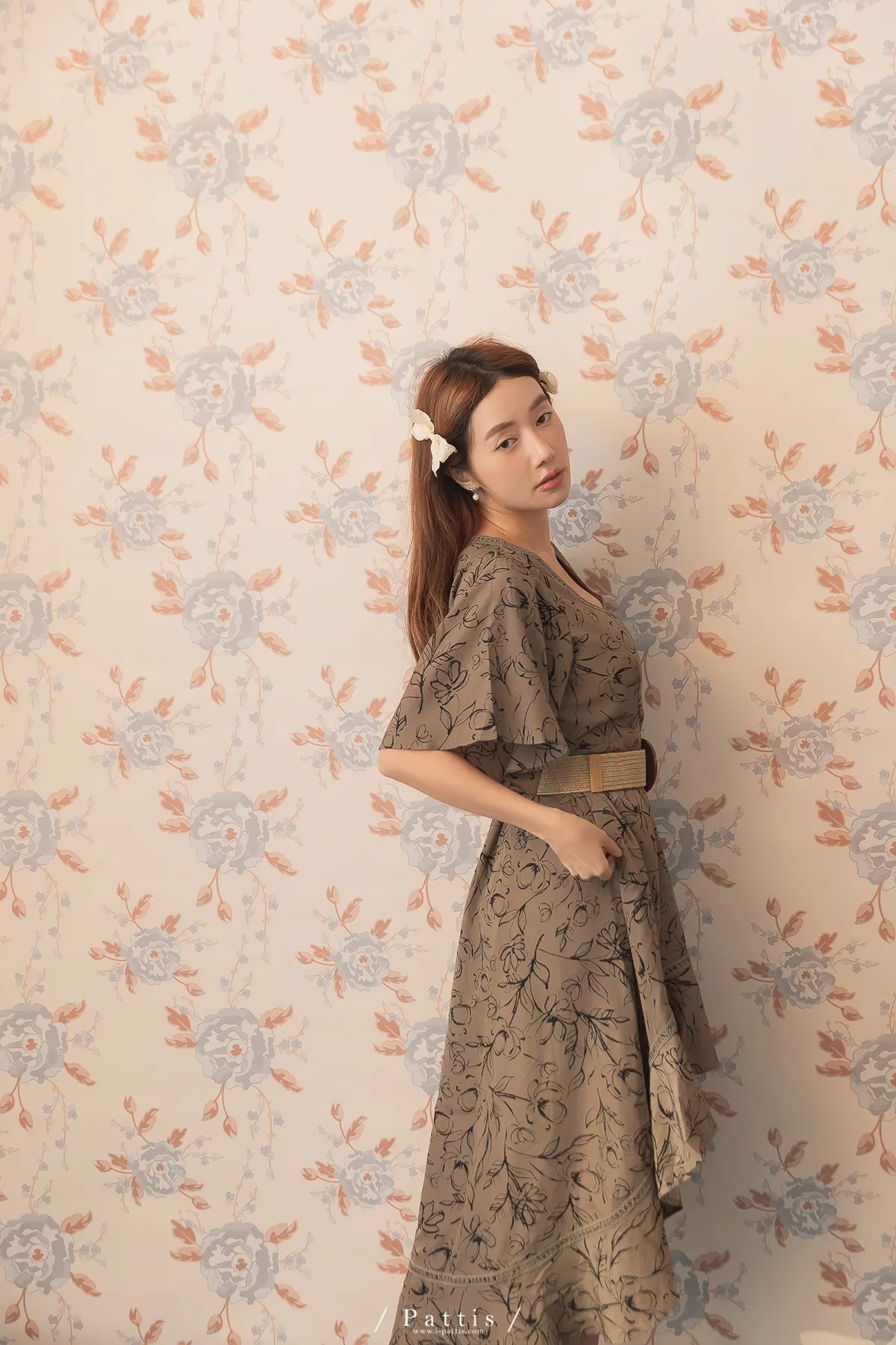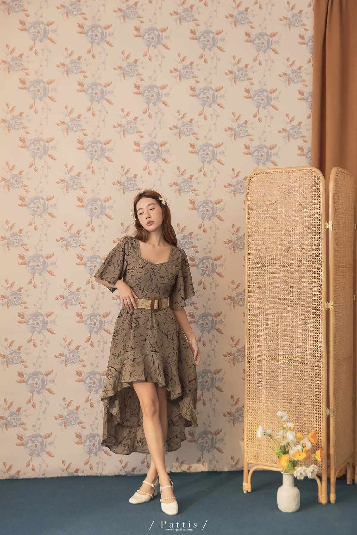 雨林內的優雅探險 | 前短後長綴蕾絲印花洋裝(深綠)