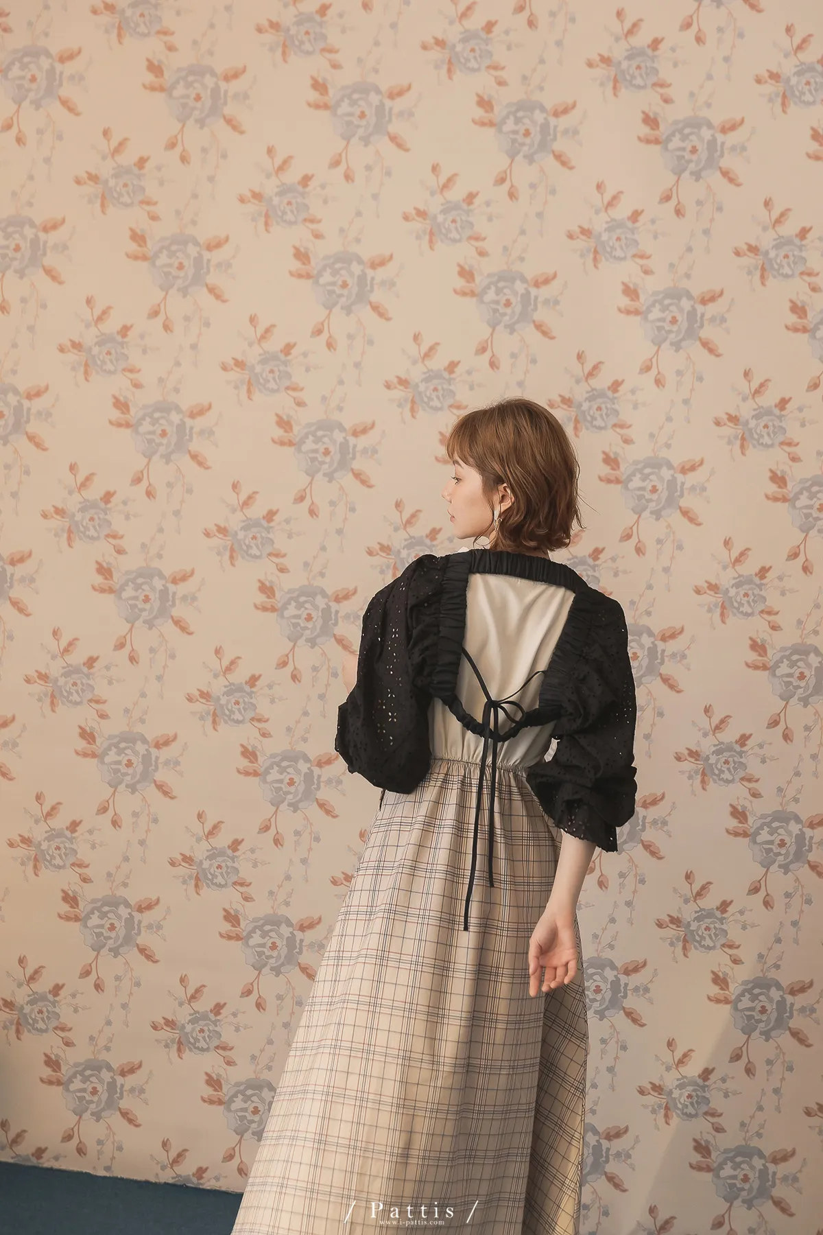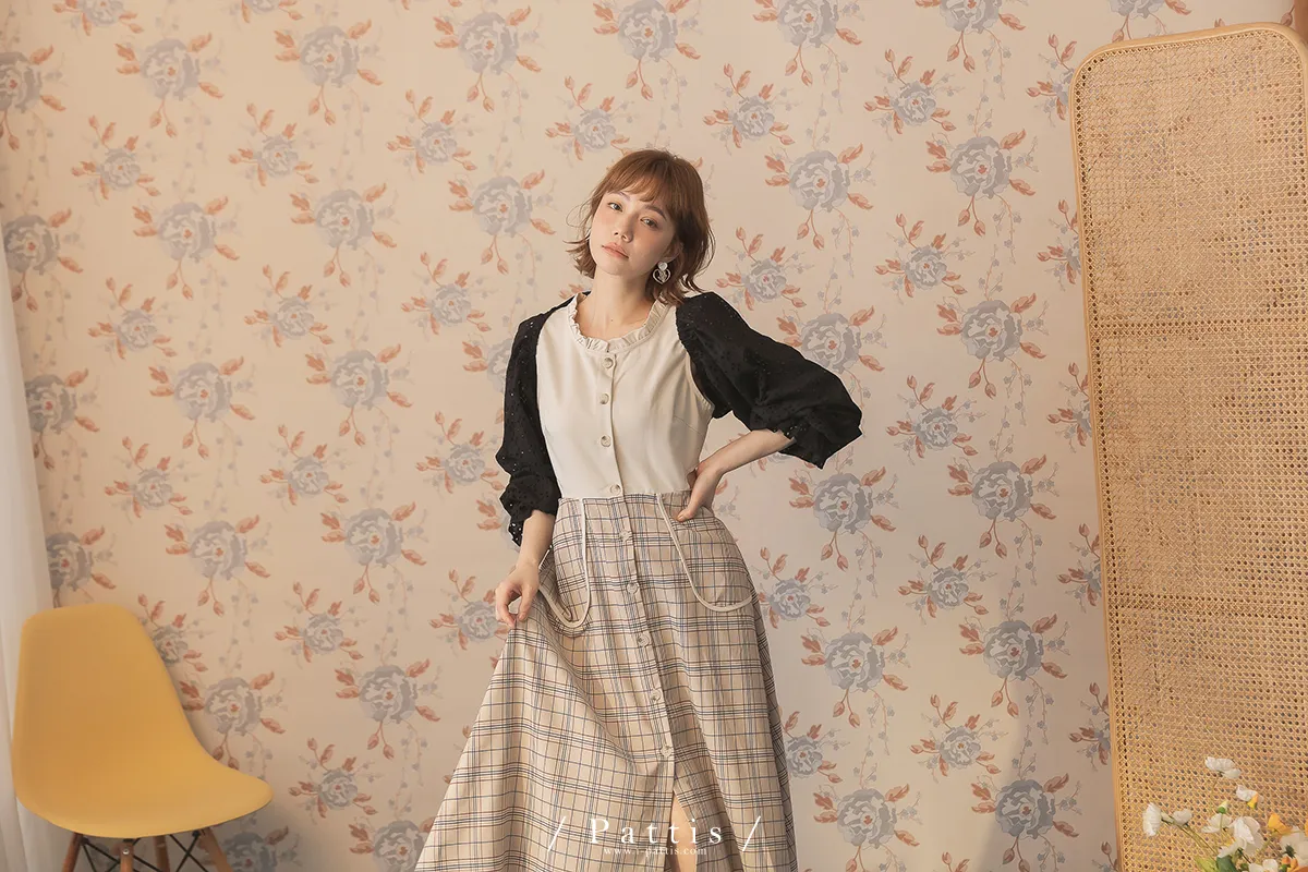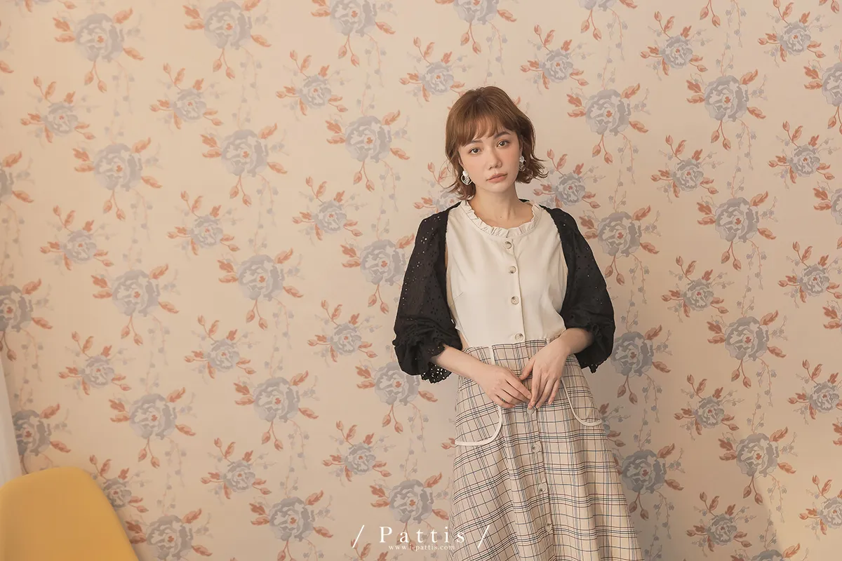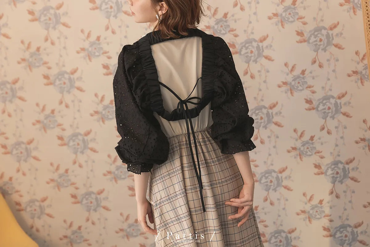 初夏輪廓 | 縷空布蕾絲造型綁帶短罩衫(黑)