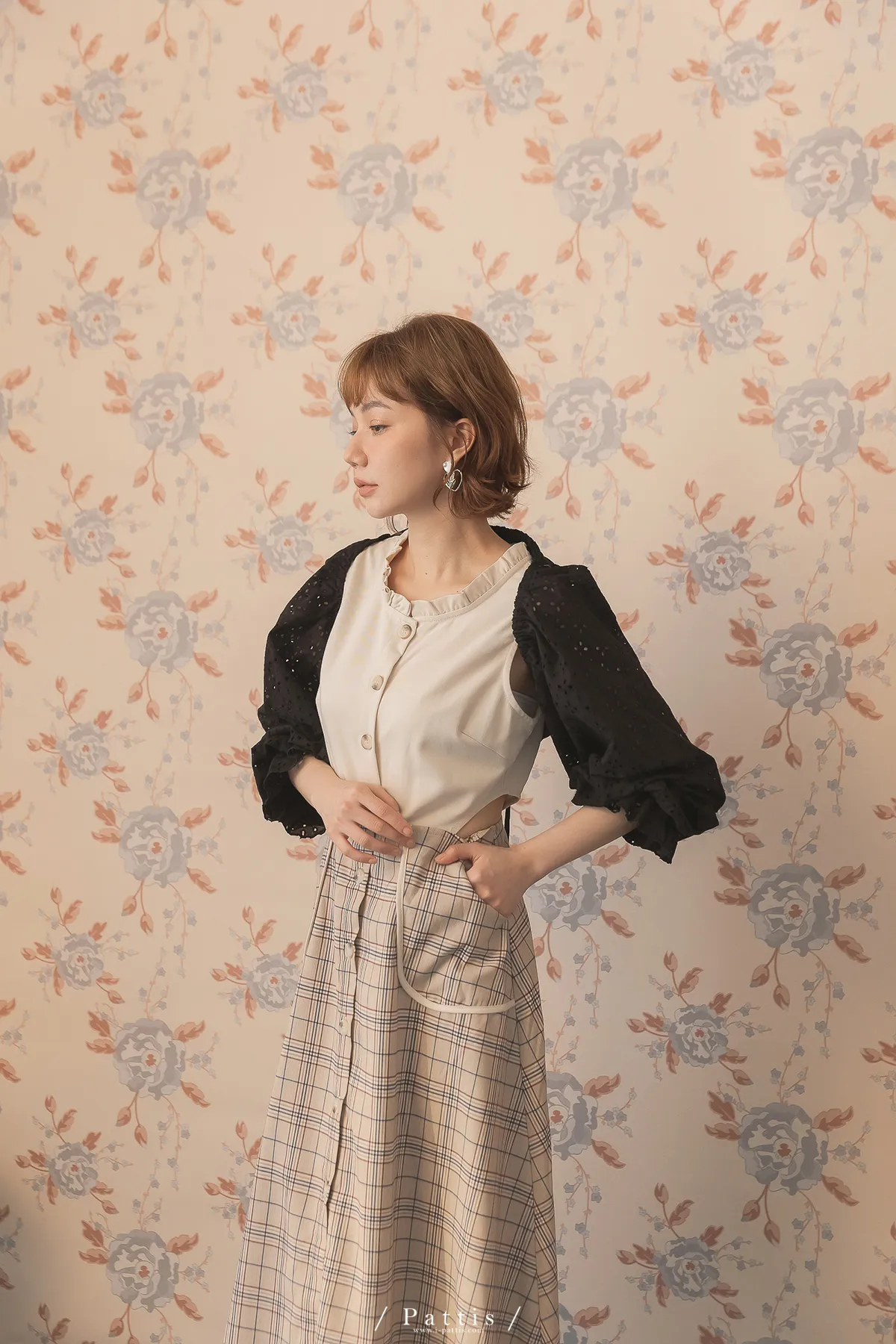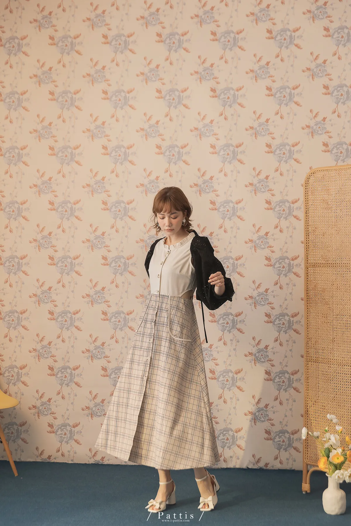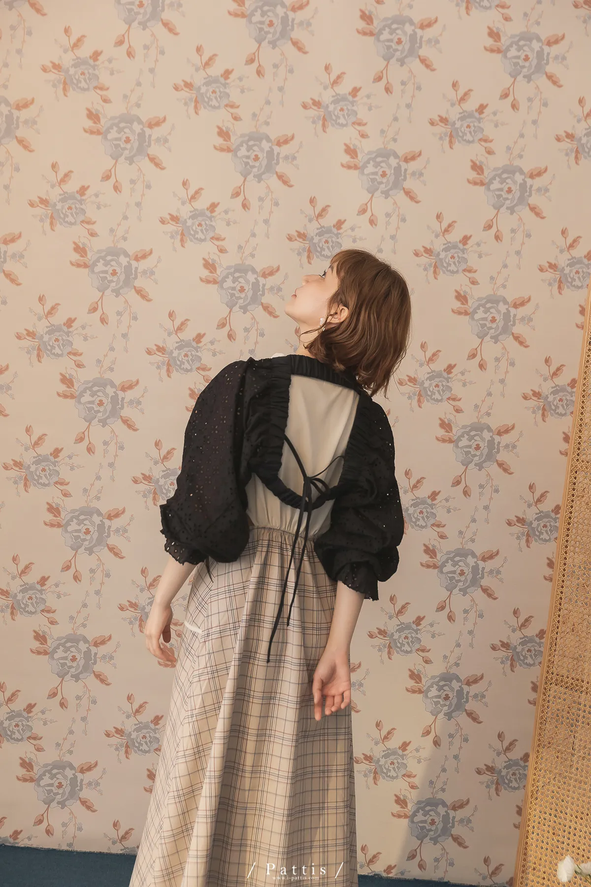初夏輪廓 | 縷空布蕾絲造型綁帶短罩衫(黑)