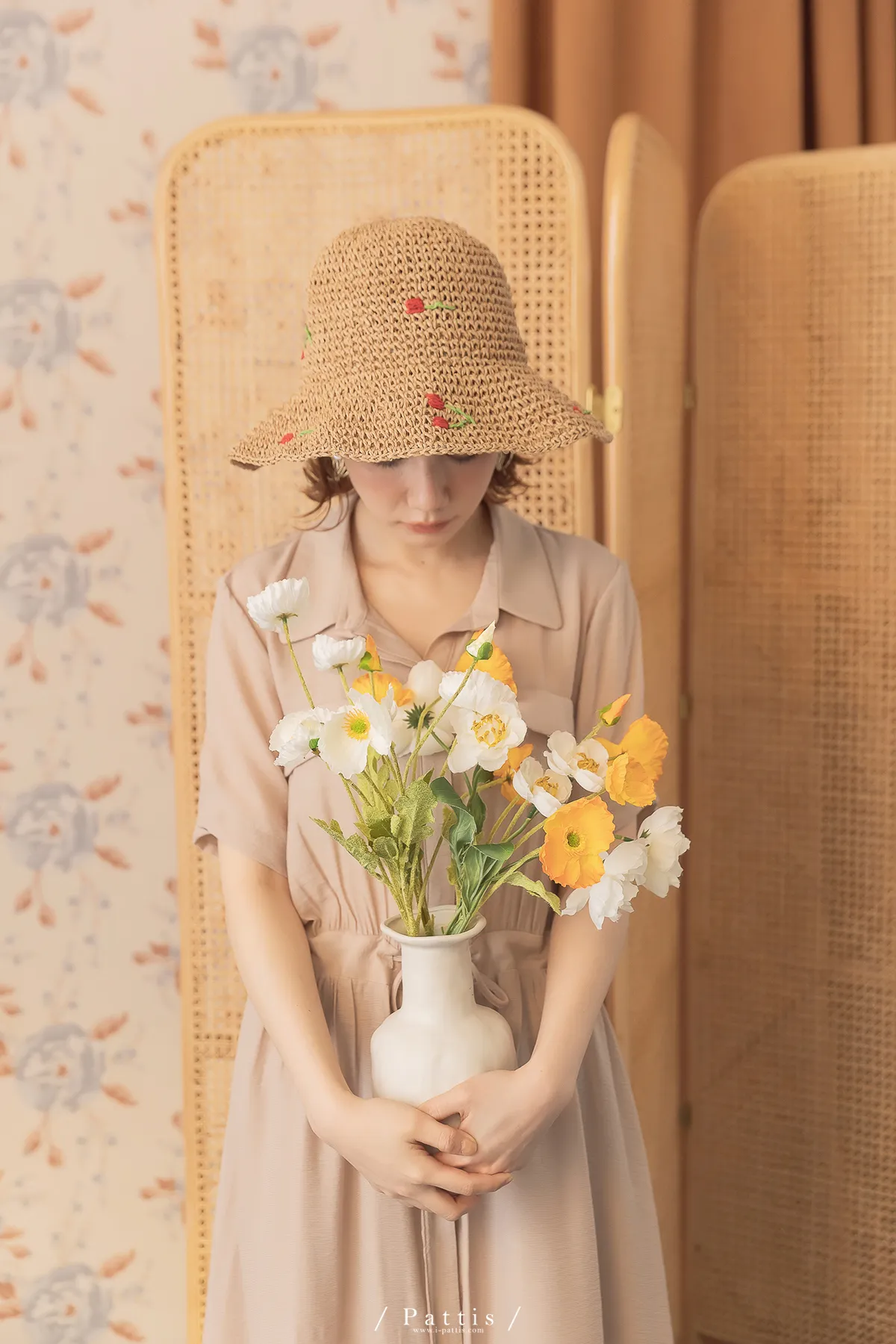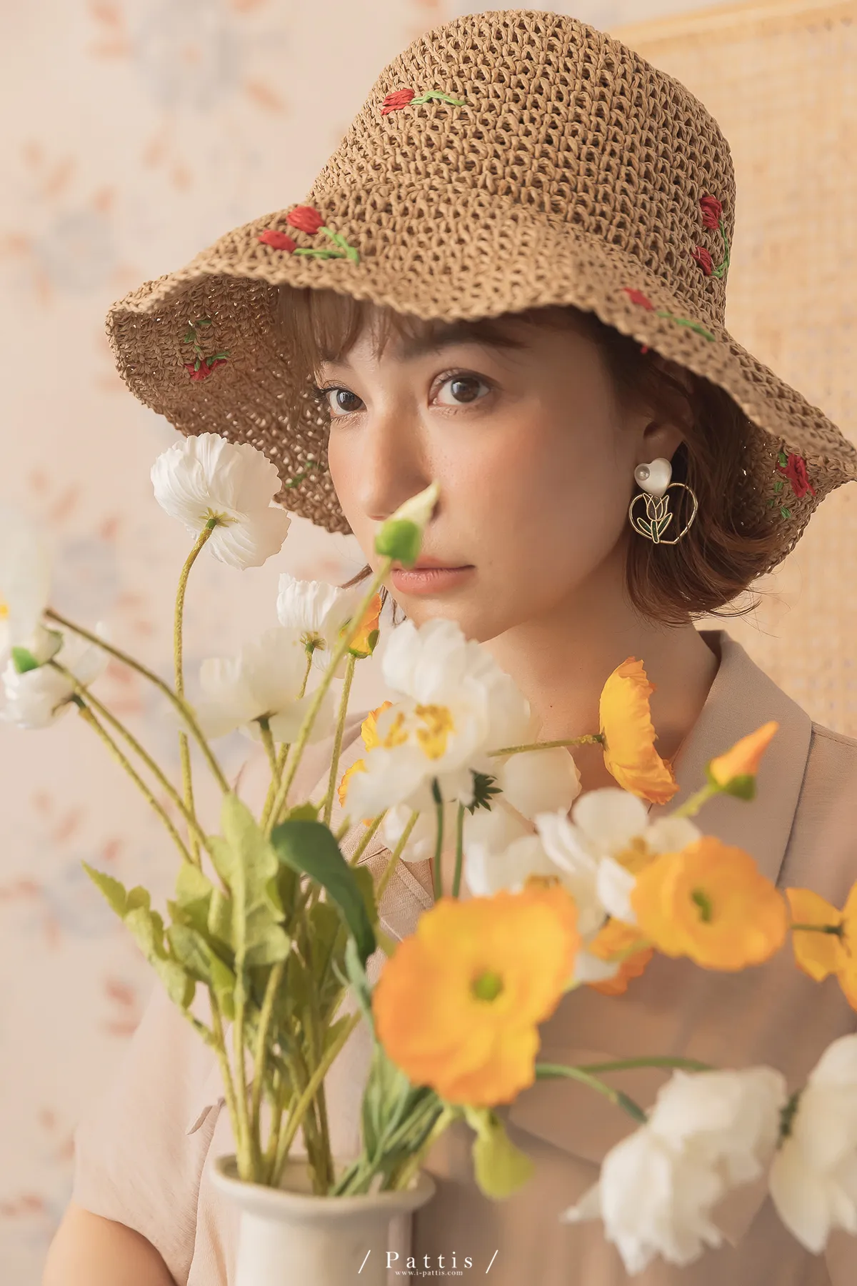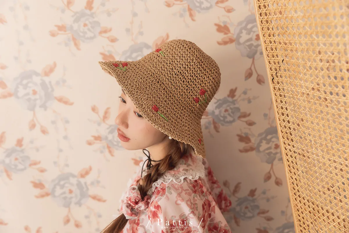 鬱金香刺繡編織草帽(淺杏/深棕)